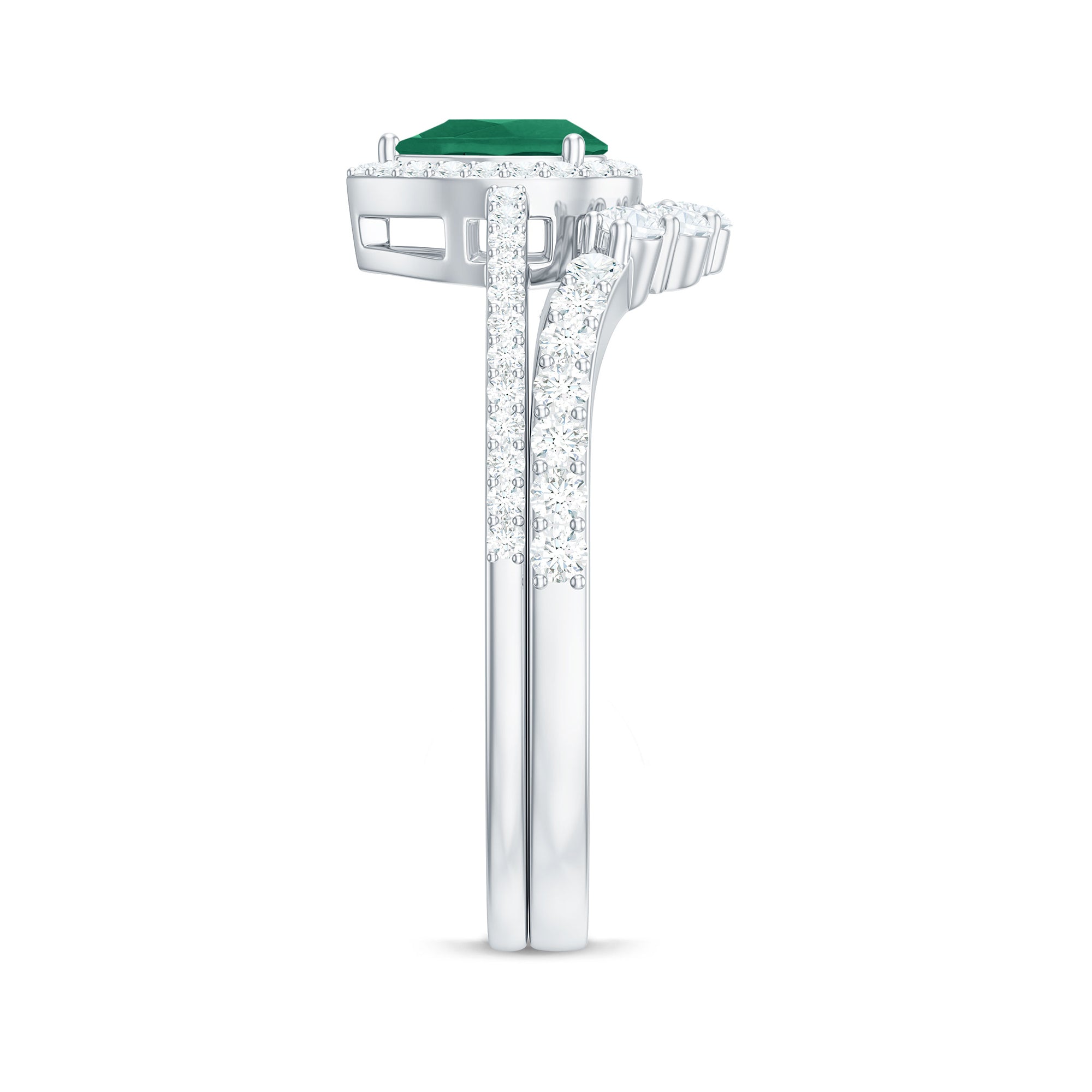 • Emerald halo rings: - Surrounded by dainty diamonds, the emerald stands out beautifully for a mesmerizing look. The emerald halo rings are the perfect merge of traditional and contemporary. The halo ring with a diamond accent adds a touch of sophistication and enhances the brilliance of the emerald.
