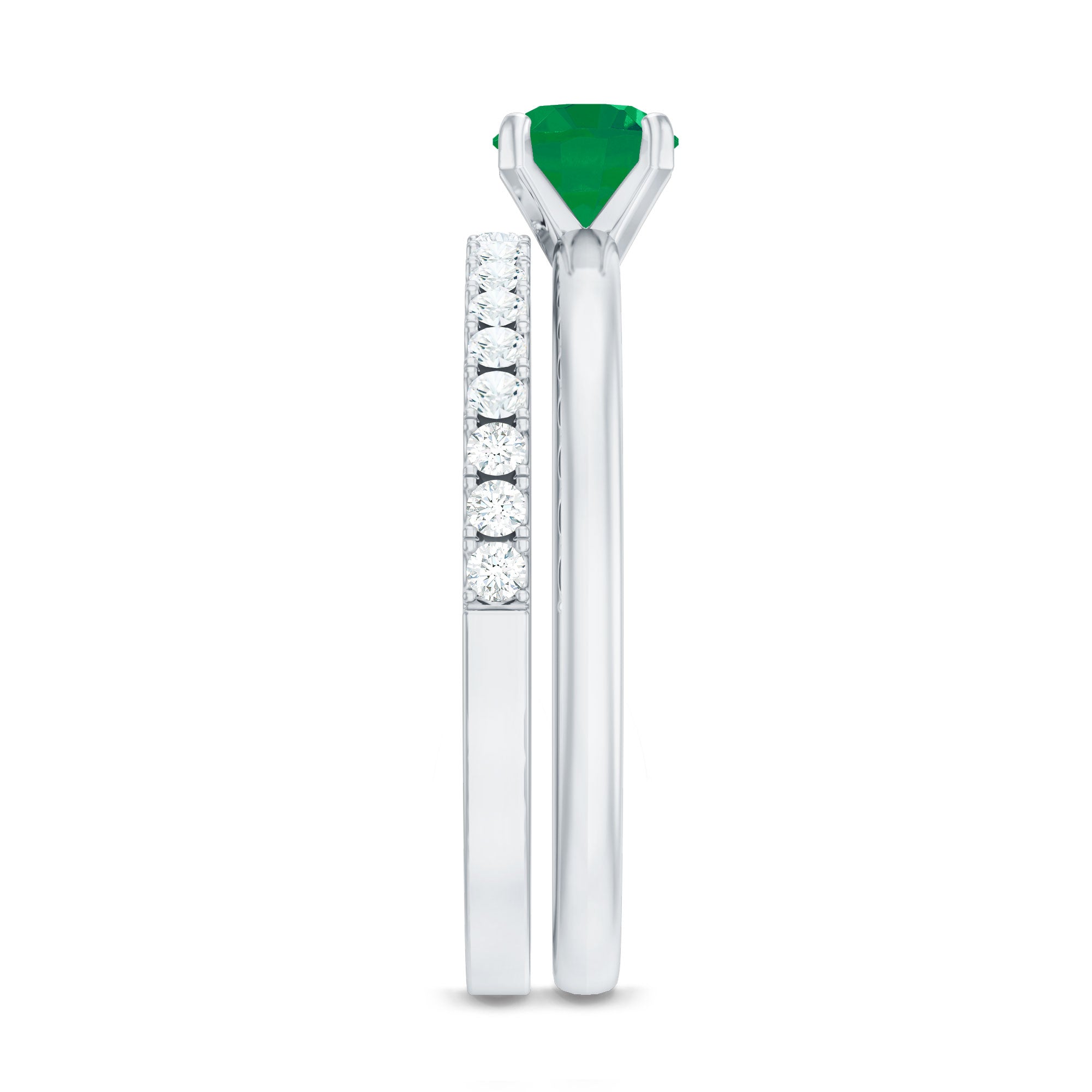 • Emerald promise rings: - Symbolize love, loyalty, and commitment. They are beautiful and represent lasting love. Craft each piece with white gold or yellow gold metal and give it as a promising token to your partners. The emerald ring's intense and vibrant color adds elegance and significant meaning to the heartfelt gesture.