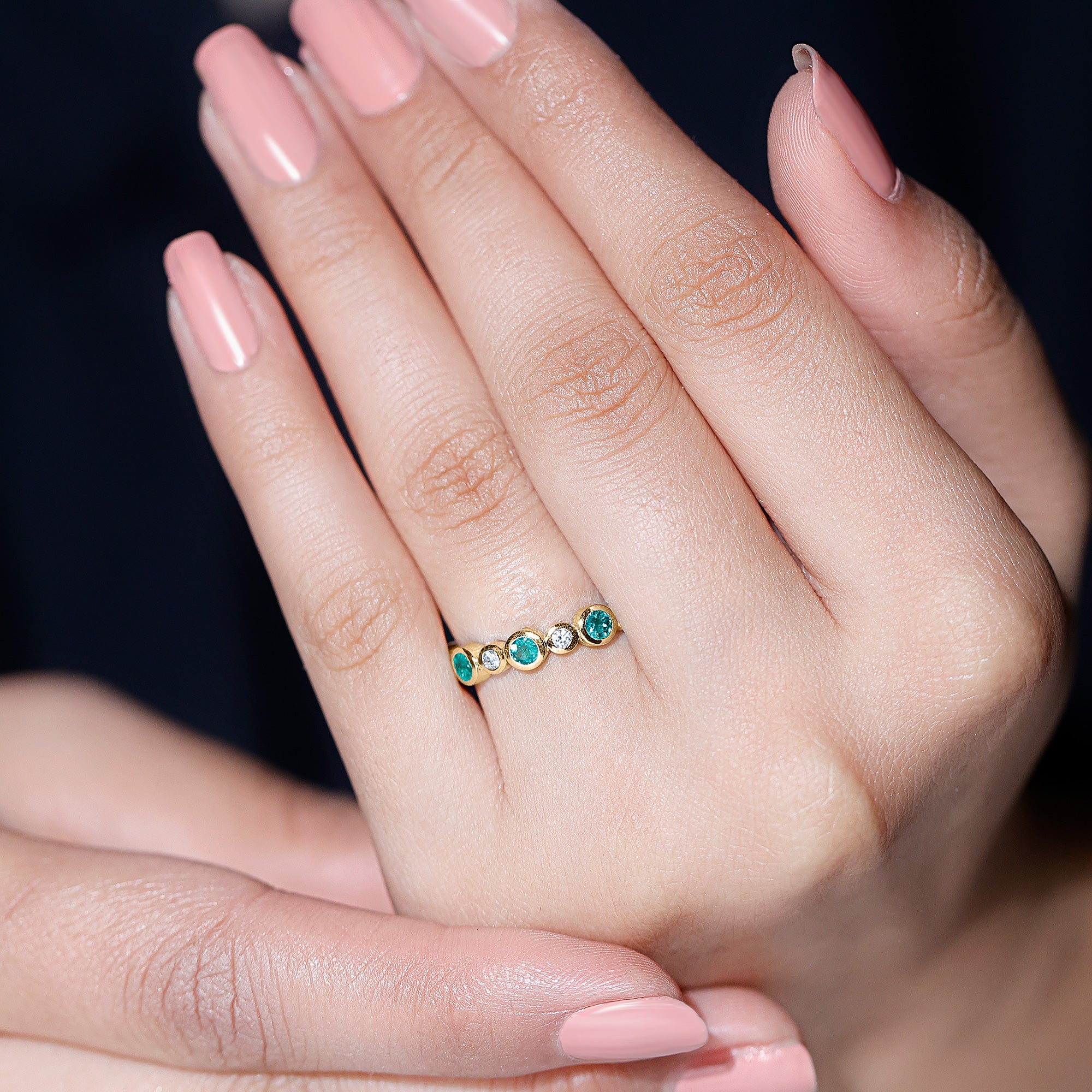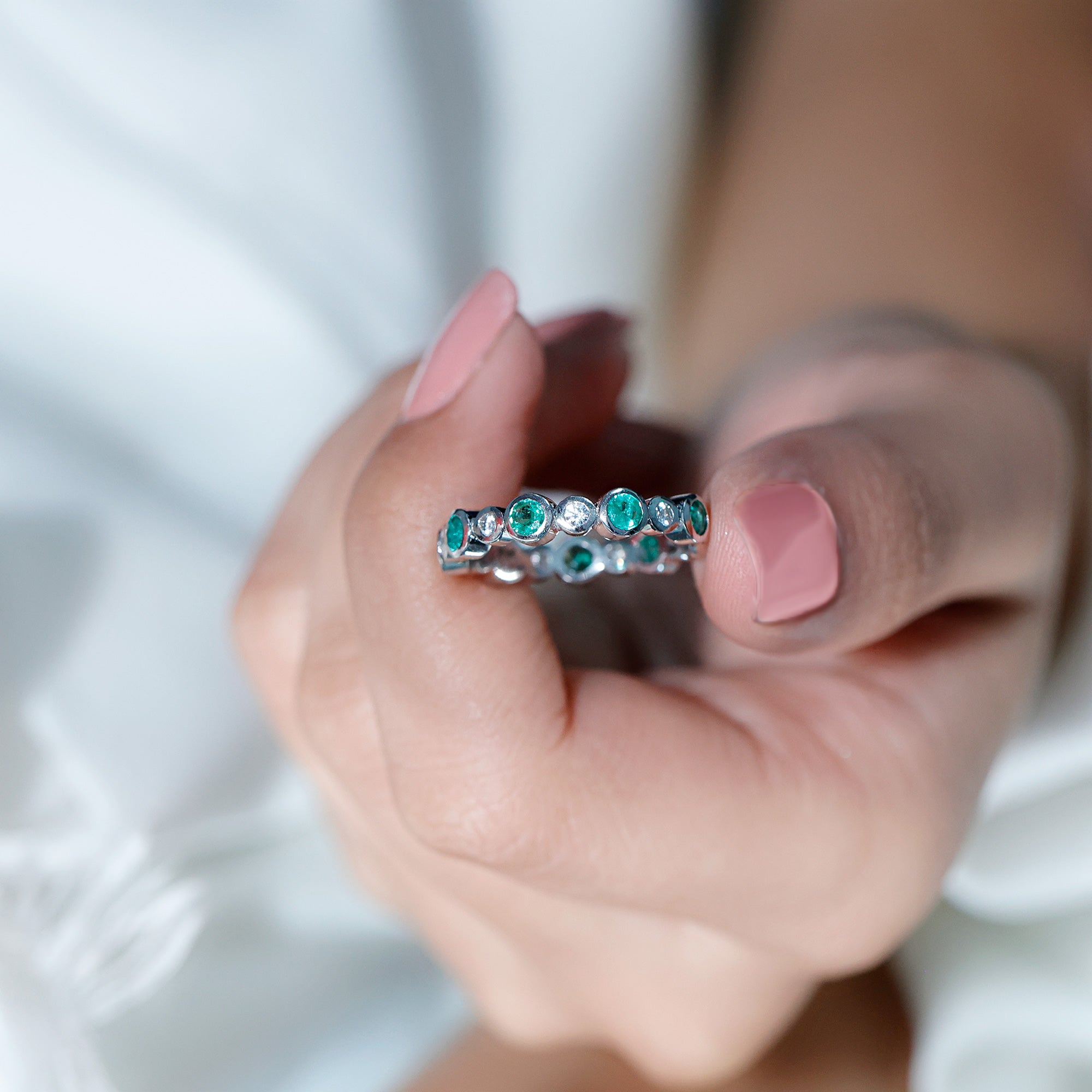Emerald Eternity Rings: - Our elegant and dazzling emerald eternity rings feature rich emeralds encircling the whole band. These rings symbolize enduring love and passion. The unbroken circle of emerald gemstones signifies an unbreakable connection and commitment. Emerald rings represent harmony and renewal, making them ideal for couples wanting to build lasting connections with each other.