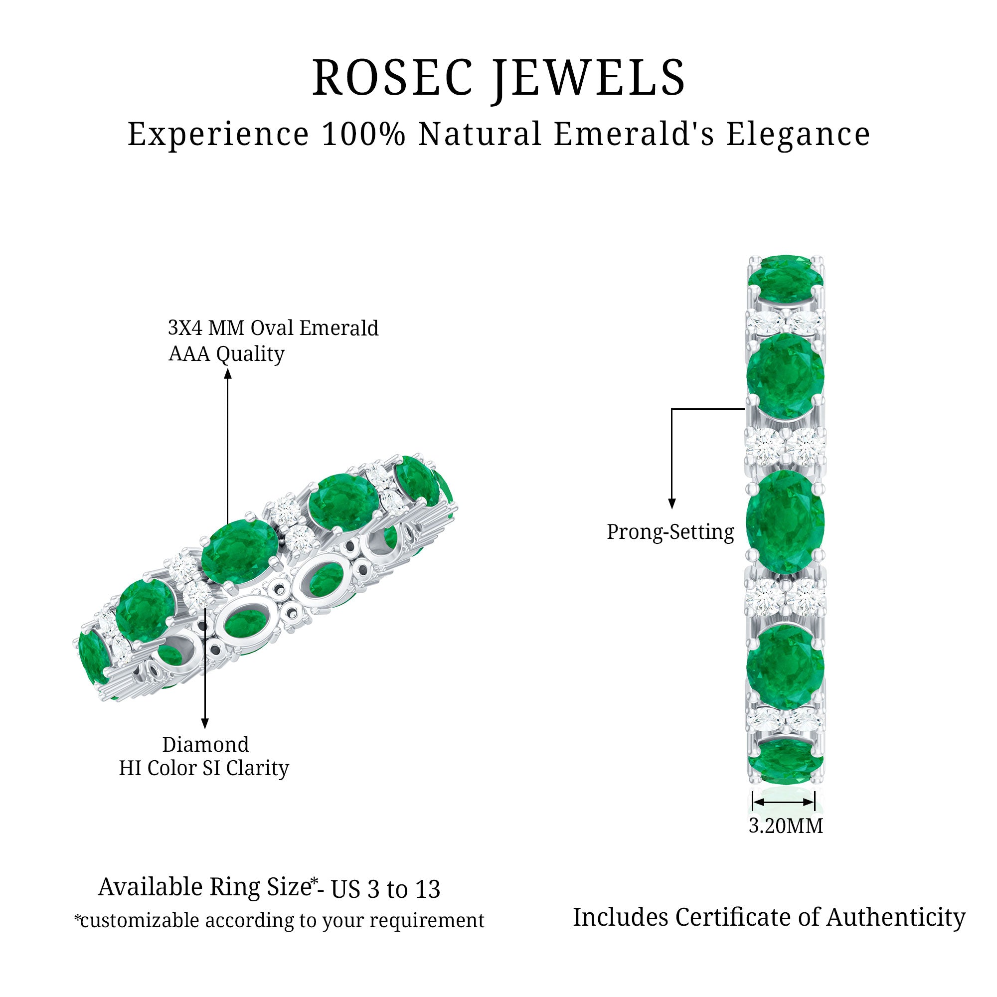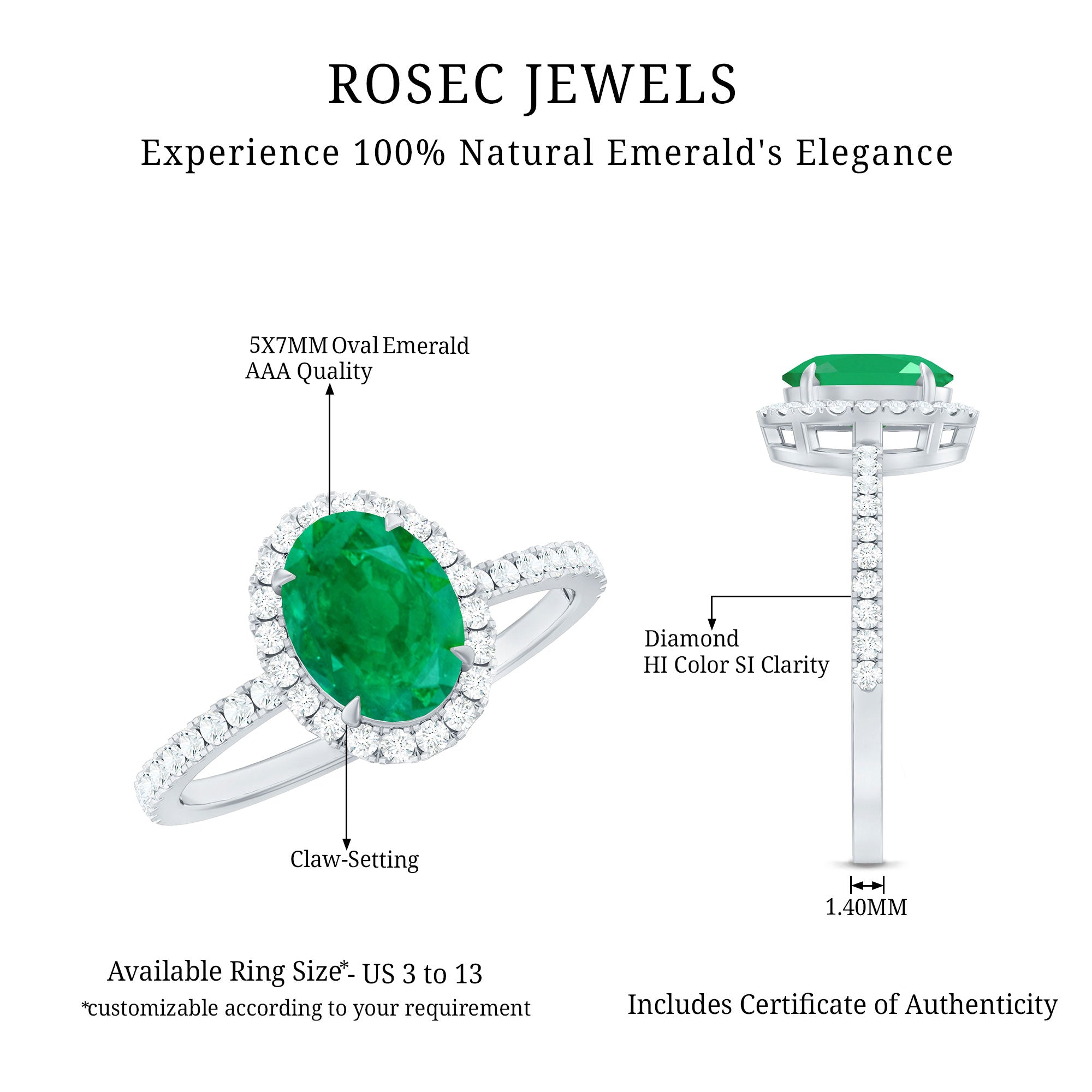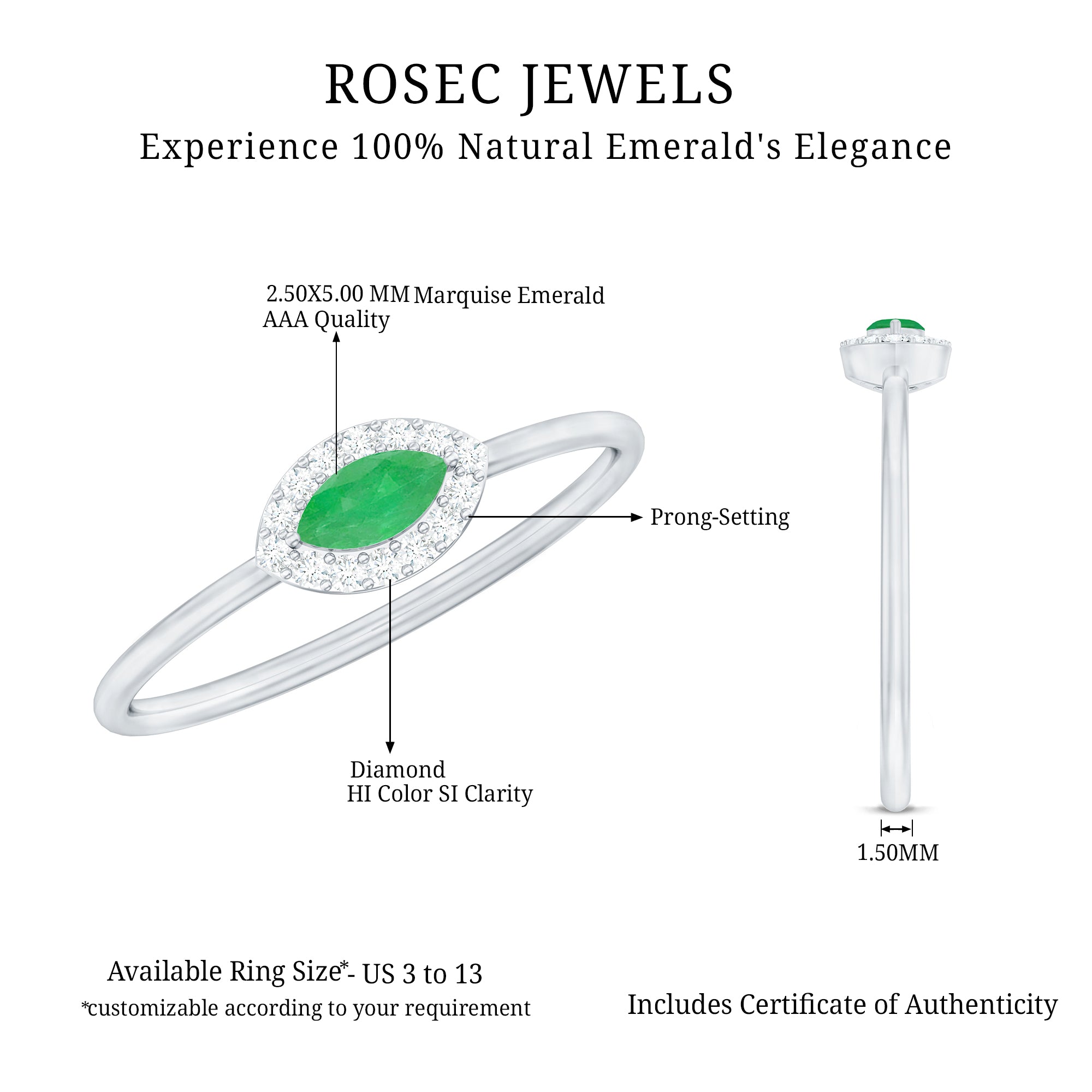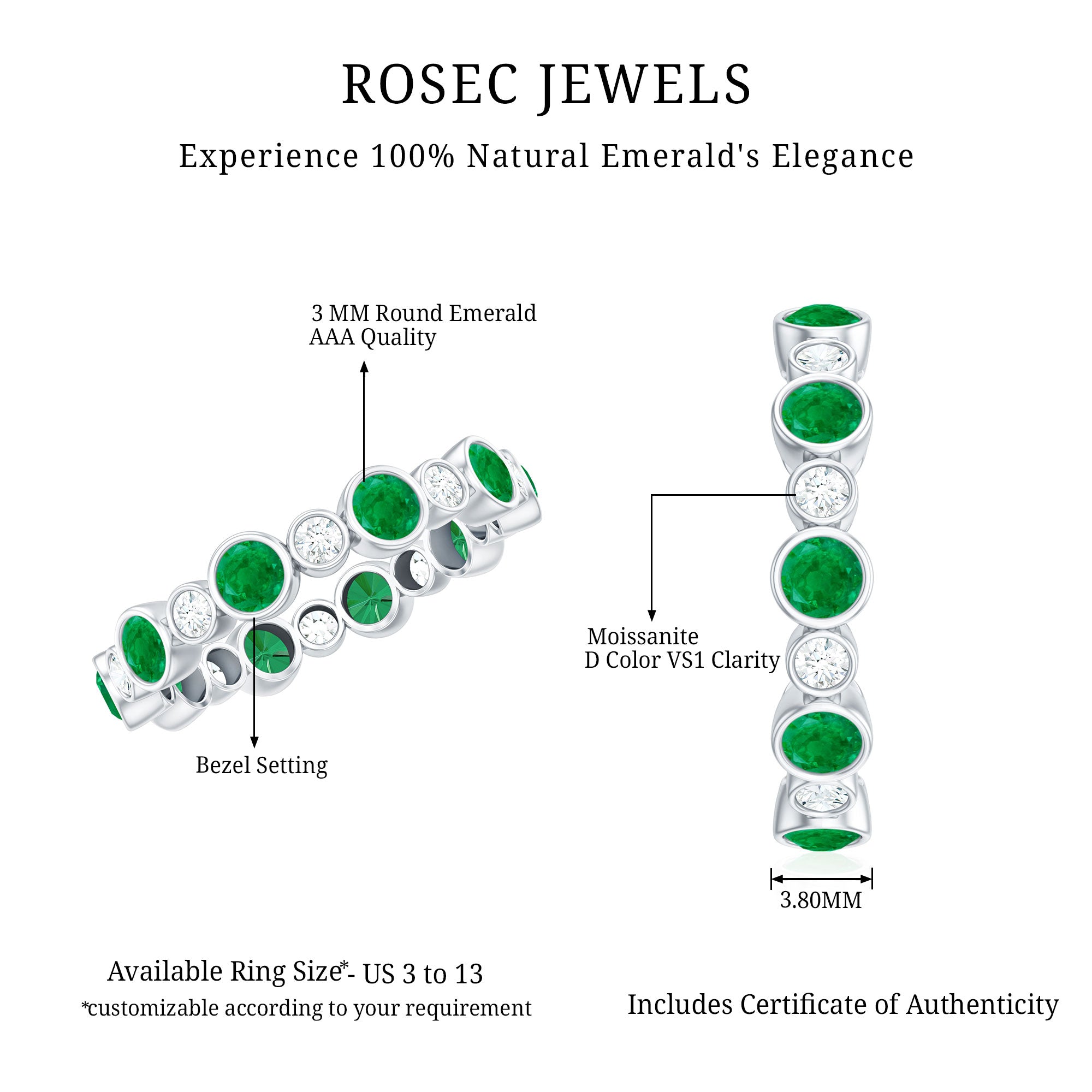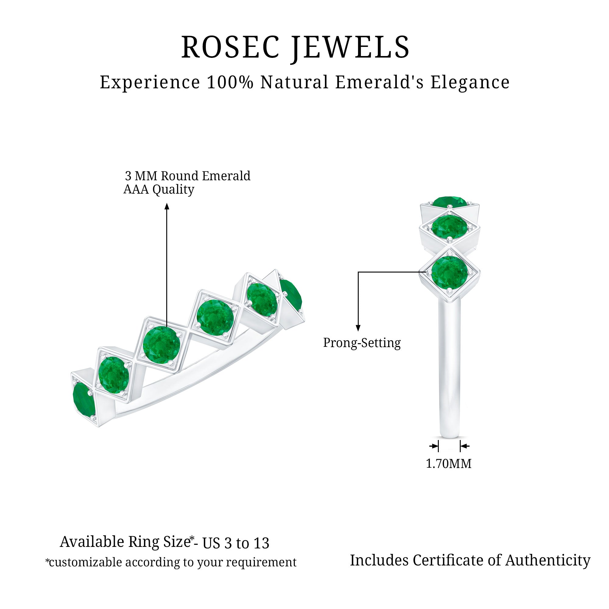 Rosec Jewels uses Genuine Emeralds in Rings