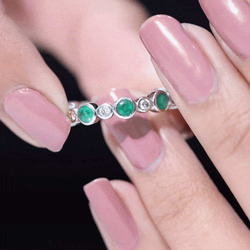 • Emerald Eternity Rings: - Our elegant and dazzling emerald eternity rings feature rich emeralds encircling the whole band. These rings symbolize enduring love and passion. The unbroken circle of emerald gemstones signifies an unbreakable connection and commitment. Emerald rings represent harmony and renewal, making them ideal for couples wanting to build lasting connections with each other.
