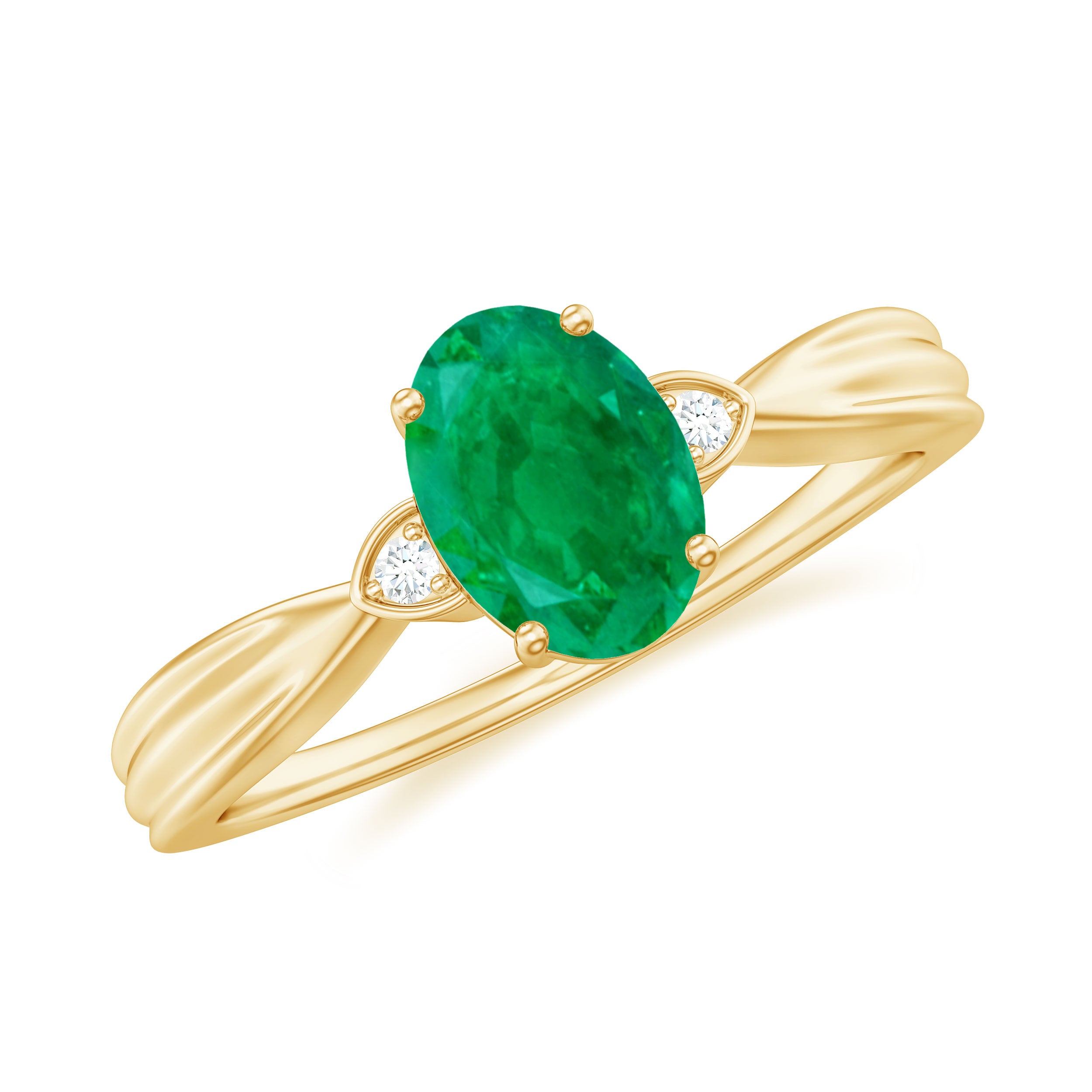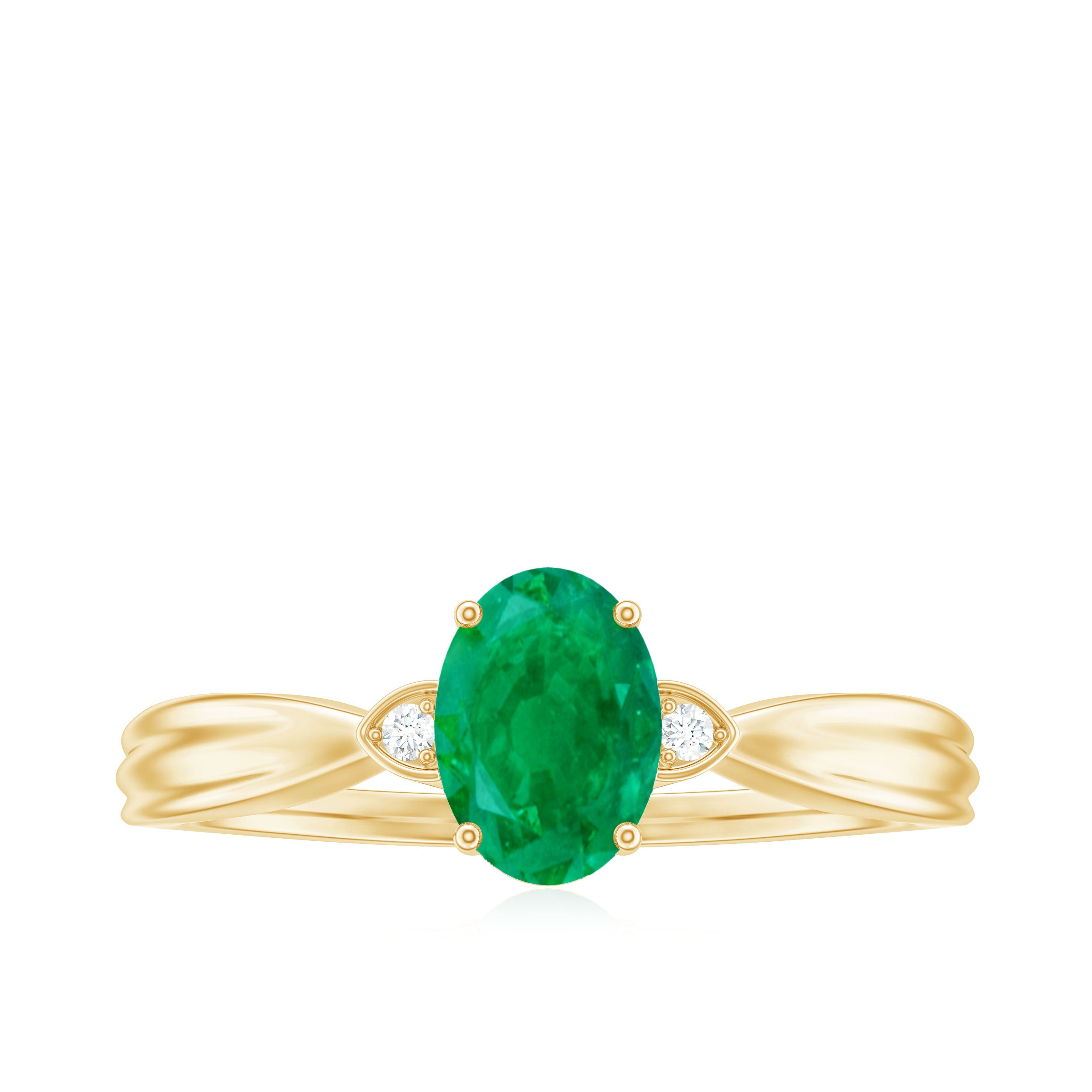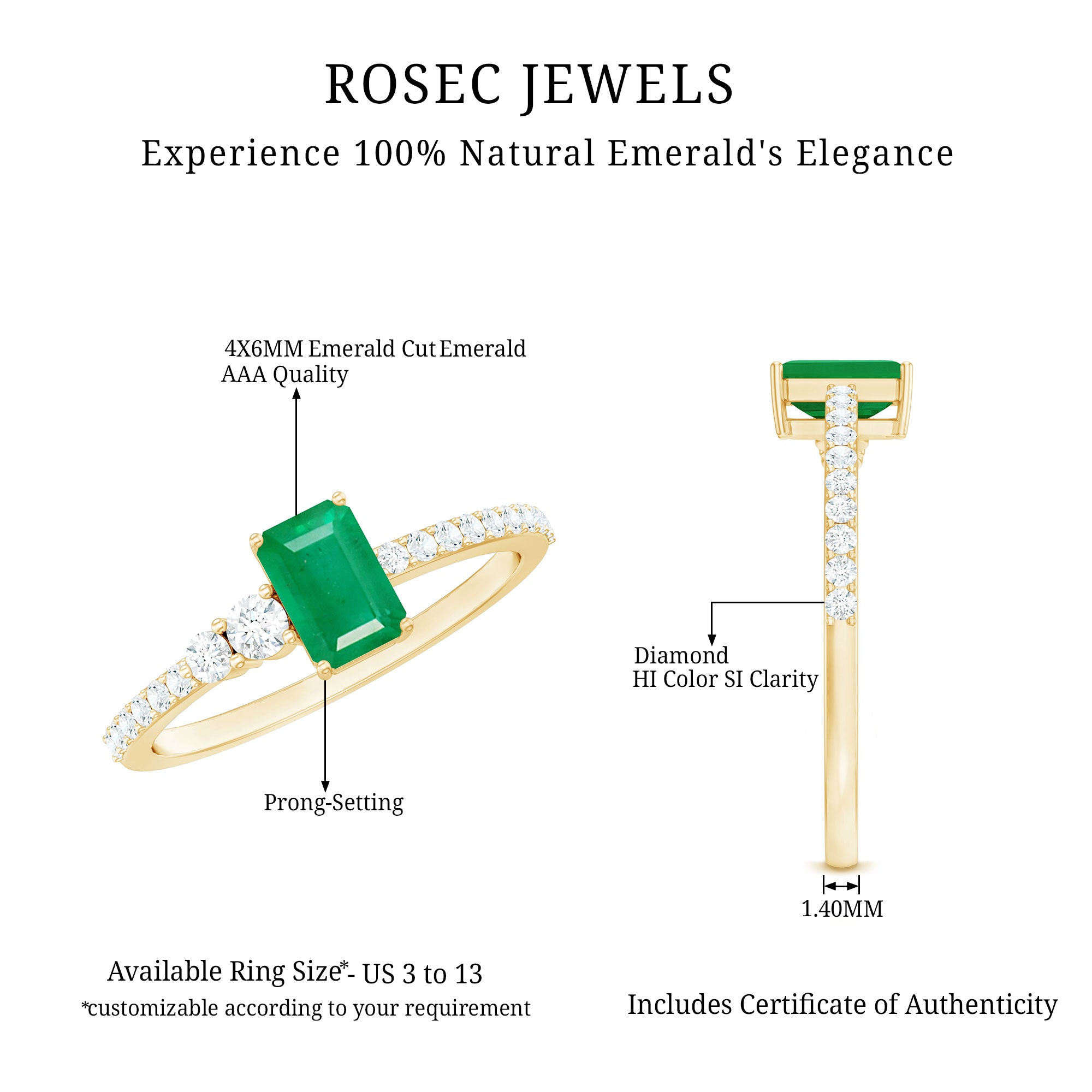 Emerald promise rings: - Symbolize love, loyalty, and commitment. They are beautiful and represent lasting love. Craft each piece with white gold or yellow gold metal and give it as a promising token to your partners. The emerald ring's intense and vibrant color adds elegance and significant meaning to the heartfelt gesture.