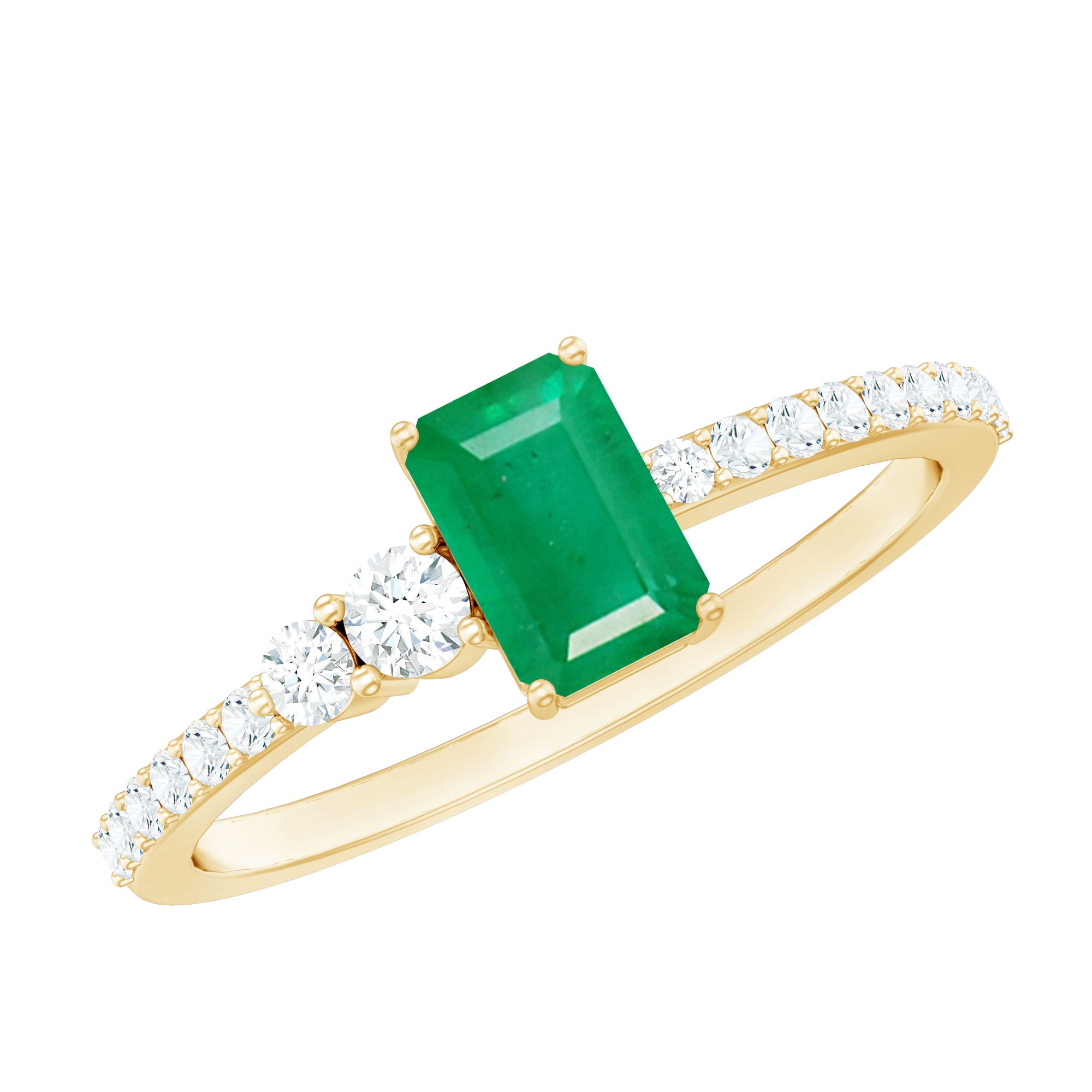 Emerald Solitaire Rings: - Features a single emerald that takes the center's attention. Popular emerald rings are usually a vibrant green color with impressive transparency. Add this beautiful piece to your jewelry collection. It can complement any outfit and make a unique statement that is all yours.
