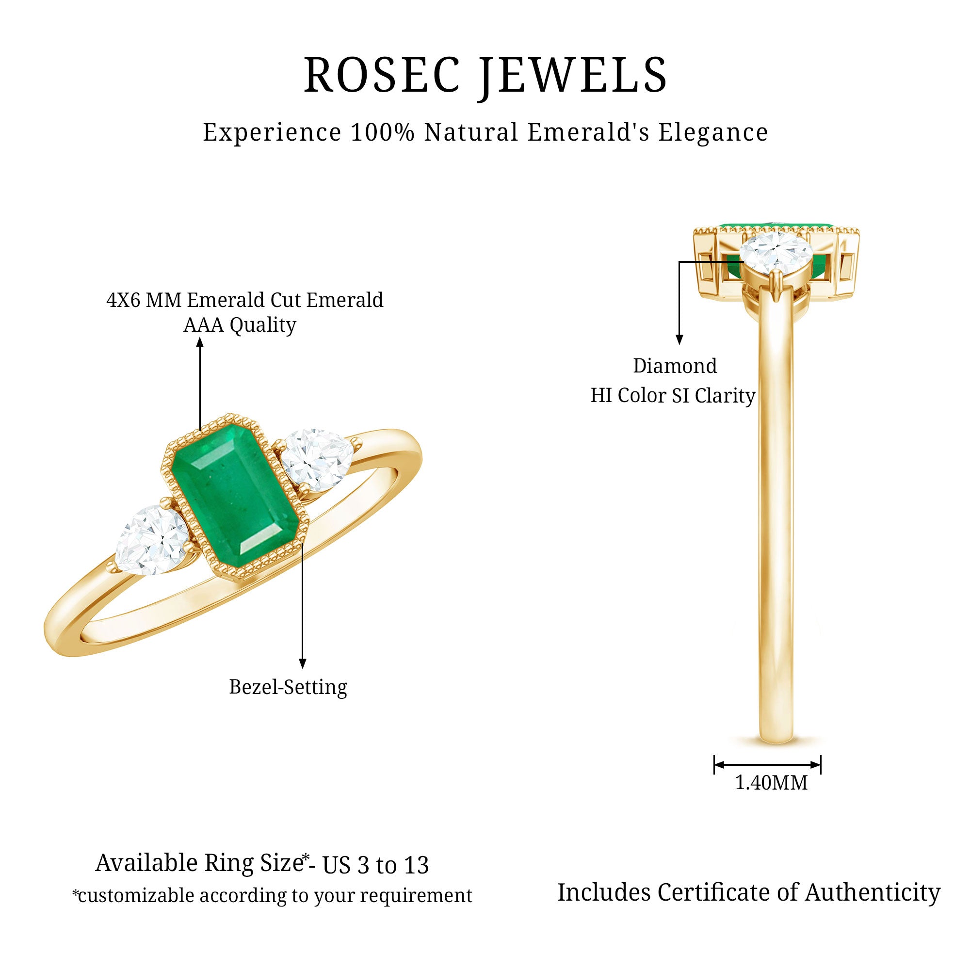 Emeralds have a Mohs hardness rating of 7.5 to 8. Making it an incredibly durable choice. Choose a ring setting that offers overall protection to the emerald gemstone.