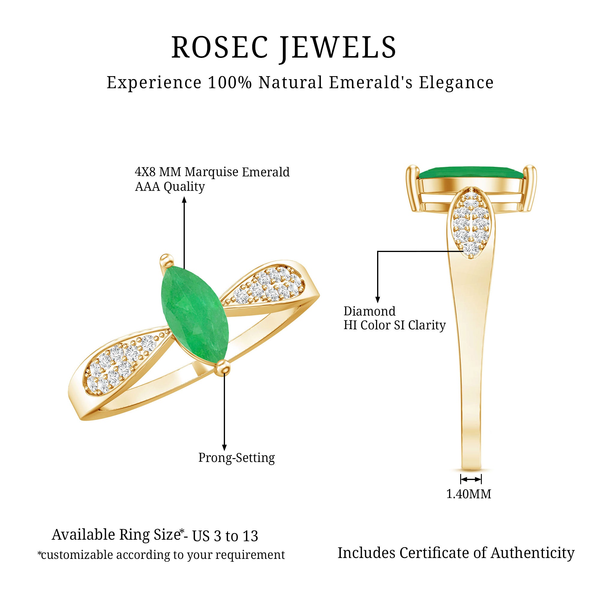 Emerald promise rings: - Symbolize love, loyalty, and commitment. They are beautiful and represent lasting love. Craft each piece with white gold or yellow gold metal and give it as a promising token to your partners. The emerald ring's intense and vibrant color adds elegance and significant meaning to the heartfelt gesture.