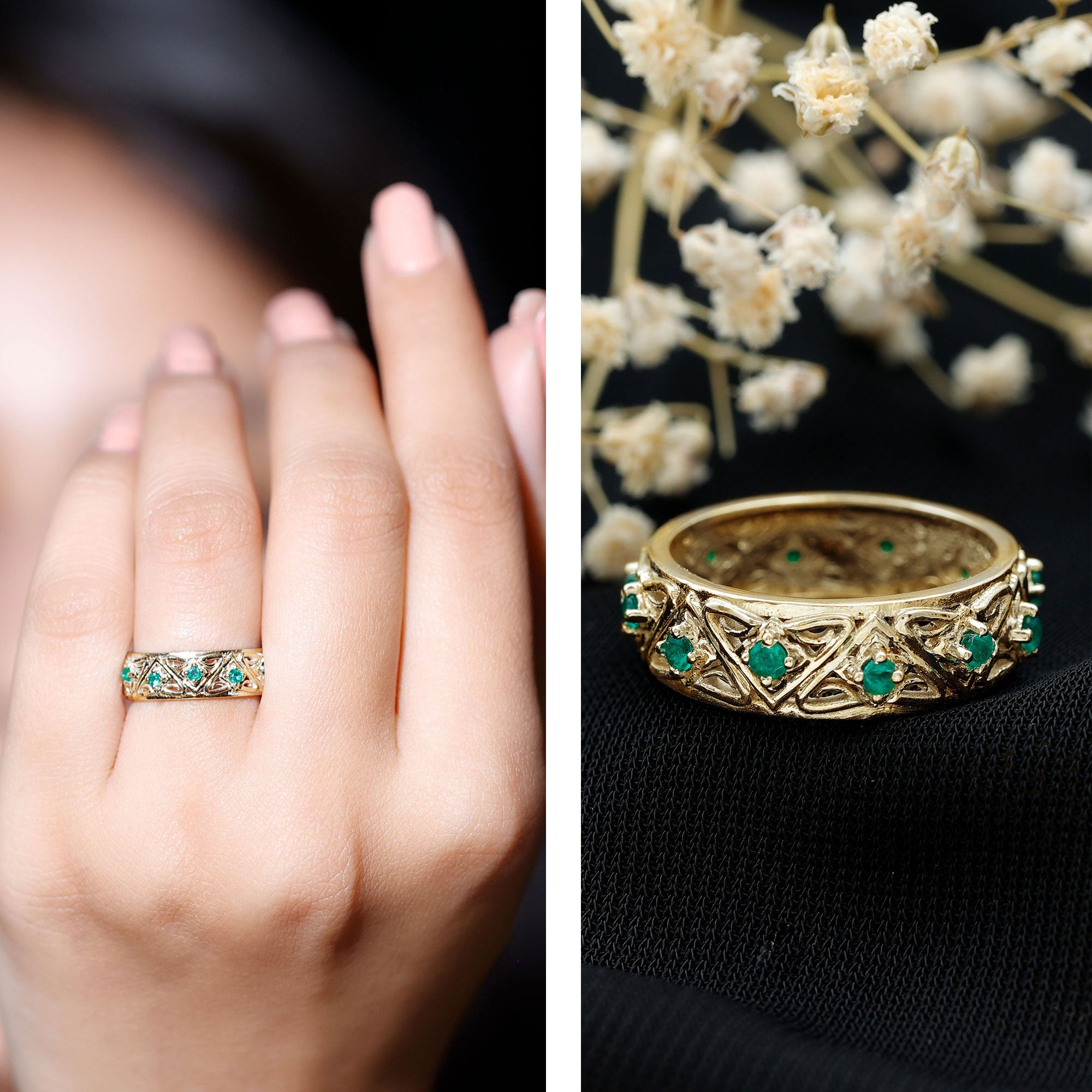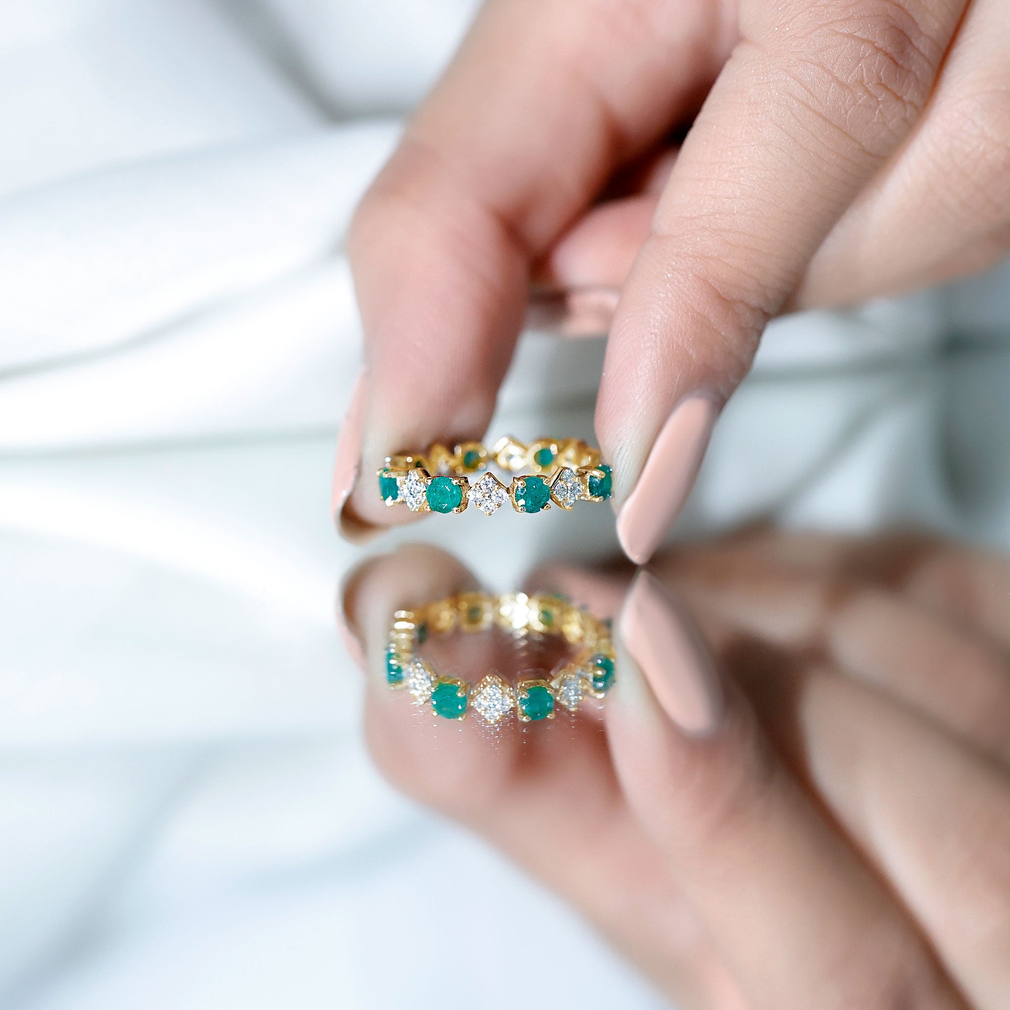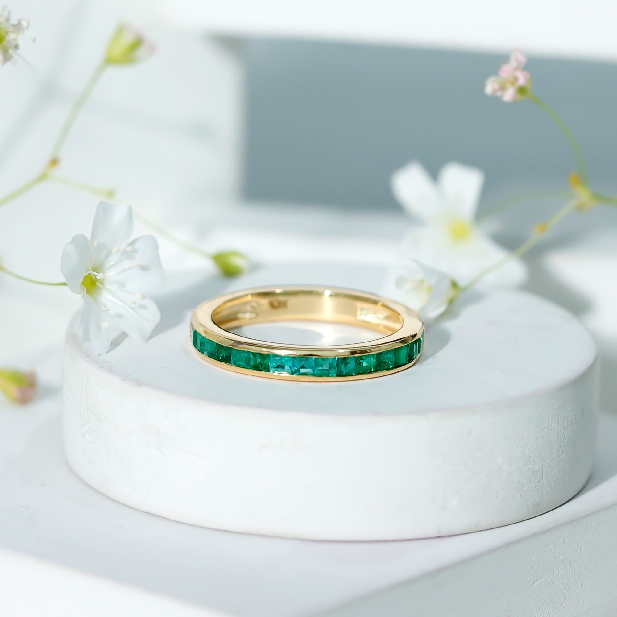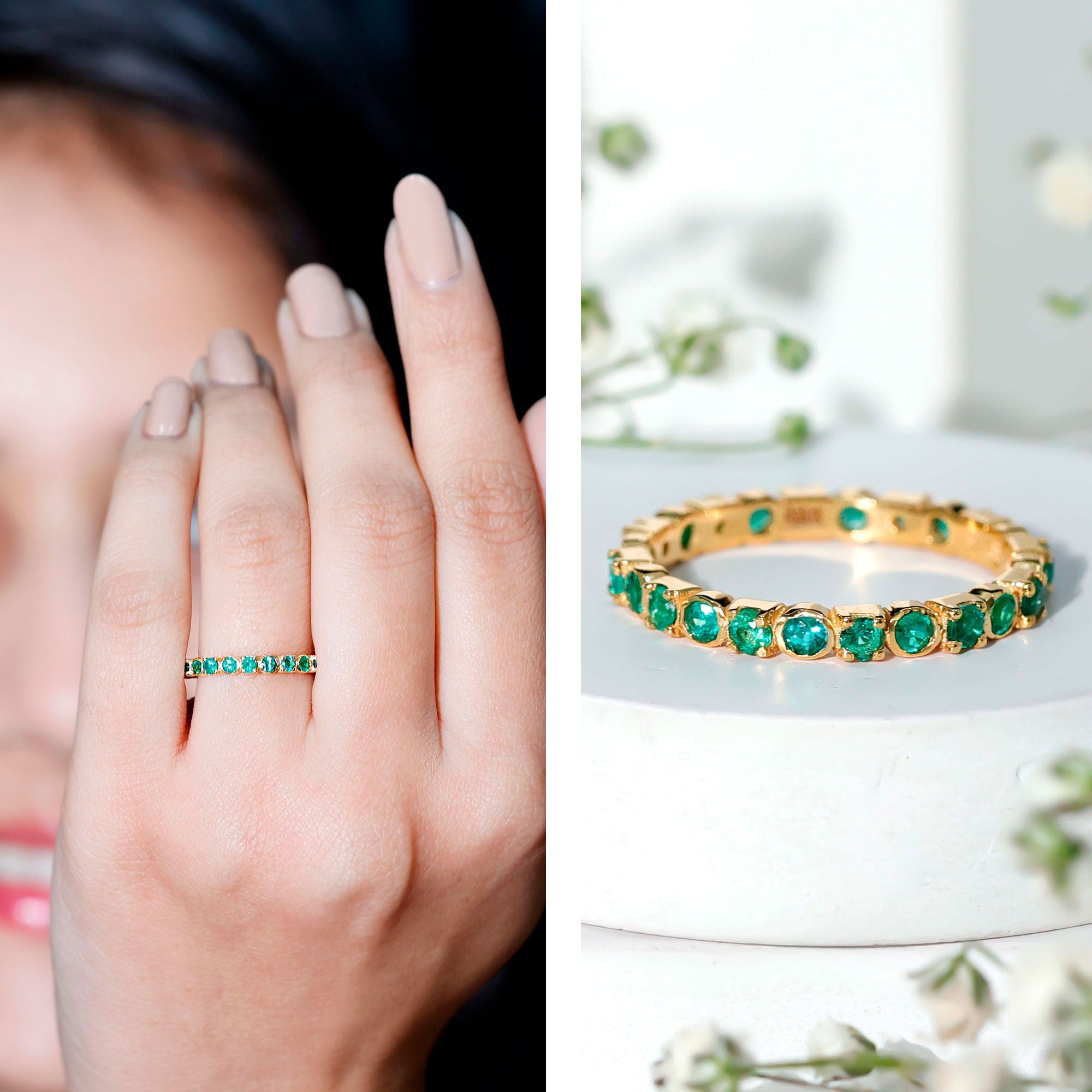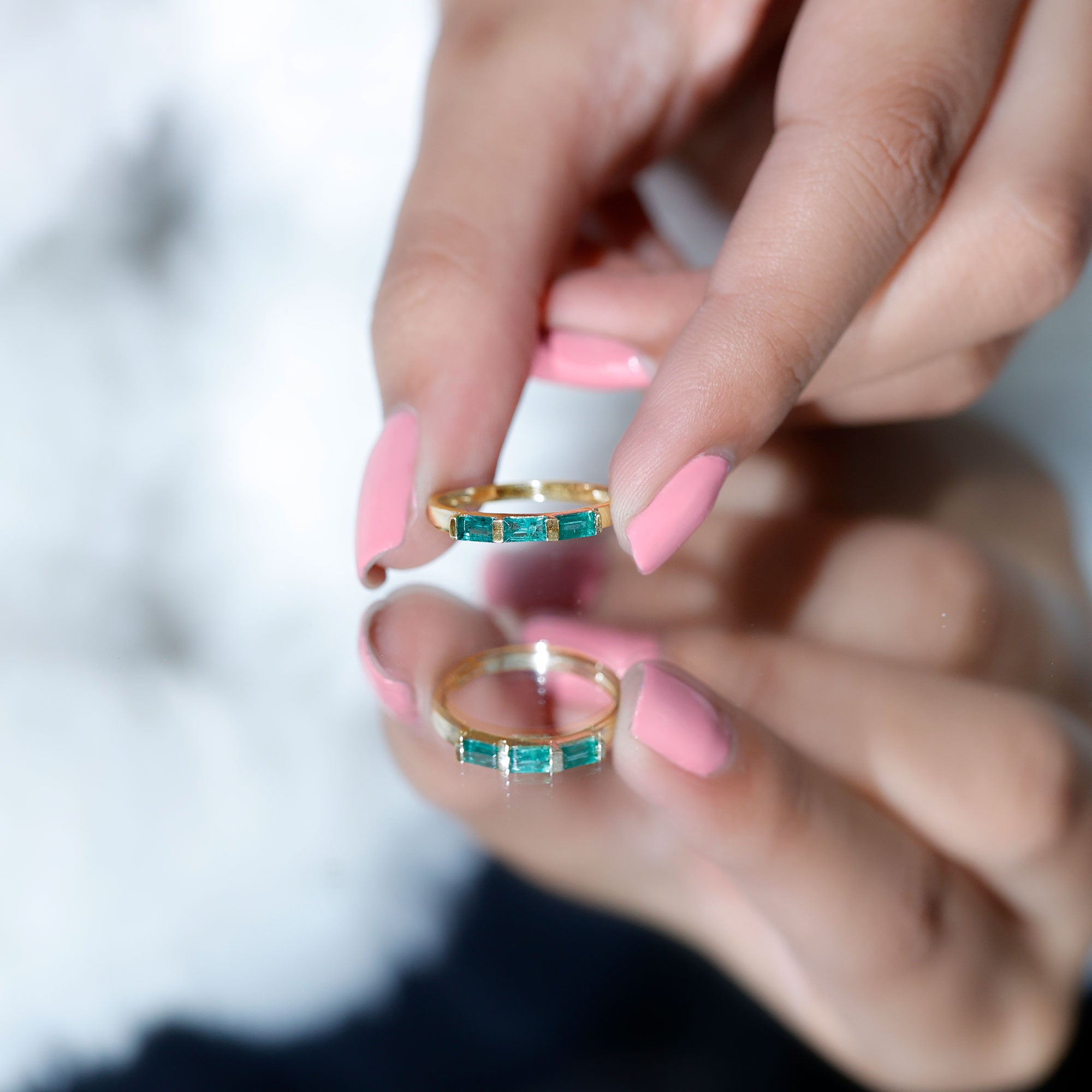 • Emerald Eternity Rings: - Our elegant and dazzling emerald eternity rings feature rich emeralds encircling the whole band. These rings symbolize enduring love and passion. The unbroken circle of emerald gemstones signifies an unbreakable connection and commitment. Emerald rings represent harmony and renewal, making them ideal for couples wanting to build lasting connections with each other.