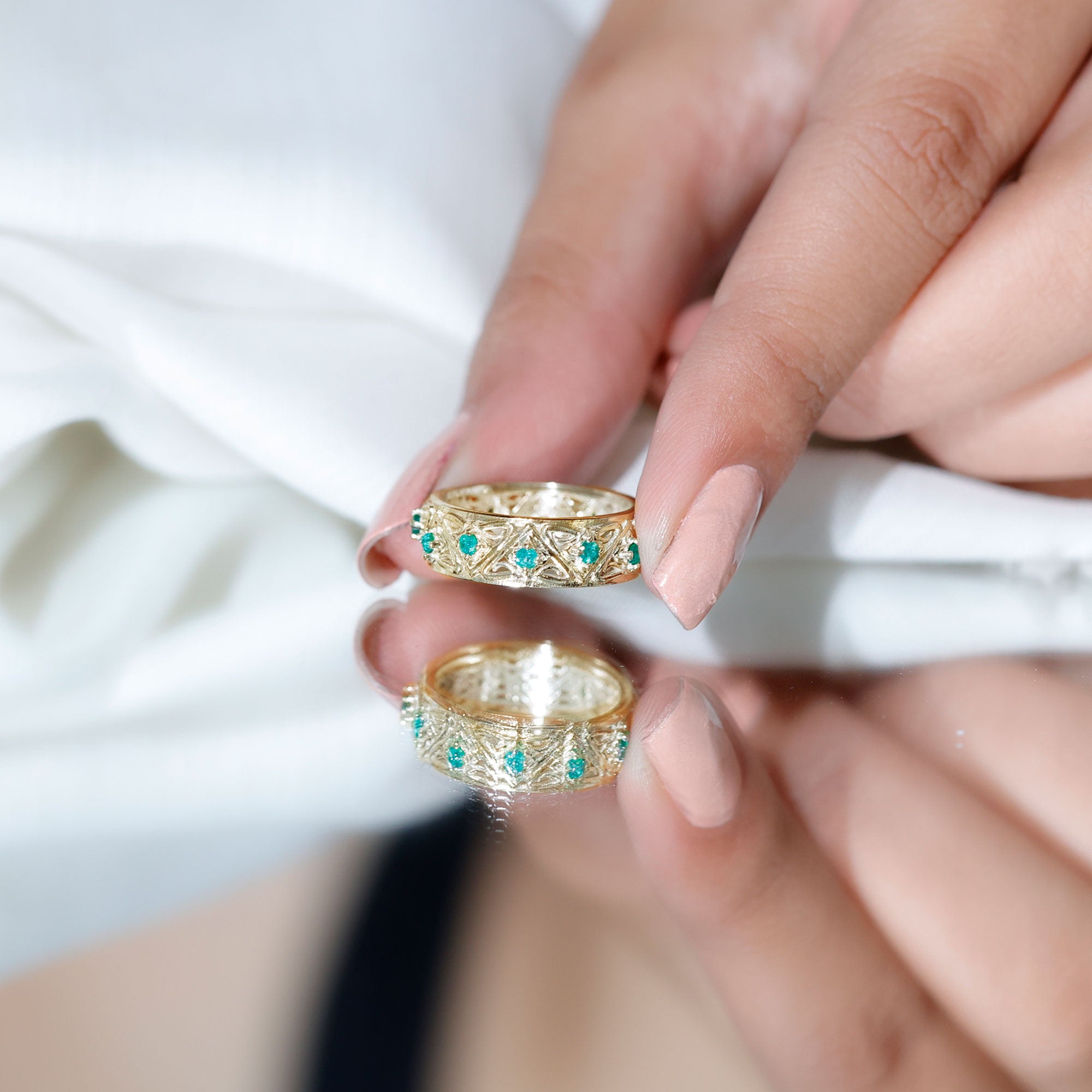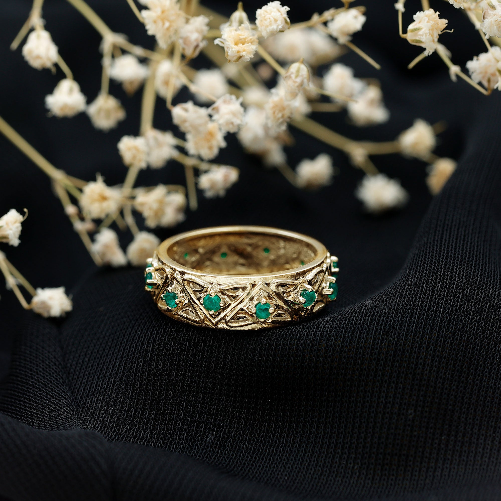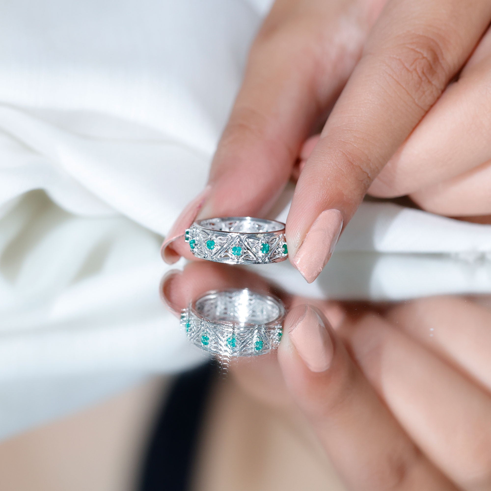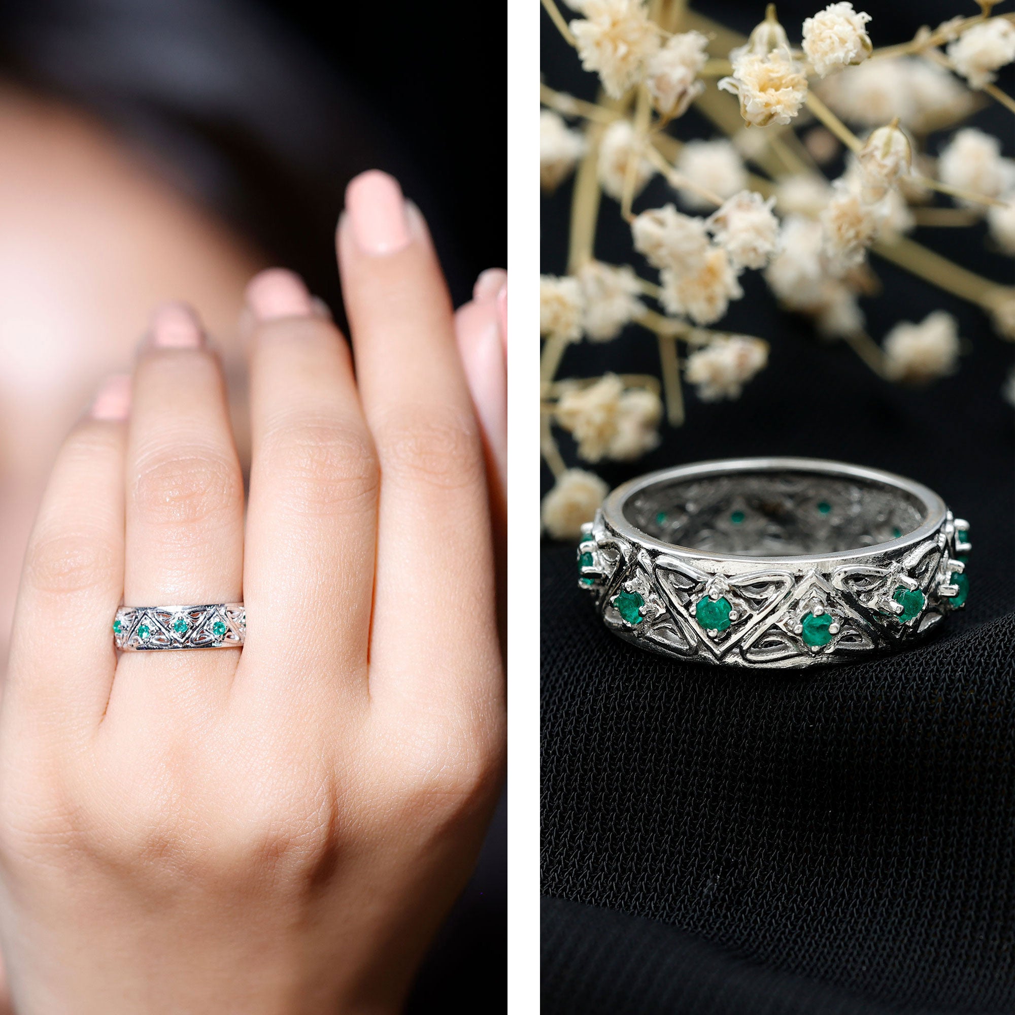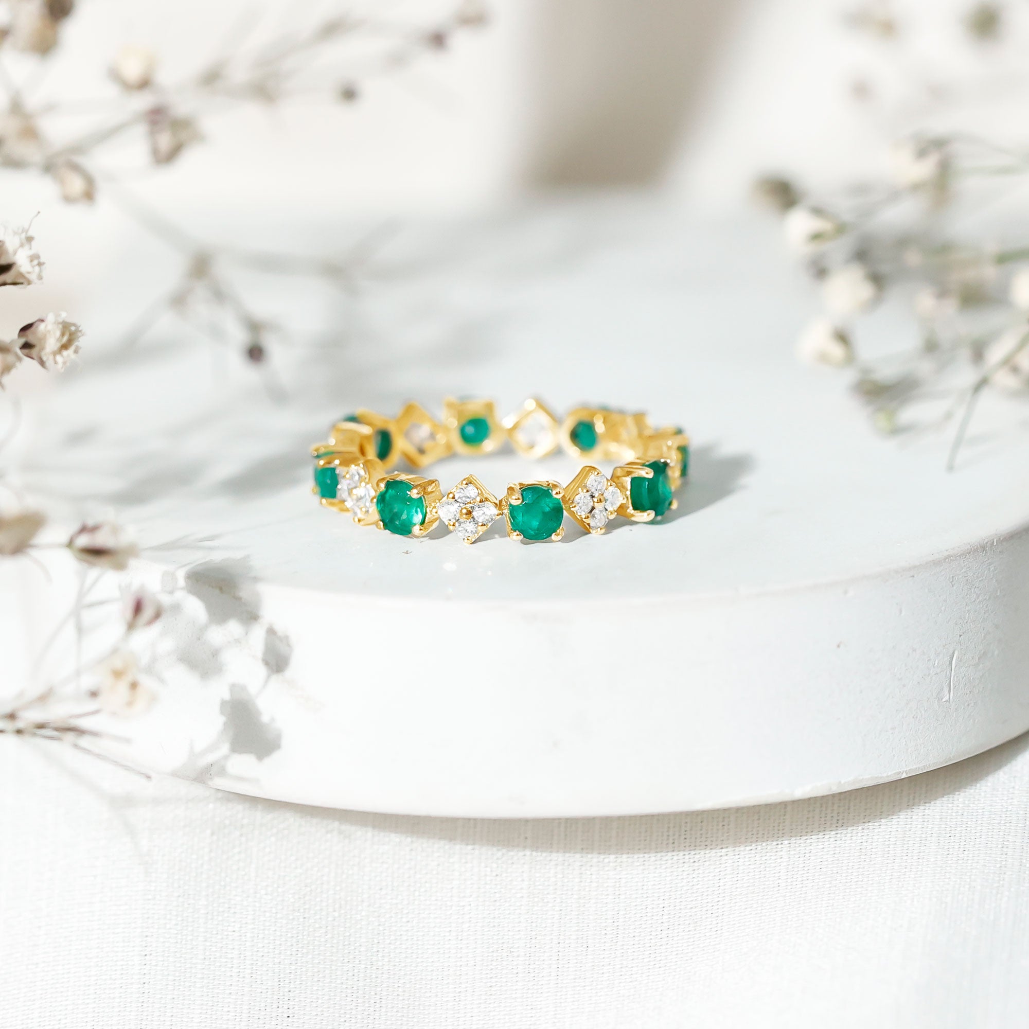 • Emerald Eternity Rings: - Our elegant and dazzling emerald eternity rings feature rich emeralds encircling the whole band. These rings symbolize enduring love and passion. The unbroken circle of emerald gemstones signifies an unbreakable connection and commitment. Emerald rings represent harmony and renewal, making them ideal for couples wanting to build lasting connections with each other.