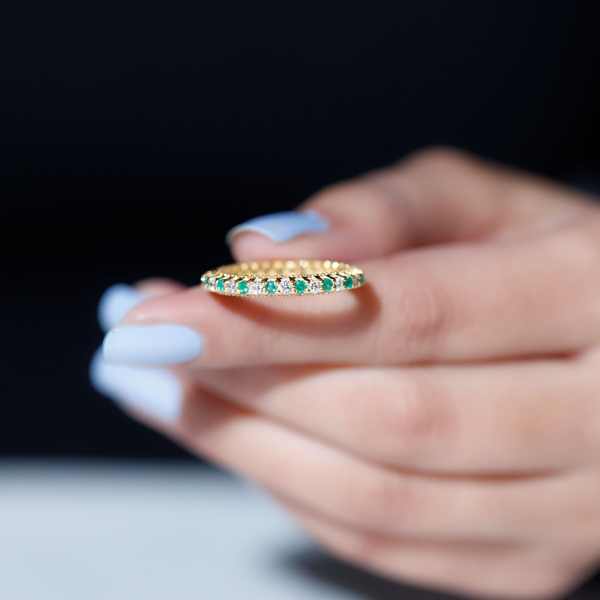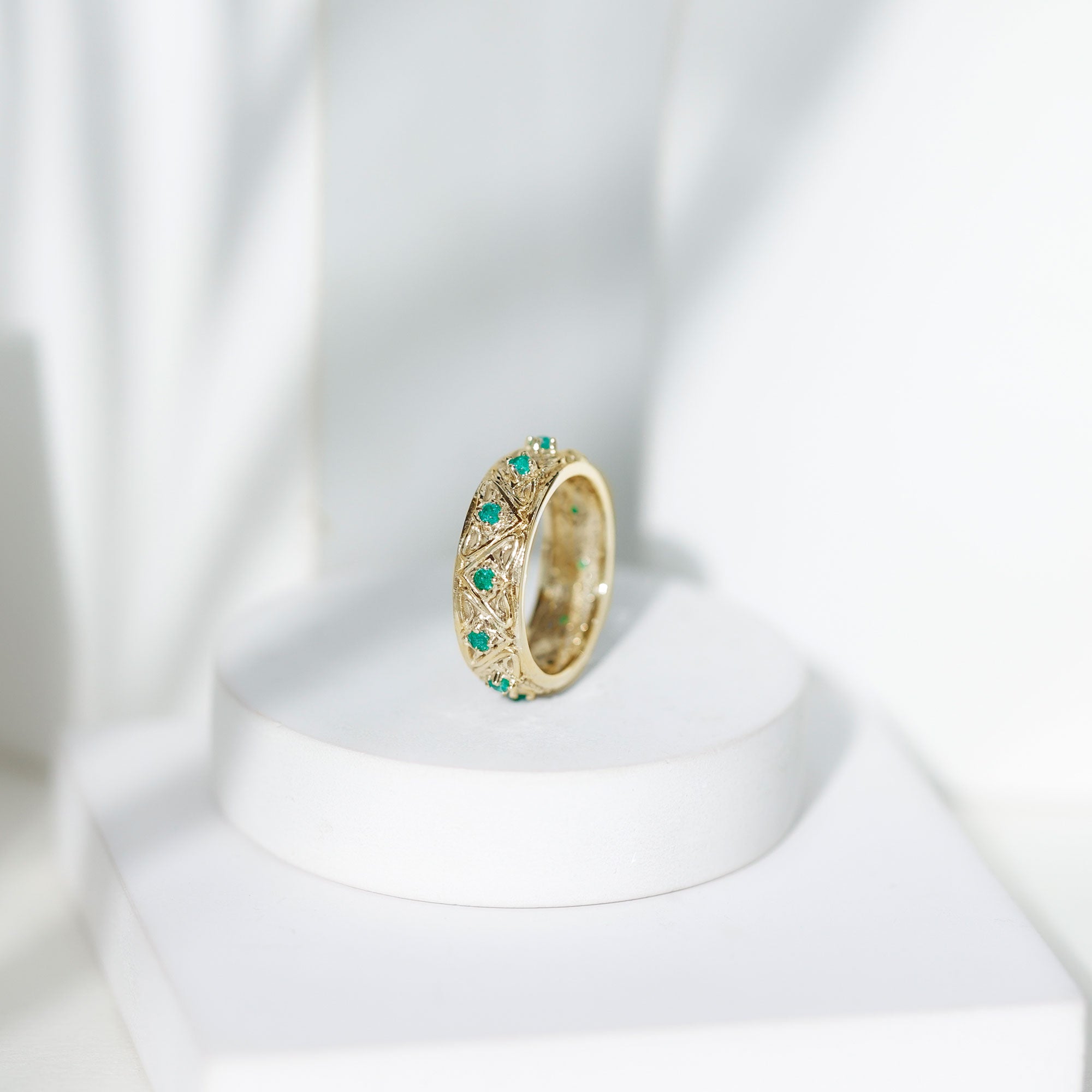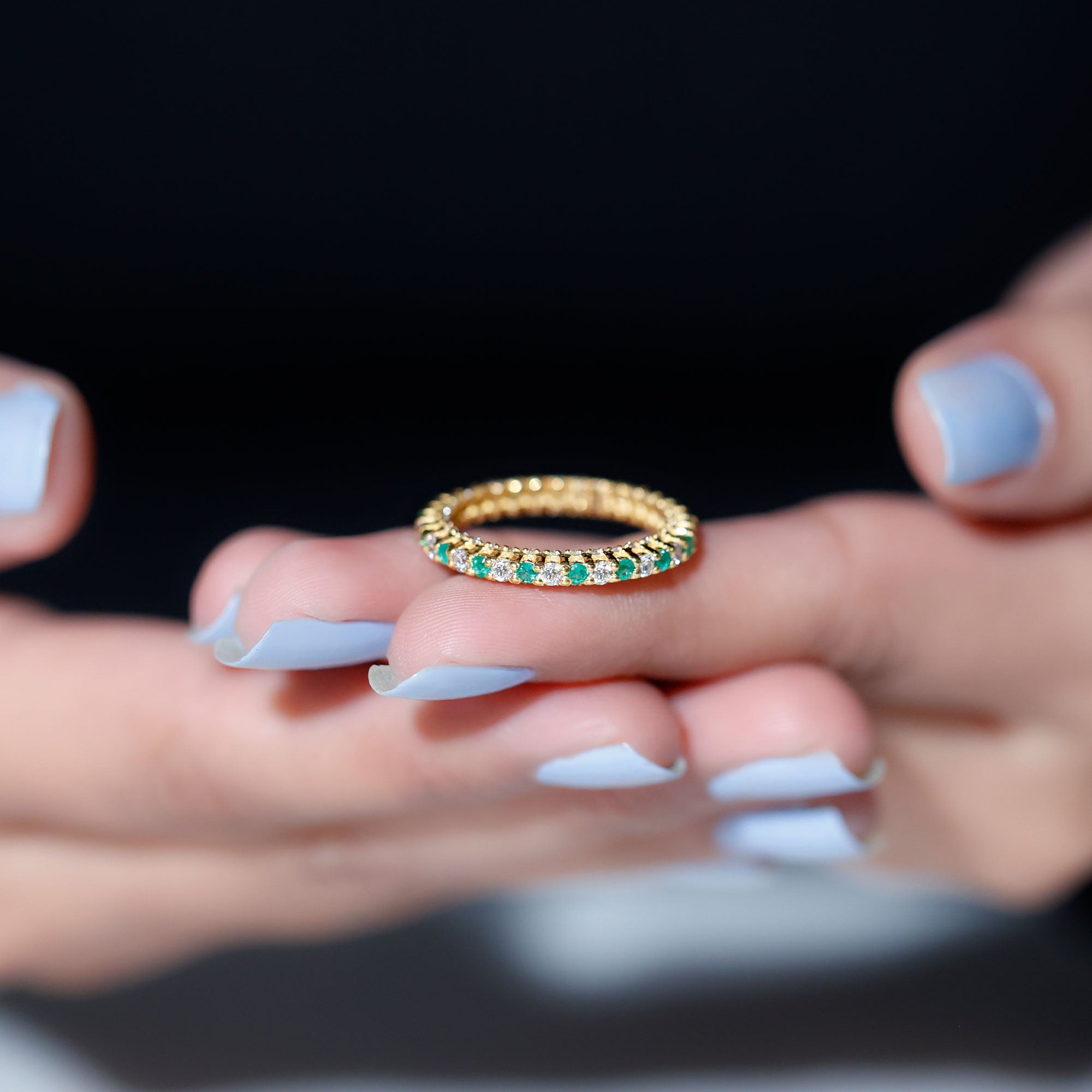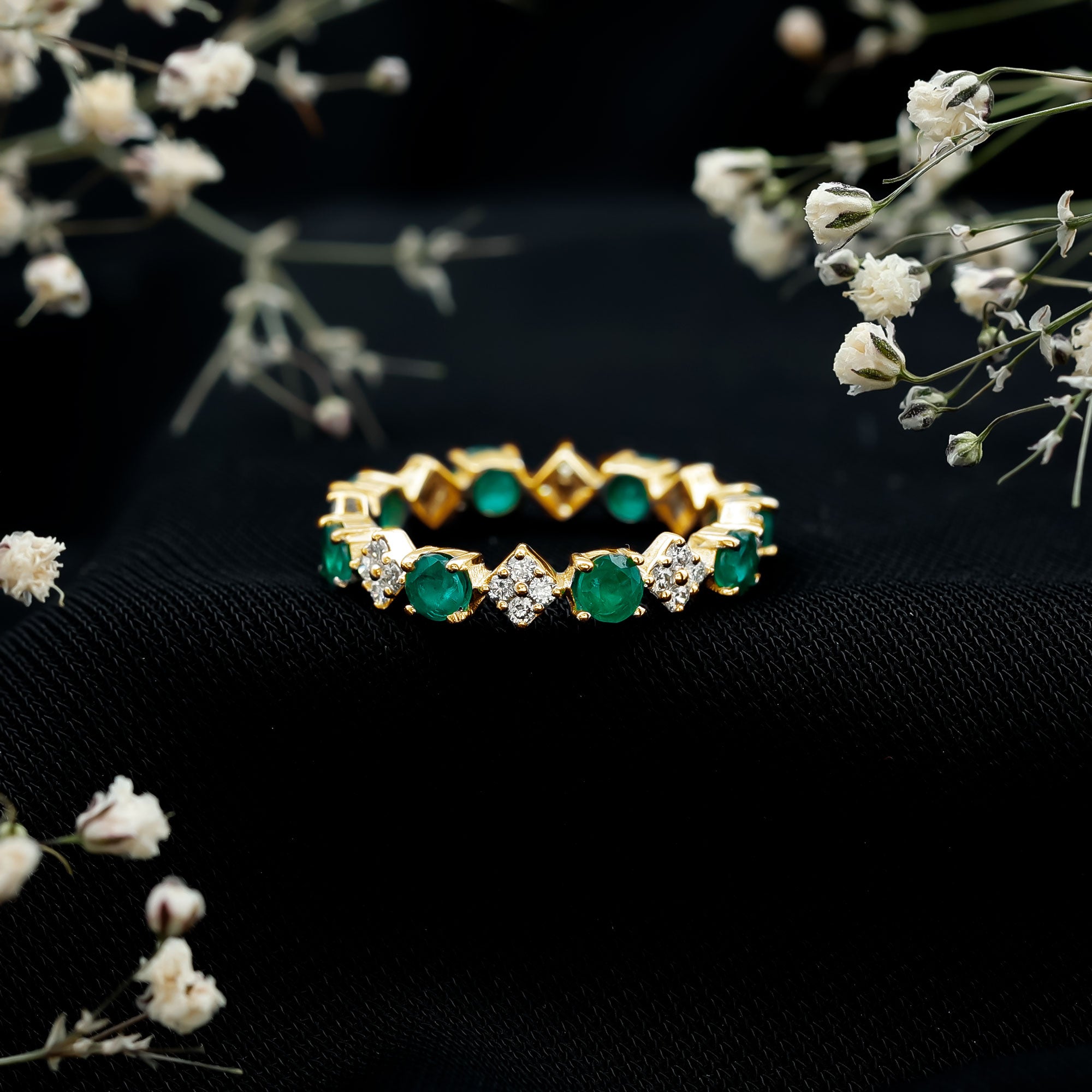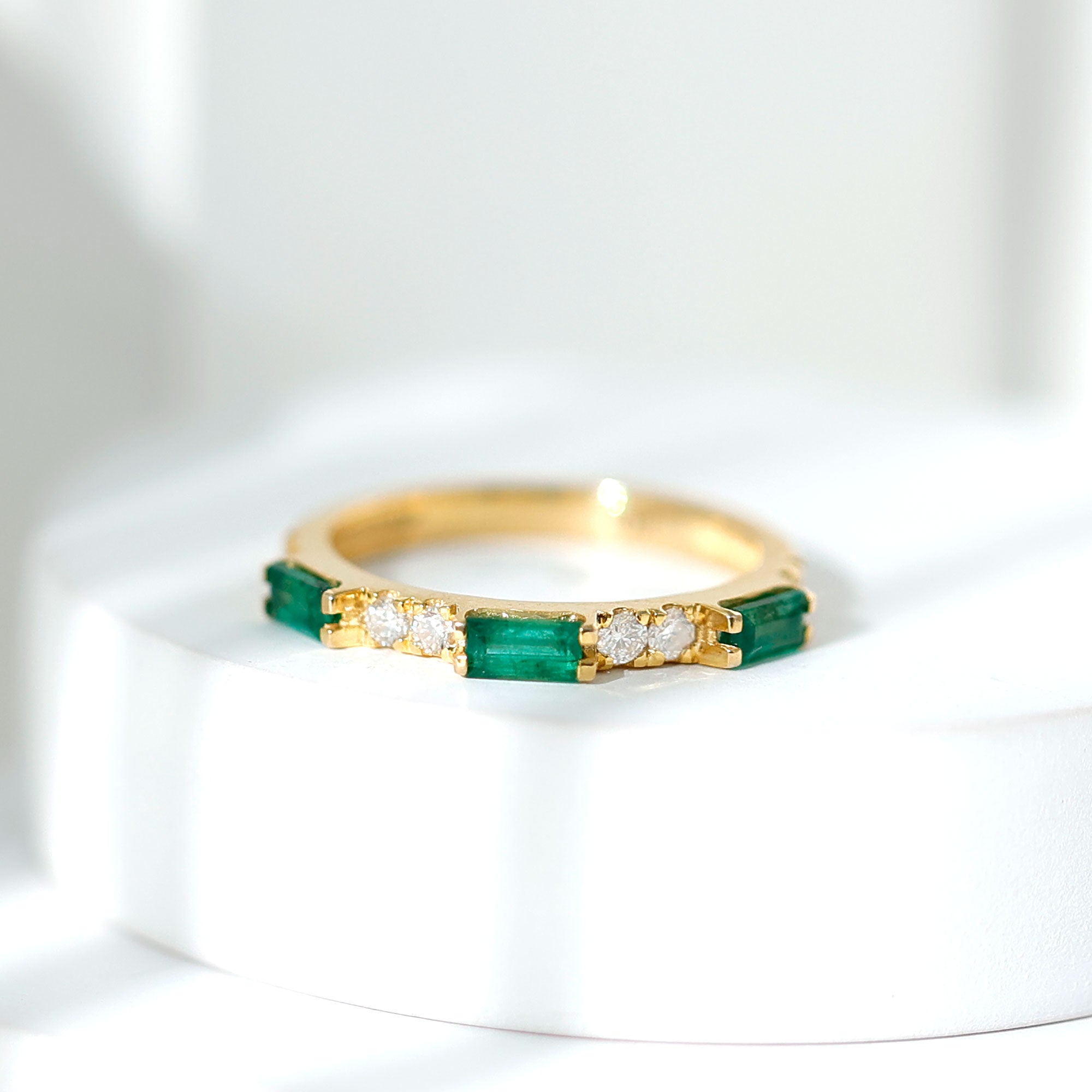 • Emerald Eternity Rings: - Our elegant and dazzling emerald eternity rings feature rich emeralds encircling the whole band. These rings symbolize enduring love and passion. The unbroken circle of emerald gemstones signifies an unbreakable connection and commitment. Emerald rings represent harmony and renewal, making them ideal for couples wanting to build lasting connections with each other.