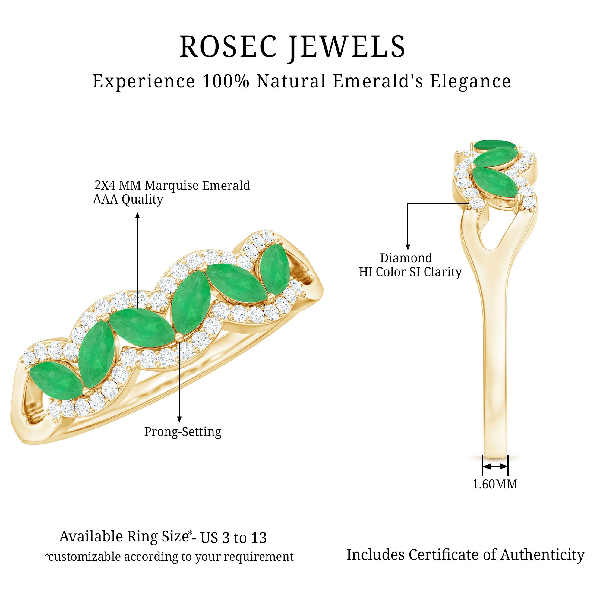 Owing to the nature of our handcrafted emerald rings for women, our jewelry designers have come up with designs that are not only a beauty to the eyes of the beholder but also a comfort to the wearer. The great versatility of emeralds, which can be cut into almost all standard and fancy shapes such as round, oval, princess, etc., and the signature emerald cut wedding rings, are a beauty to adore. We strive to create lasting pieces that will make you feel elegant every single day.