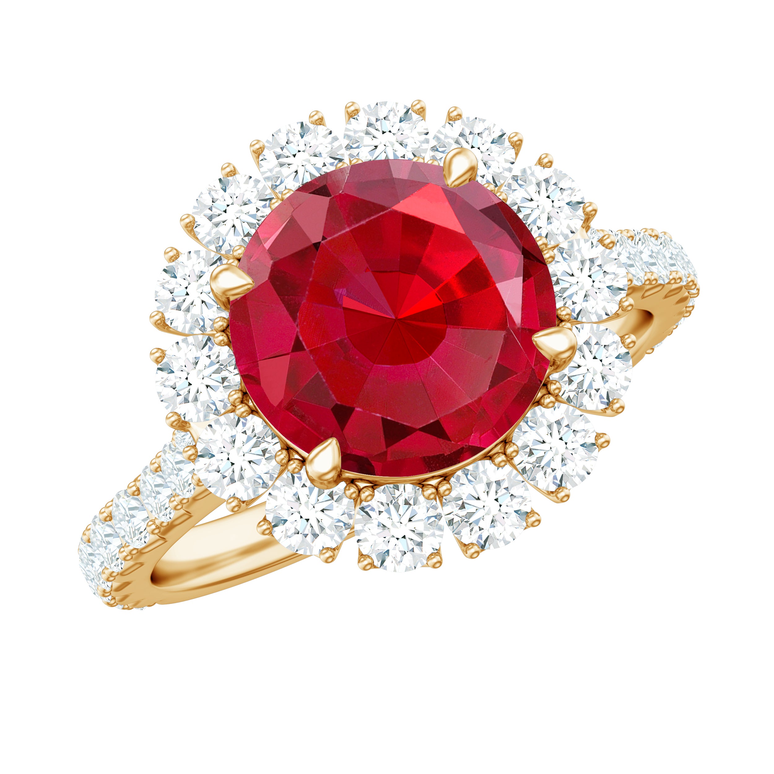 Halo Rings: Center gemstone is accentuated with shining or colored gemstones, usually smaller in size, to add a touch of sparkle in halo engagement rings. This style adds a layer of protection to the gemstones, too.