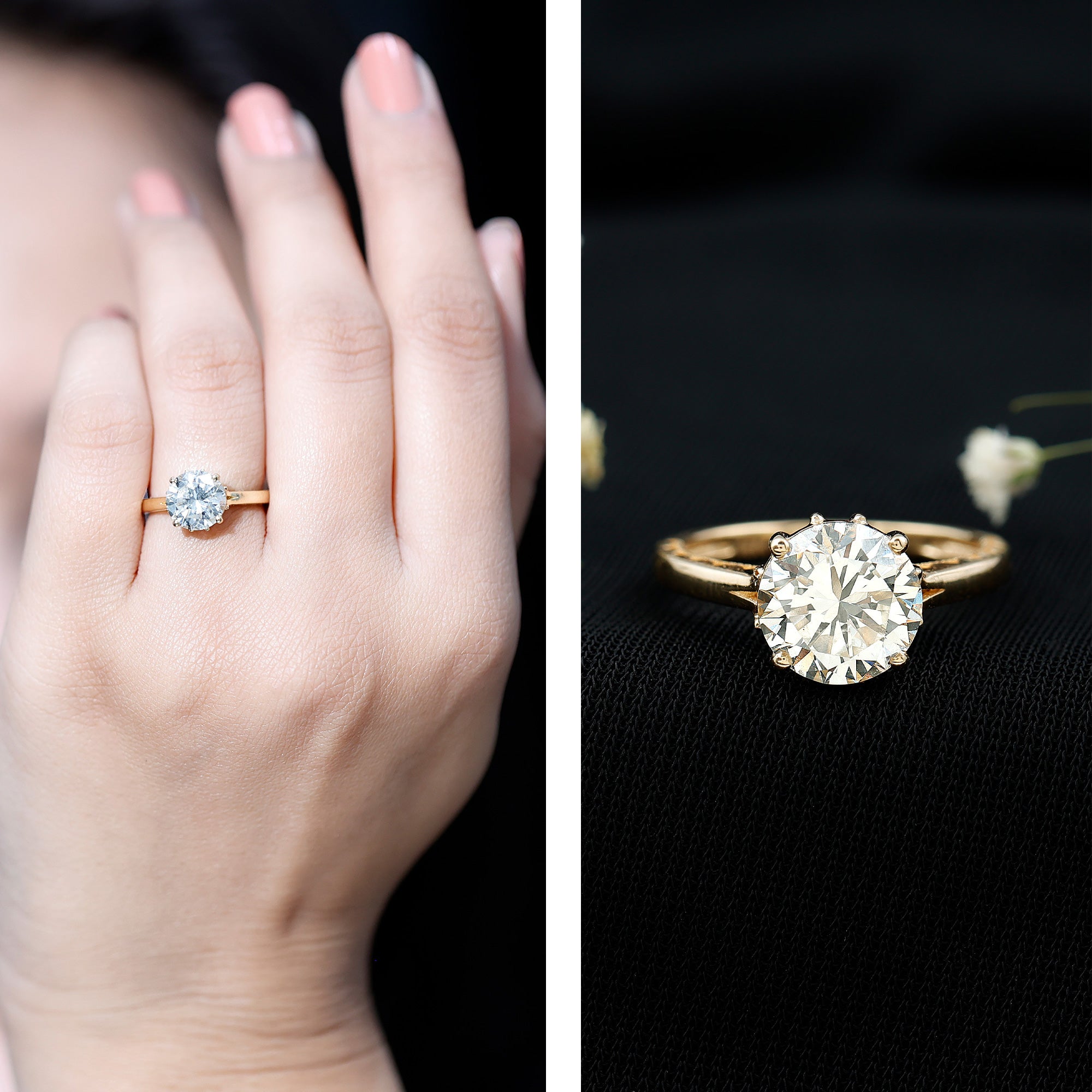 Round brilliant Solitaire Engagement rings in Prong Setting: This is a classical engagement ring style that is always in trend. In fact, the statistics of 28% of the engagement ring stones in the jewelry market of the USA prove this shape's popularity.