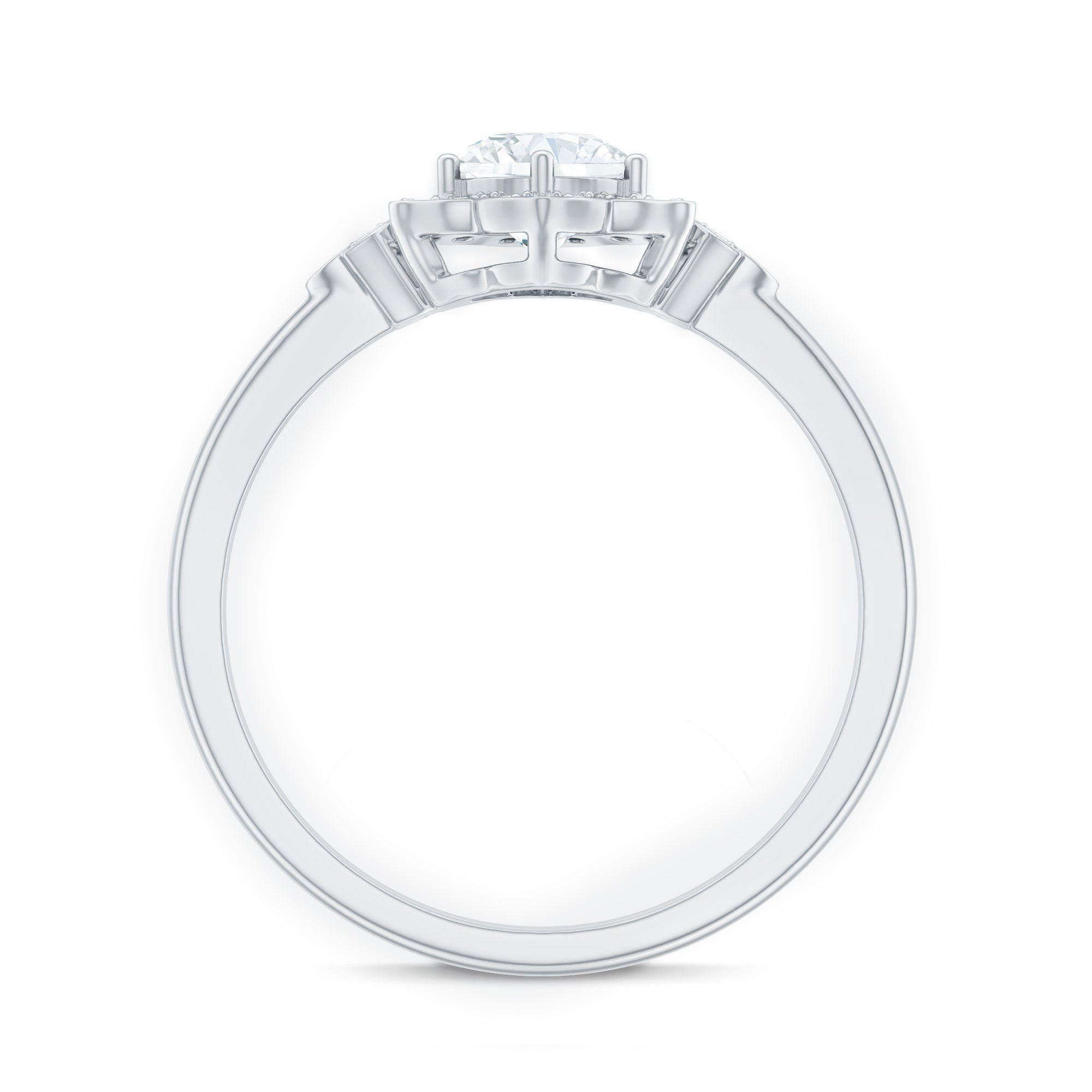 Pear Shaped Engagement Rings: Pear rings or teardrop rings feature gemstone which is a mix of round and marquise shape. This shape with a pointed end looks elongated and looks great with stacked diamond or moissanite bands.