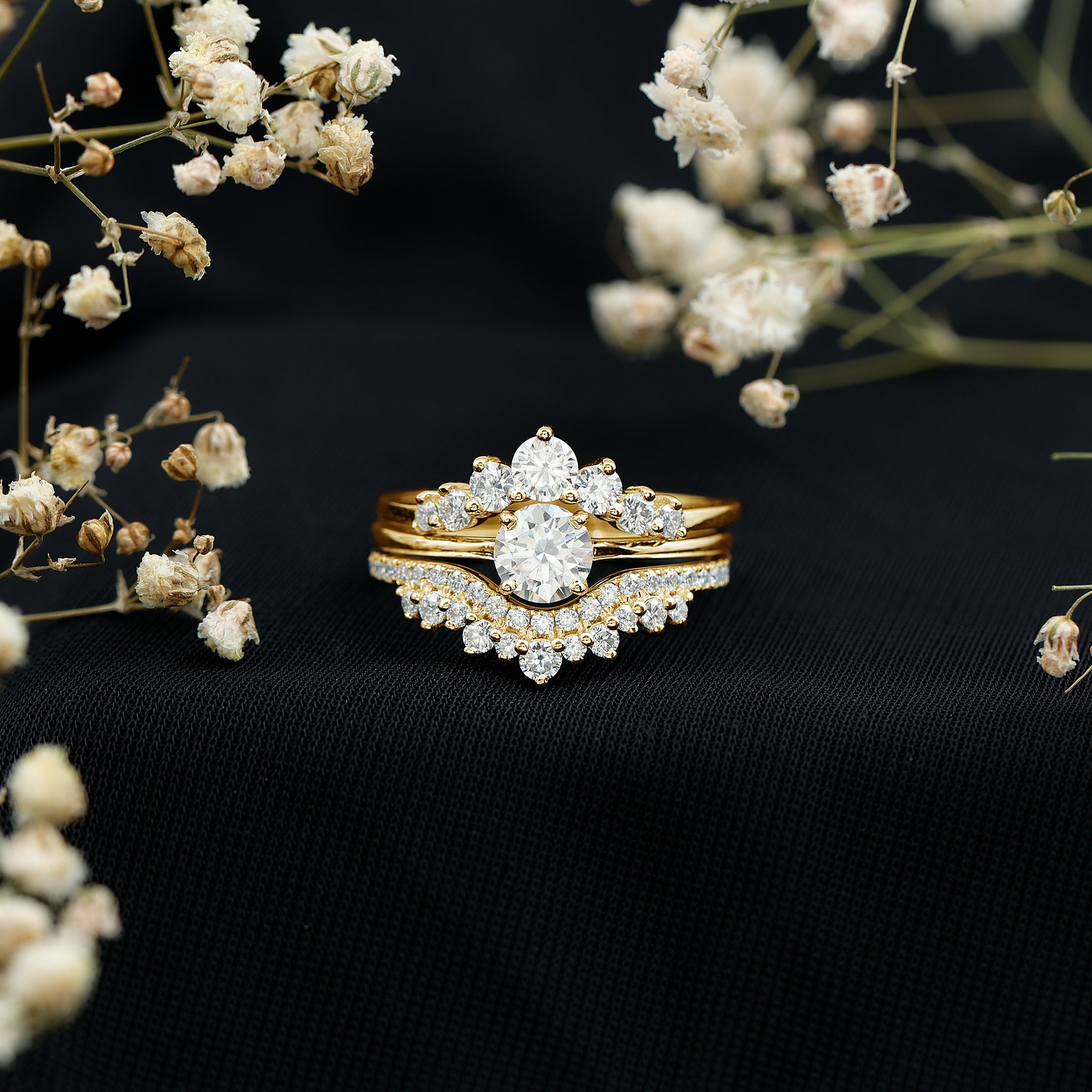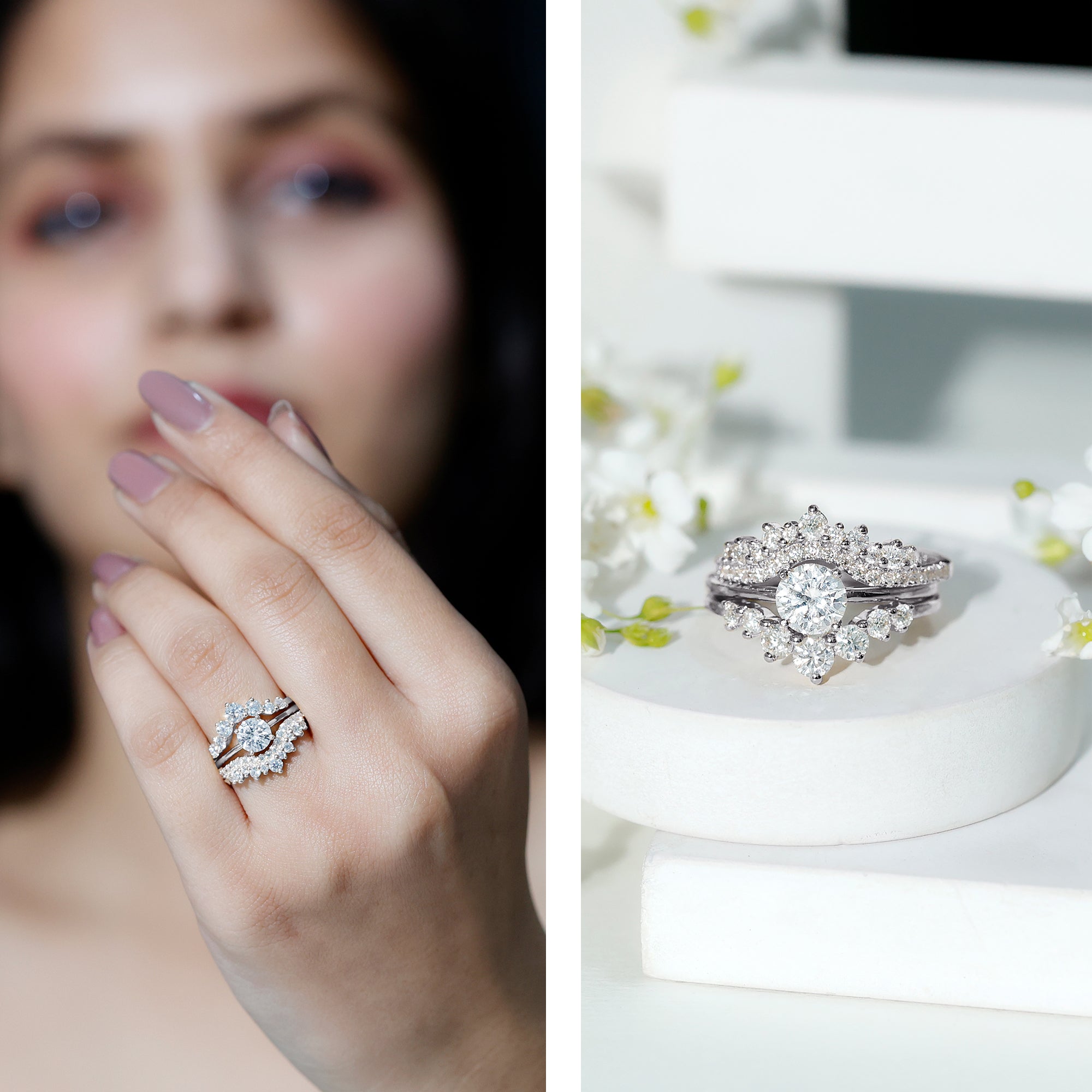 Moissanite: These are brilliant, cost-effective options to diamonds that are preferred for their durability and intense sparkle. They can not be differentiated from diamonds by a bare eye. Modern couples are choosing moissanite engagement rings for their affordability and sustainability. These stones with exceptional fire and brilliance can be easily crafted into all types of designs from vintage solitaires to intricate designer rings.