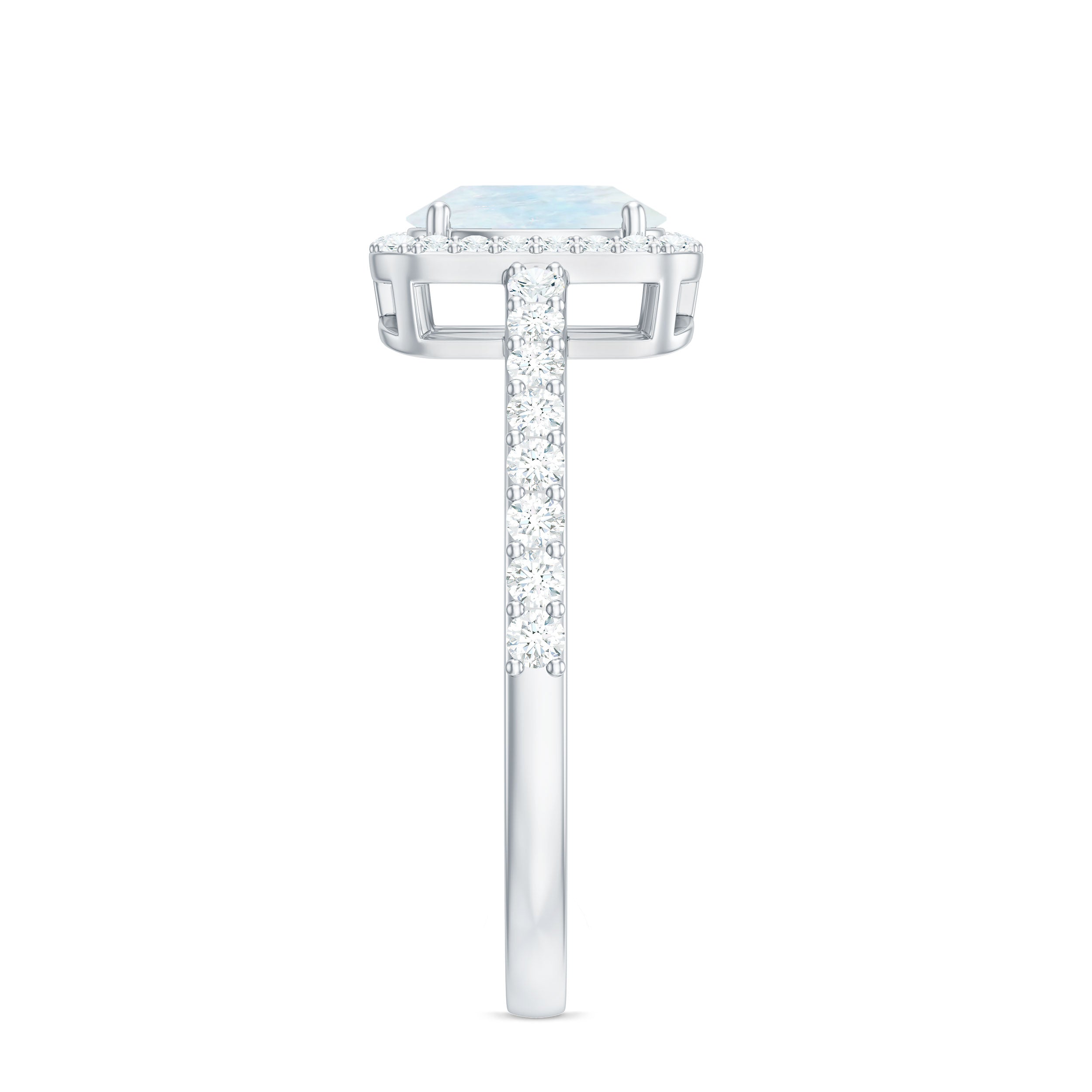 Emerald Cut Engagement Rings: Emerald cut engagement rings feature rectangular gemstones with step cuts as center stones. This cut with more clarity and depth, is less sparkling and often loved by minimalist lovers.