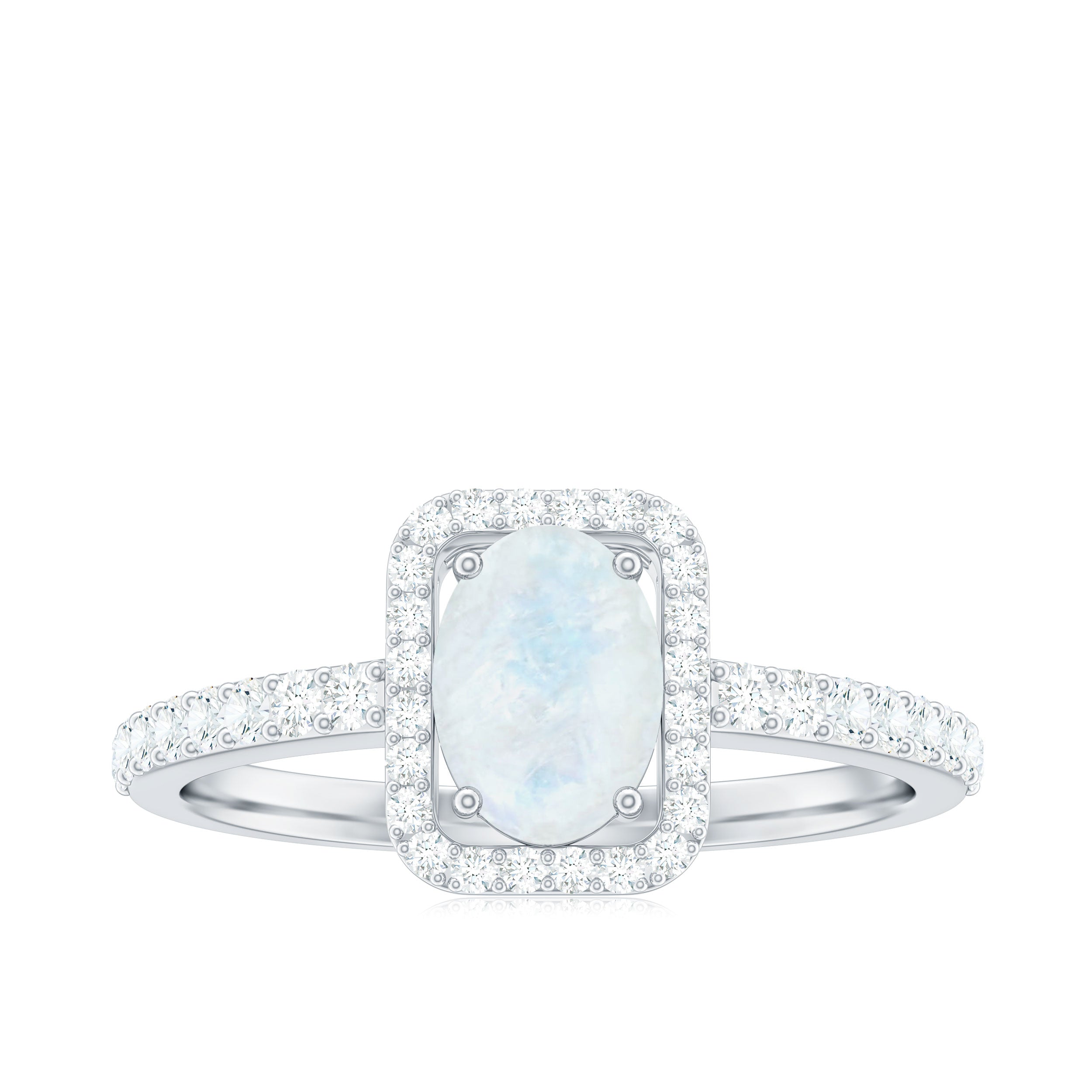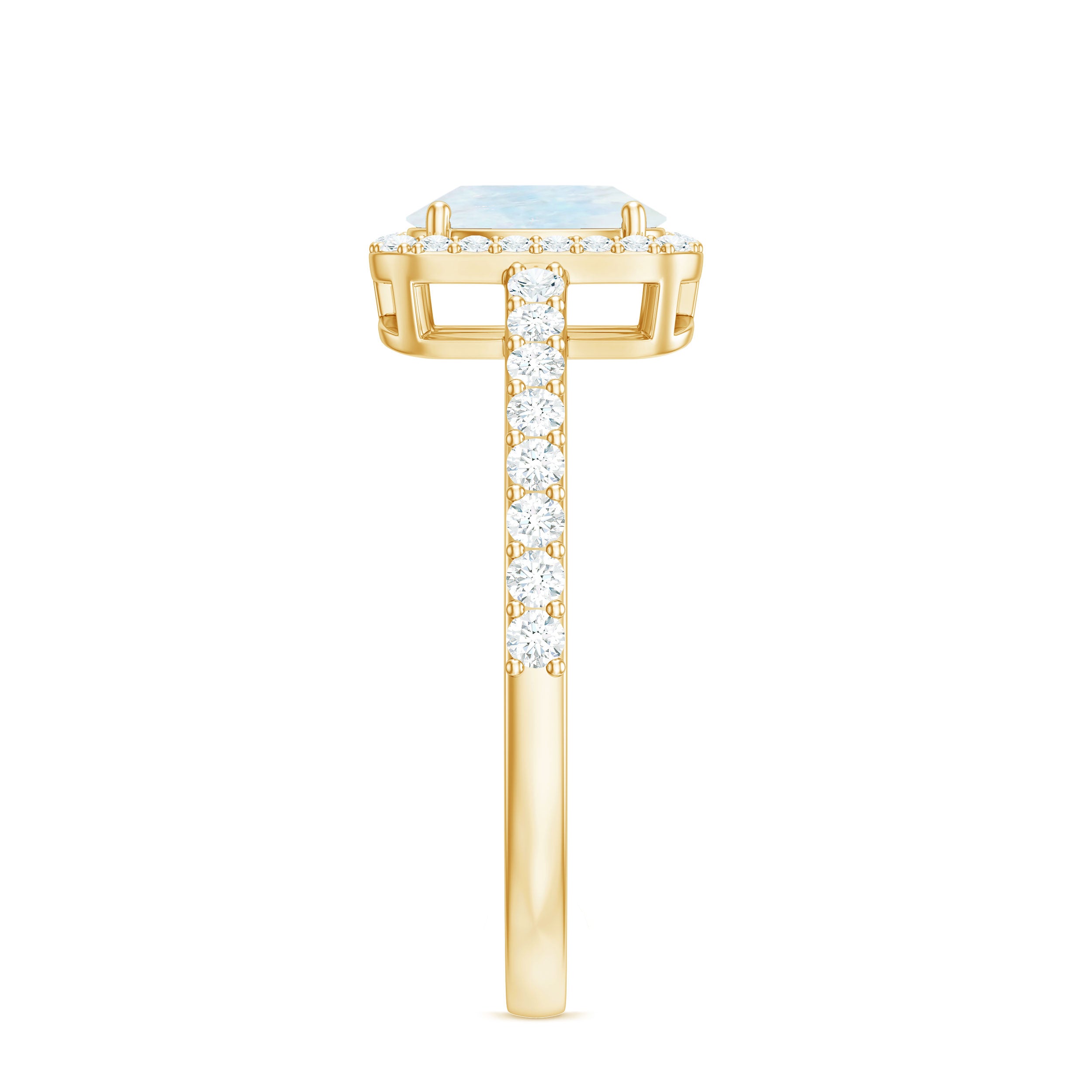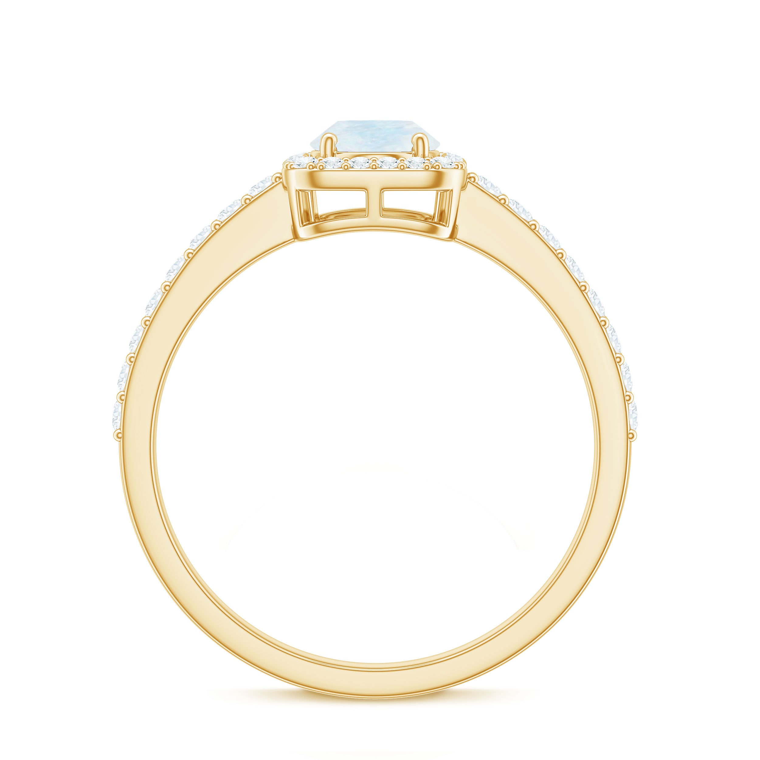 Halo Rings: Center gemstone is accentuated with shining or colored gemstones, usually smaller in size, to add a touch of sparkle in halo engagement rings. This style adds a layer of protection to the gemstones, too.