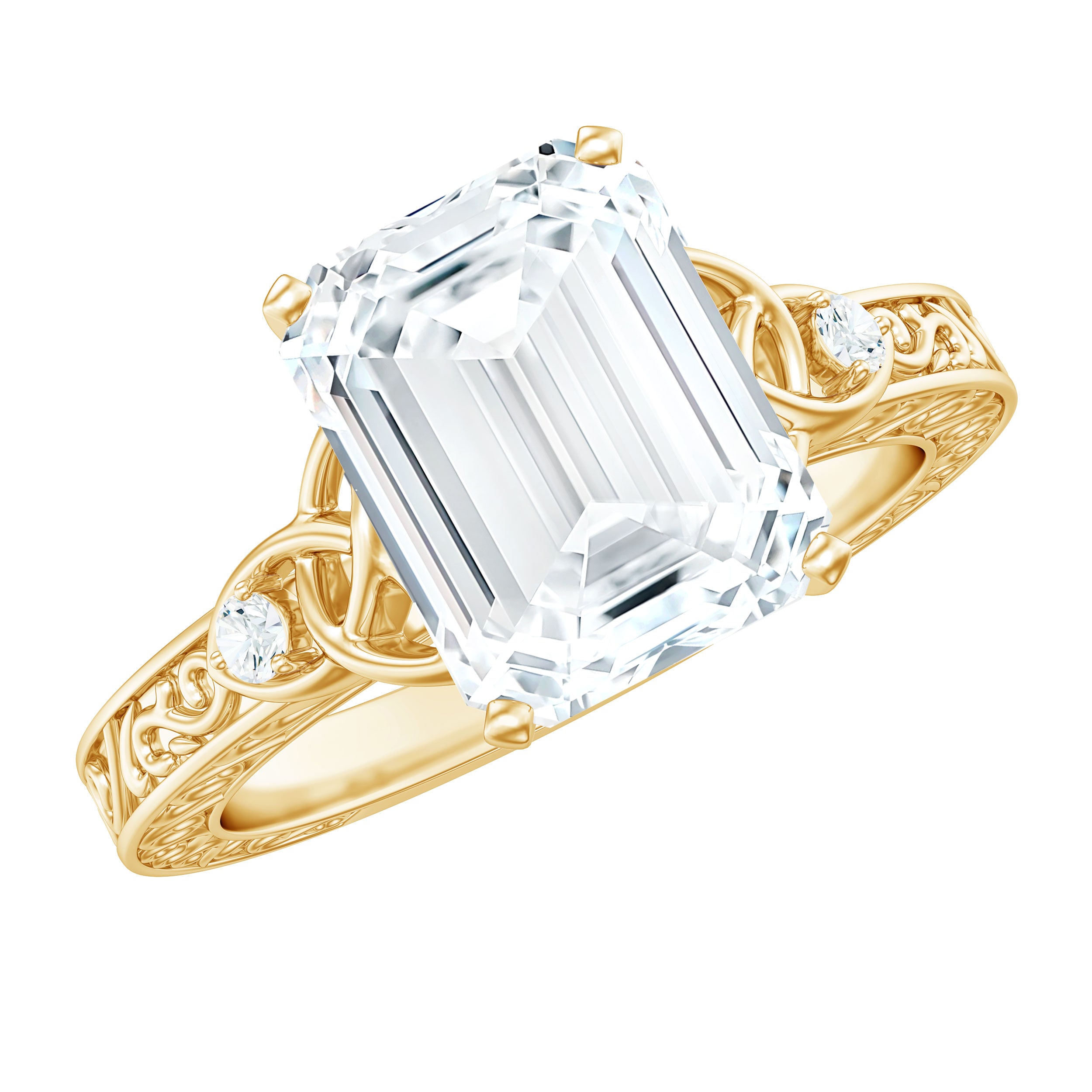 Moissanite: These are brilliant, cost-effective options to diamonds that are preferred for their durability and intense sparkle. They can not be differentiated from diamonds by a bare eye. Modern couples are choosing moissanite engagement rings for their affordability and sustainability. These stones with exceptional fire and brilliance can be easily crafted into all types of designs from vintage solitaires to intricate designer rings.