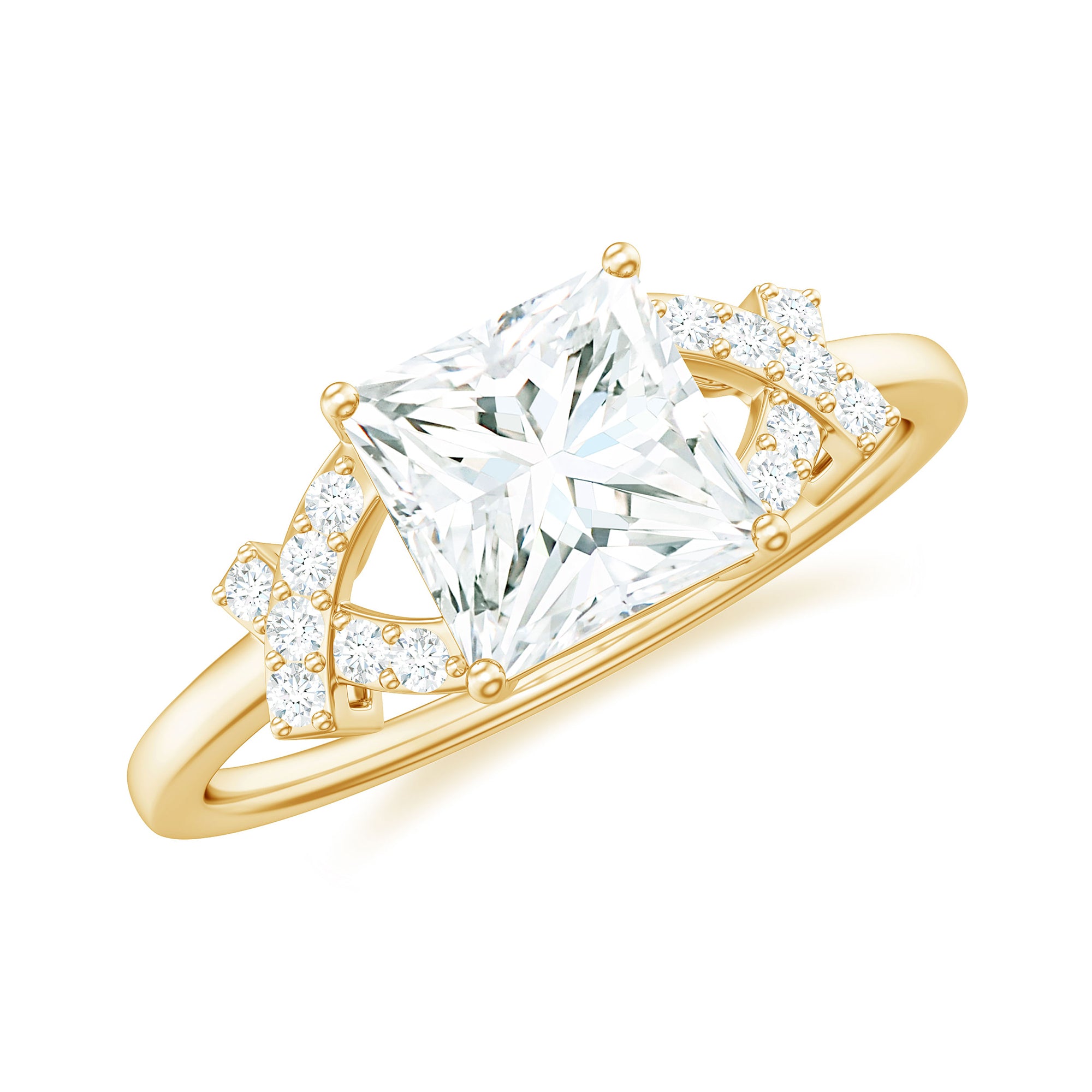 Princess Cut Engagement Rings: Princess cut engagement rings are pleasing buyers with their beautiful geometric shape of the gemstone, which is a square with rounded corners. Clean and stylish appeal of the princess cut diamond as solitaire or surrounded by side stones is a good choice for occasional as well as everyday wear.