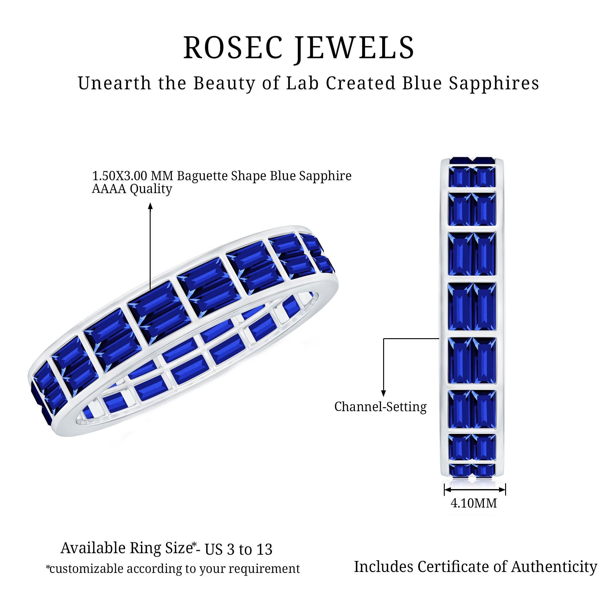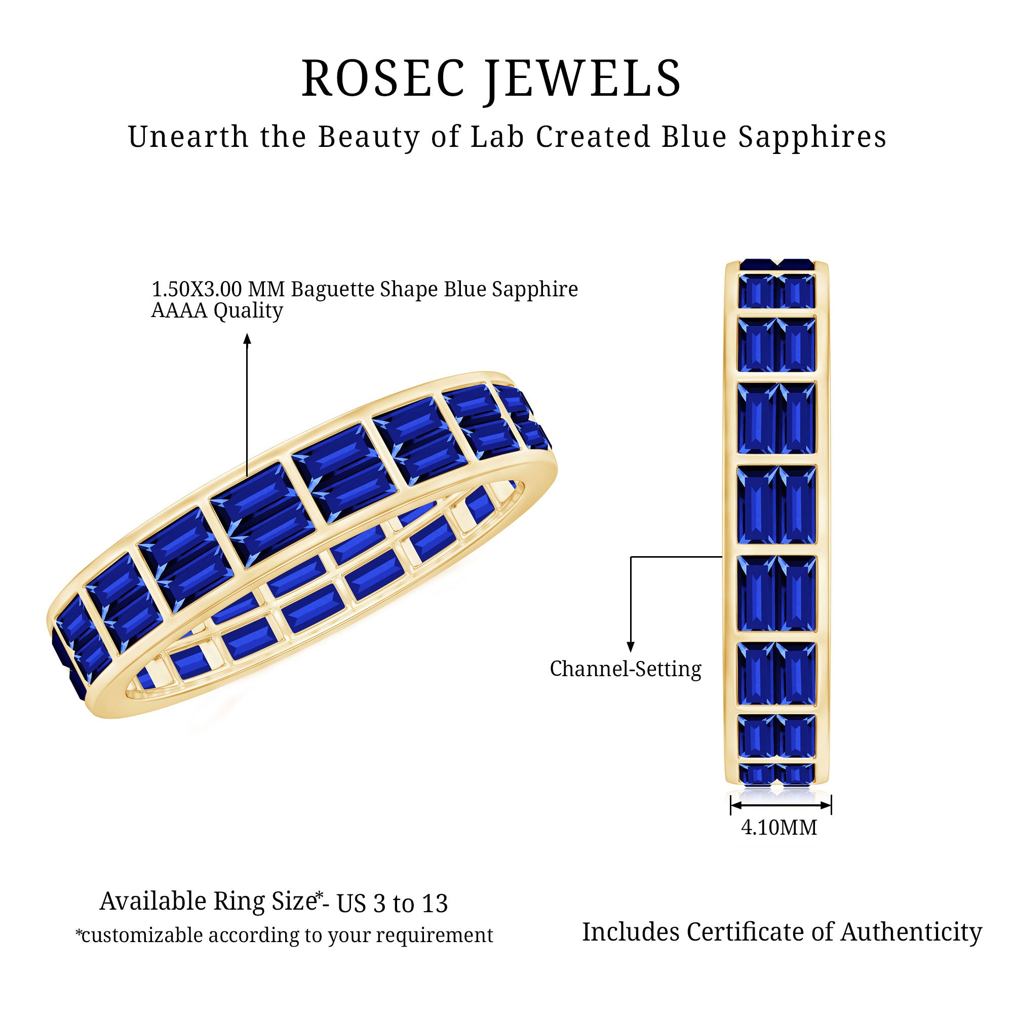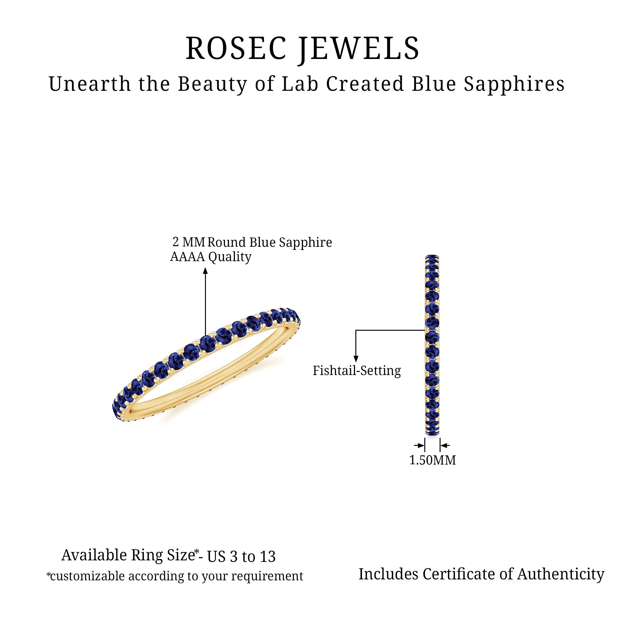 Genuine and Pure: Rosec Jewels is proud to offer genuine Eternity Rings made from real gold and silver. Every ring comes with a certificate to guarantee its authenticity, ensuring you get the real and captivating beauty of an authentic eternity rings.