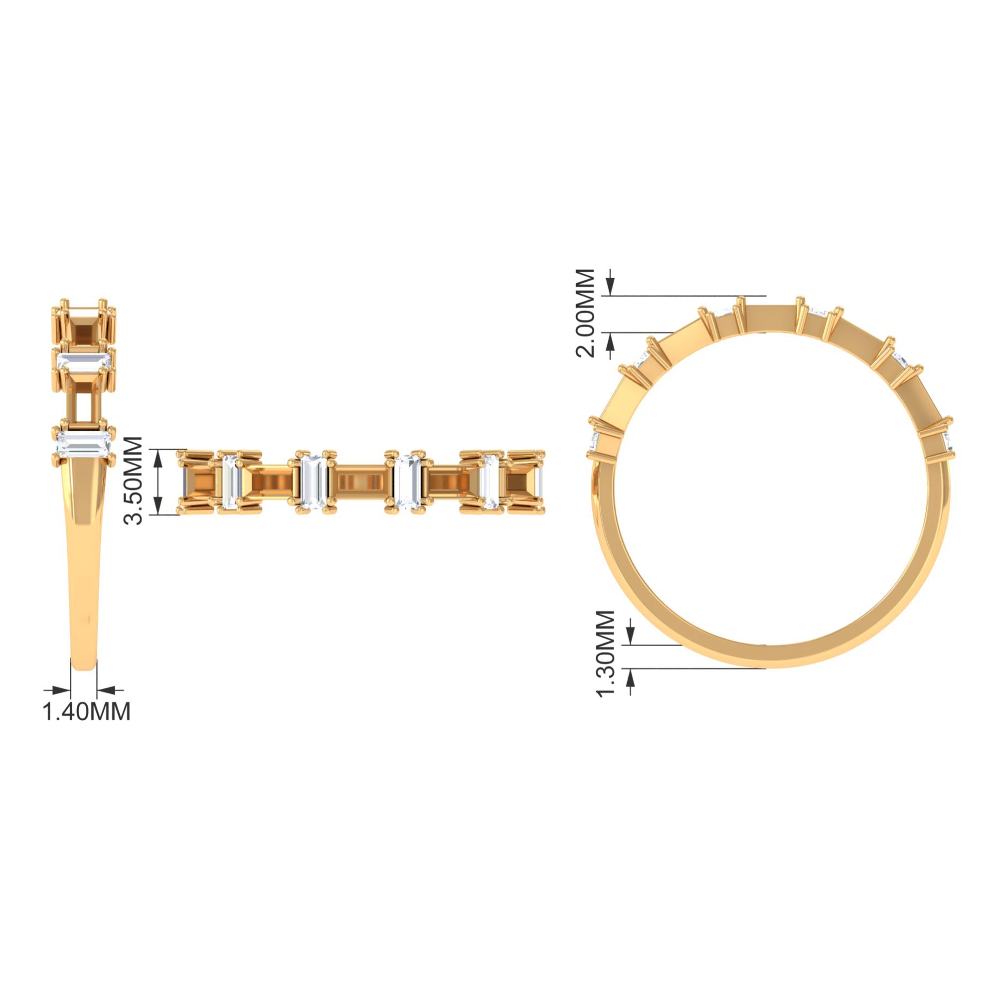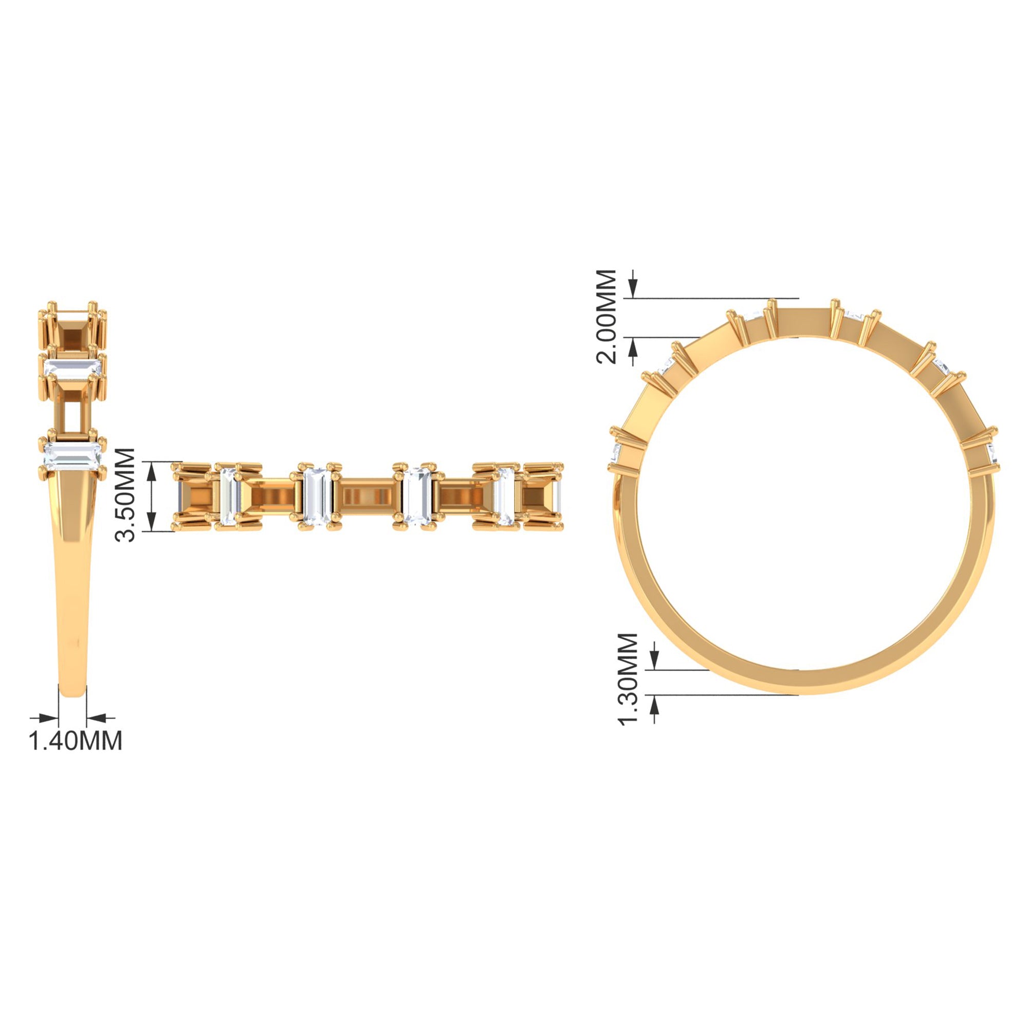 Half eternity rings feature stones on the upper half, covering 1/2 or 3/4 of the band. Considered more practical and comfortable, they allow larger stones compared to full eternity rings.