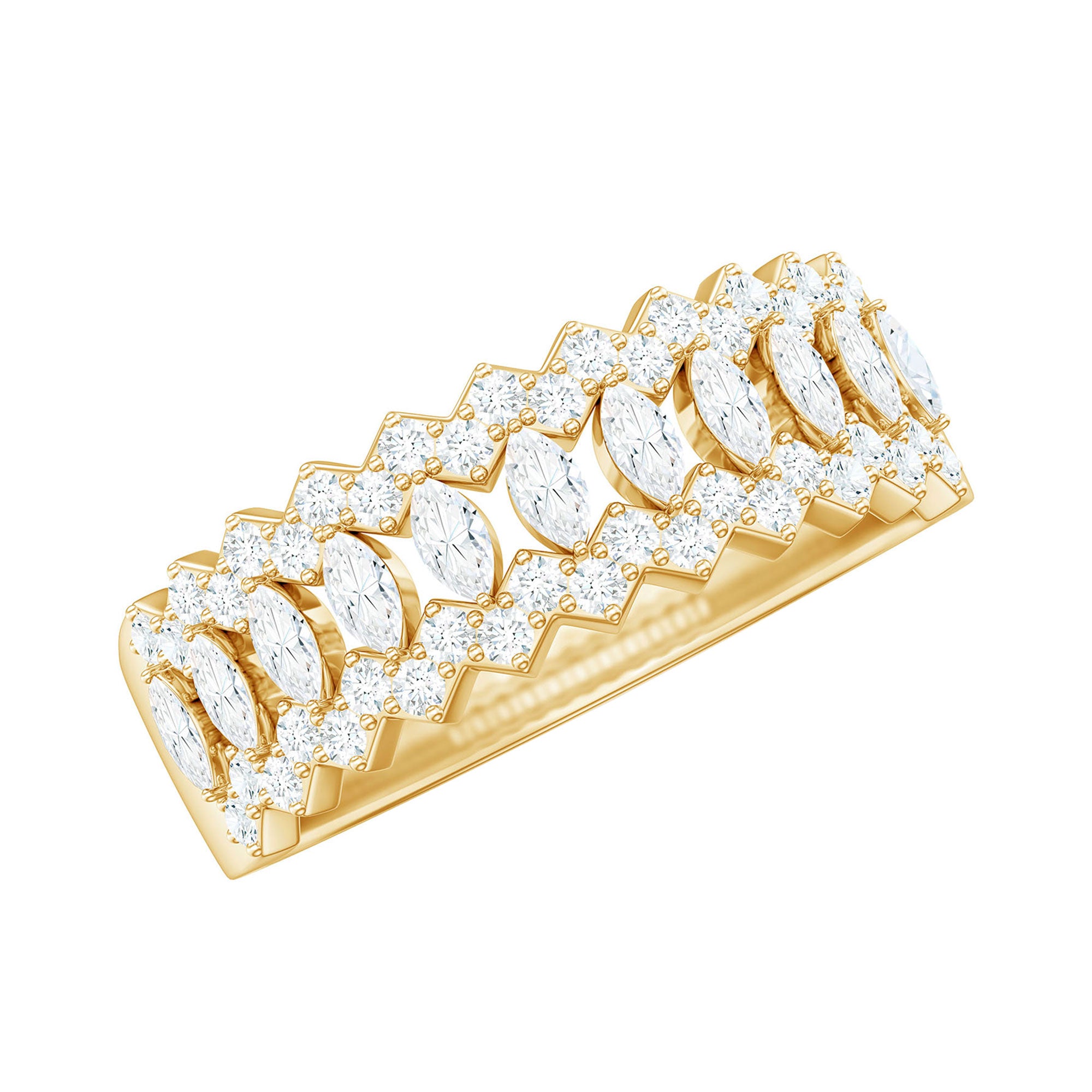 Mix it up with mixed-shape eternity bands! They use various stone shapes, like marquise and round cuts, for a unique and joyful look.