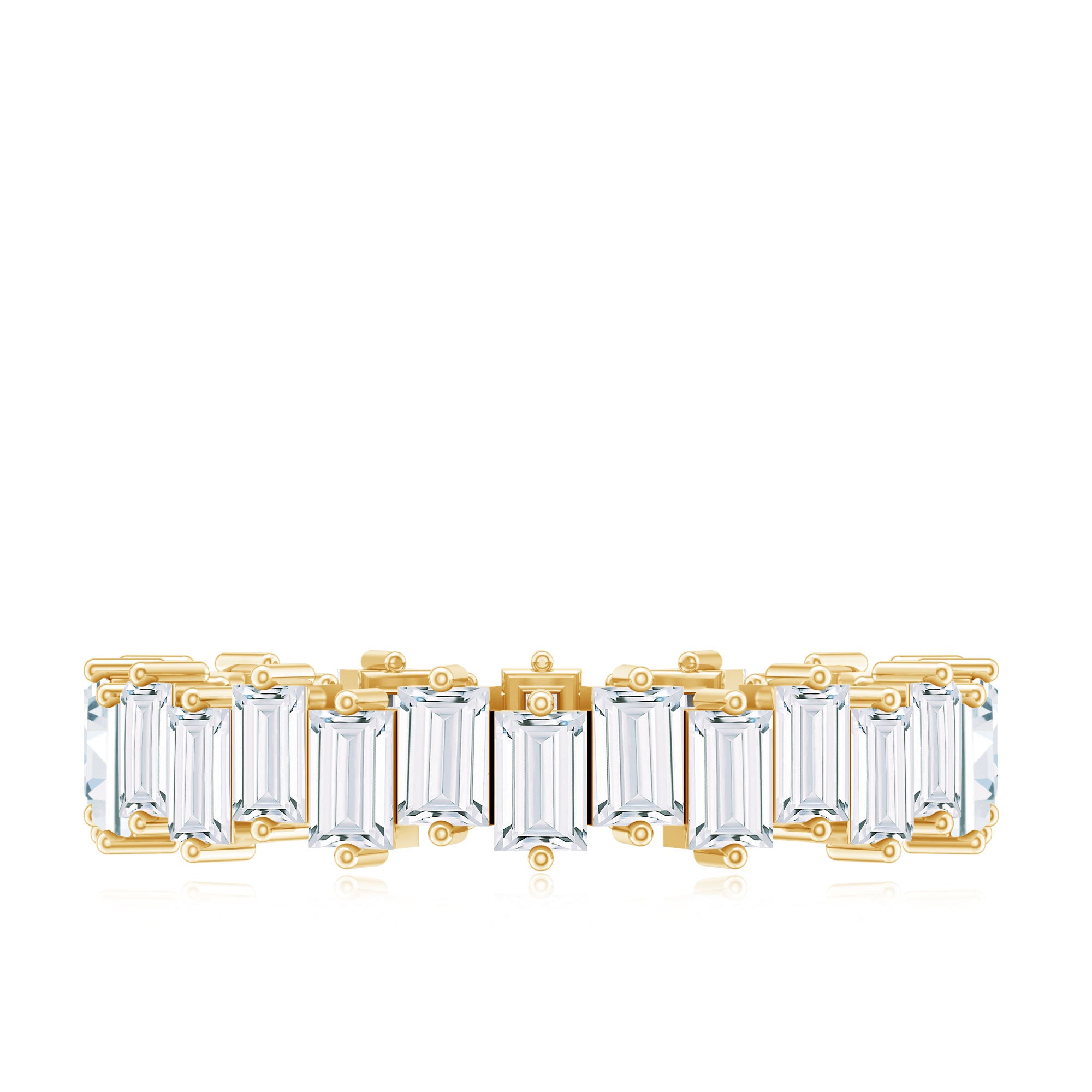 Eternity bands are crafted from white gold, yellow gold, rose gold, and silver. It's best to choose a metal that goes well with your current jewelry, especially if worn with an engagement ring and wedding band. All these metals are strong, ensuring your eternity band's stones stay safe. Your decision boils down to your preferred color, what complements your skin tone, and your budget.