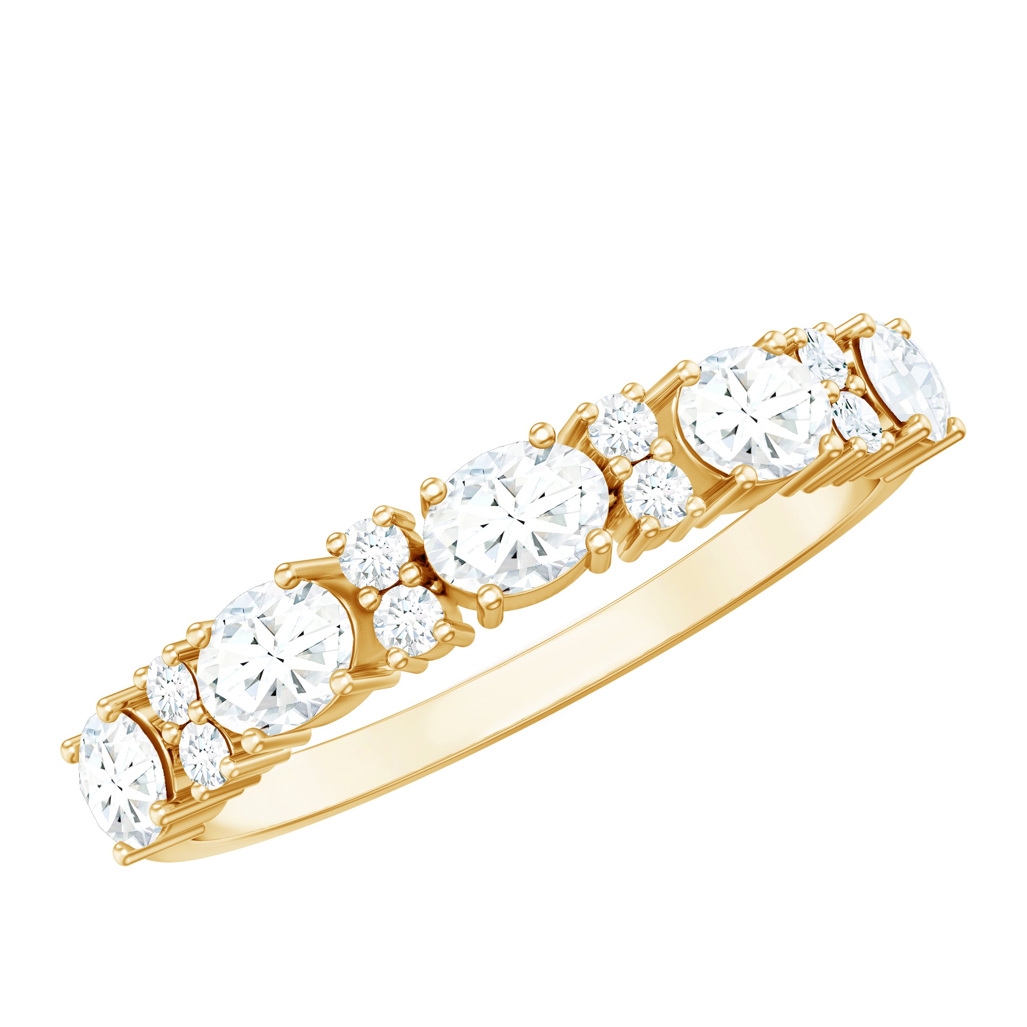 Half eternity rings feature stones on the upper half, covering 1/2 or 3/4 of the band. Considered more practical and comfortable, they allow larger stones compared to full eternity rings.