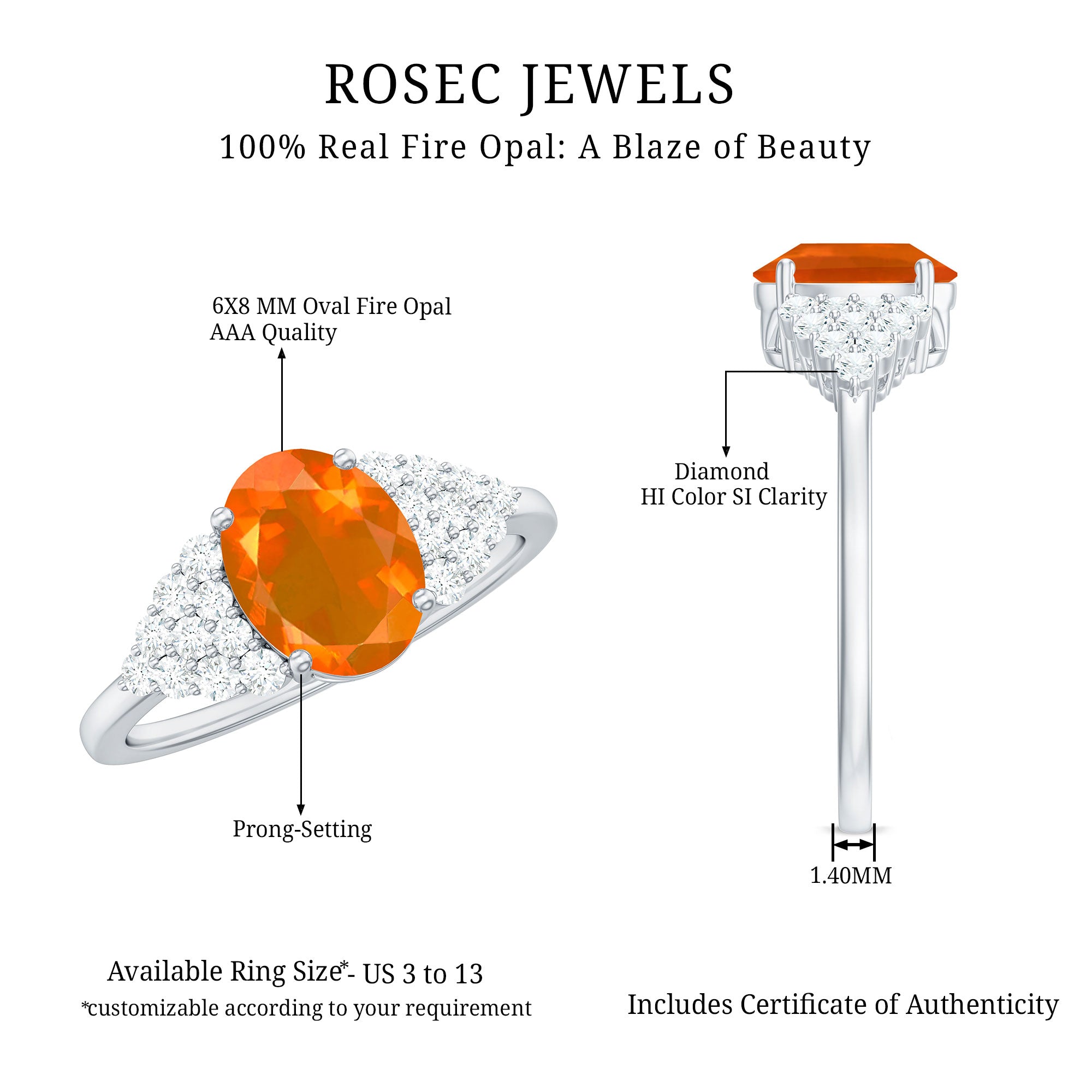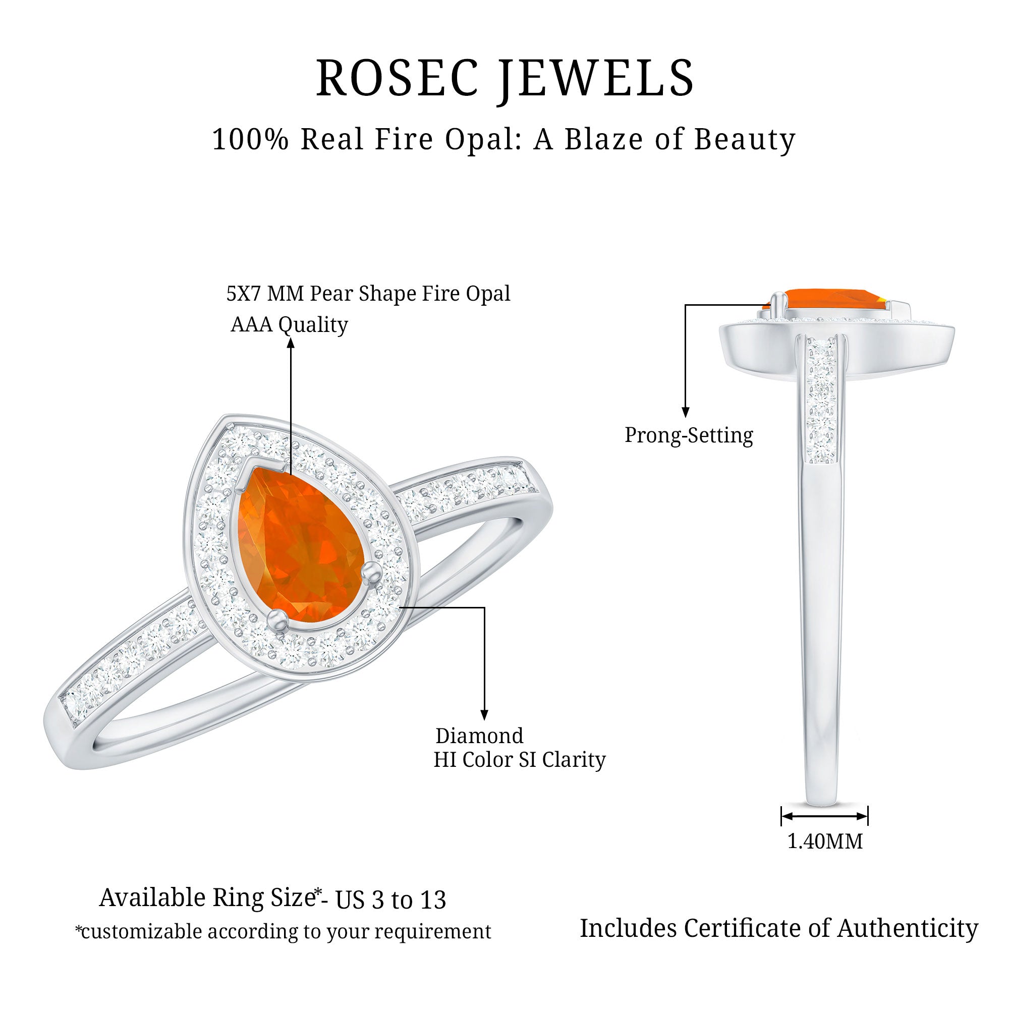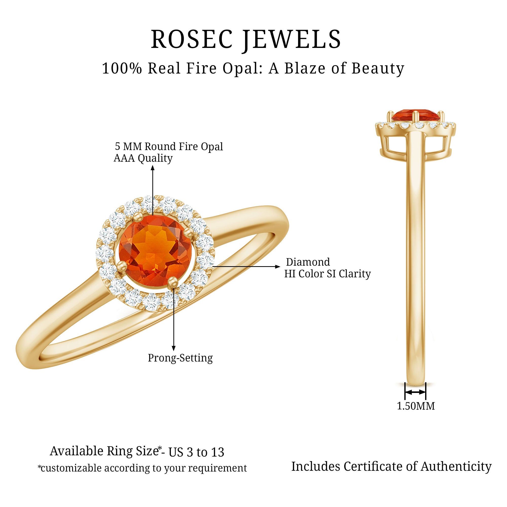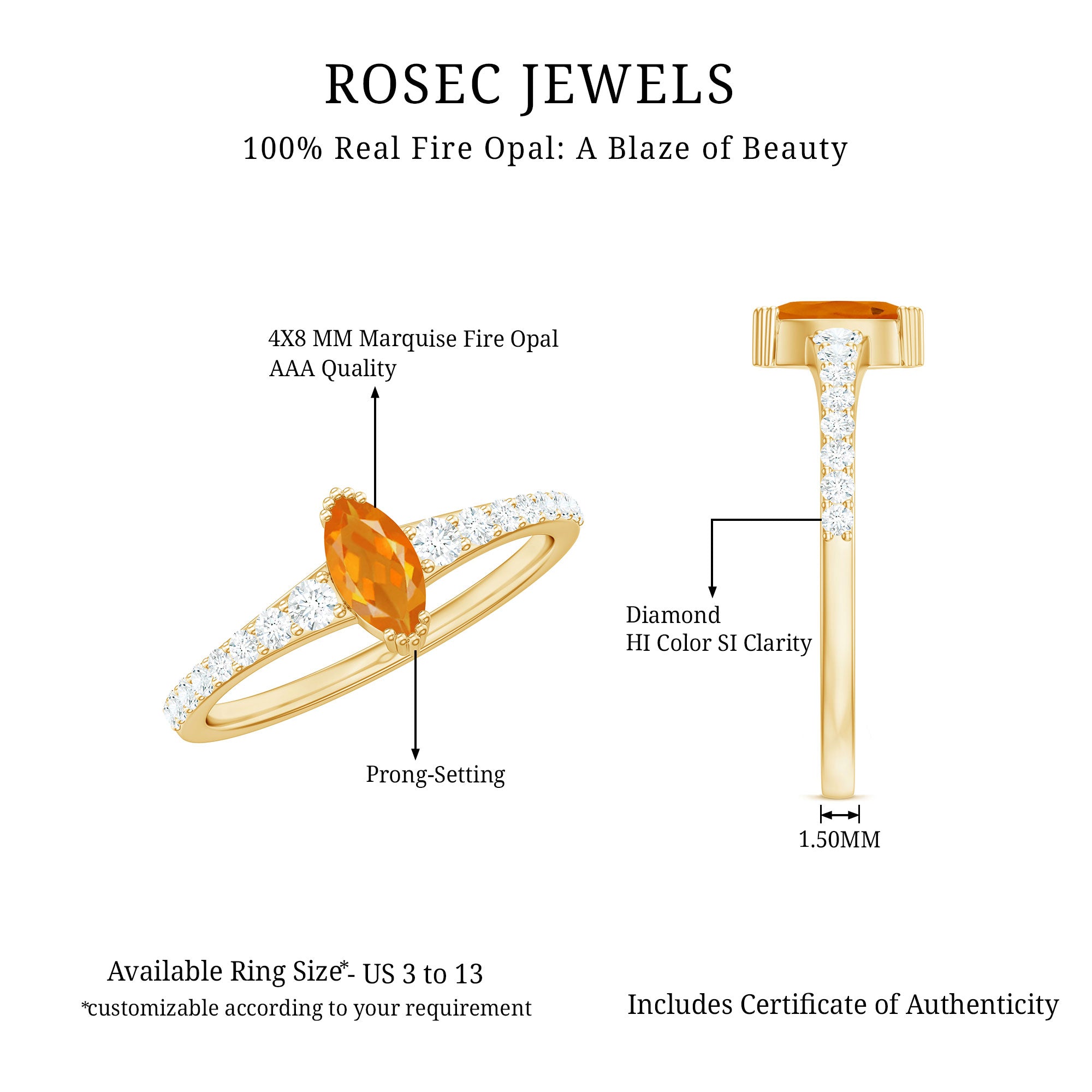 Features a center fire opal stone which takes all the attention with their fiery hues. The solitaire opal can be of any shape such as brilliant round, pear, heart, emerald cut and many more. This solitaire style adds the sophisticated touch to the ring.