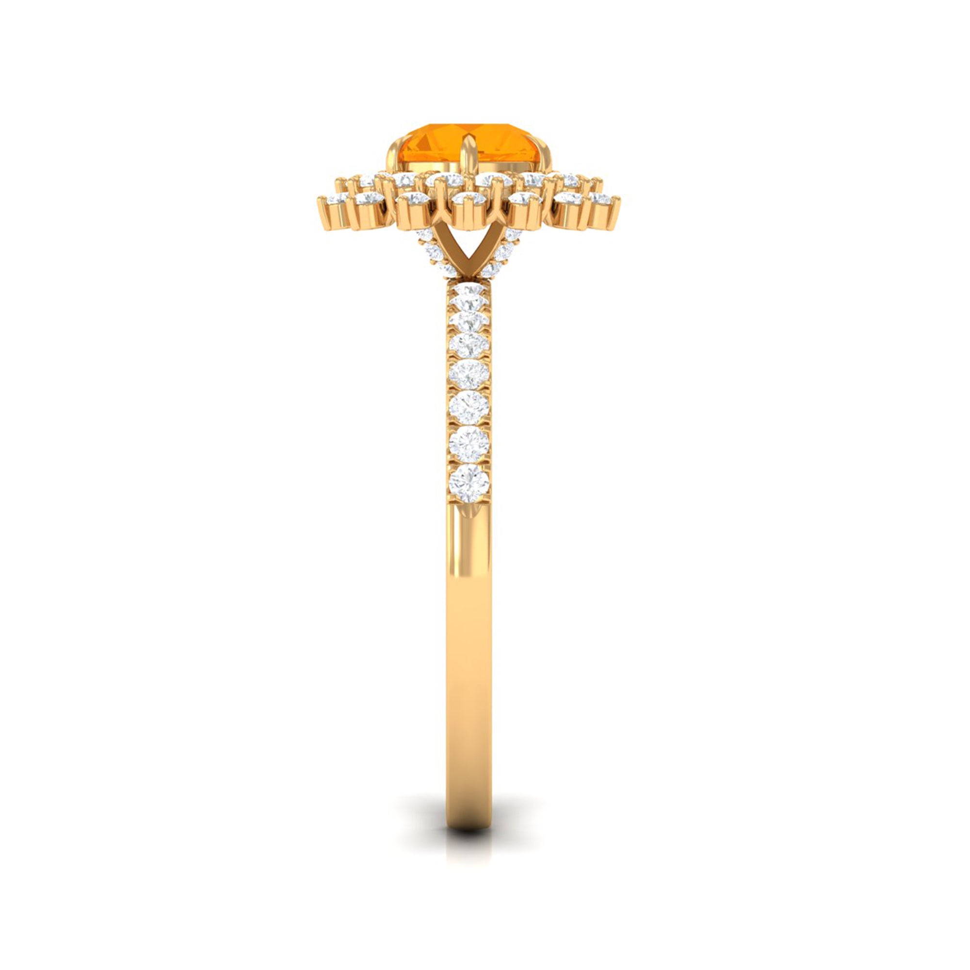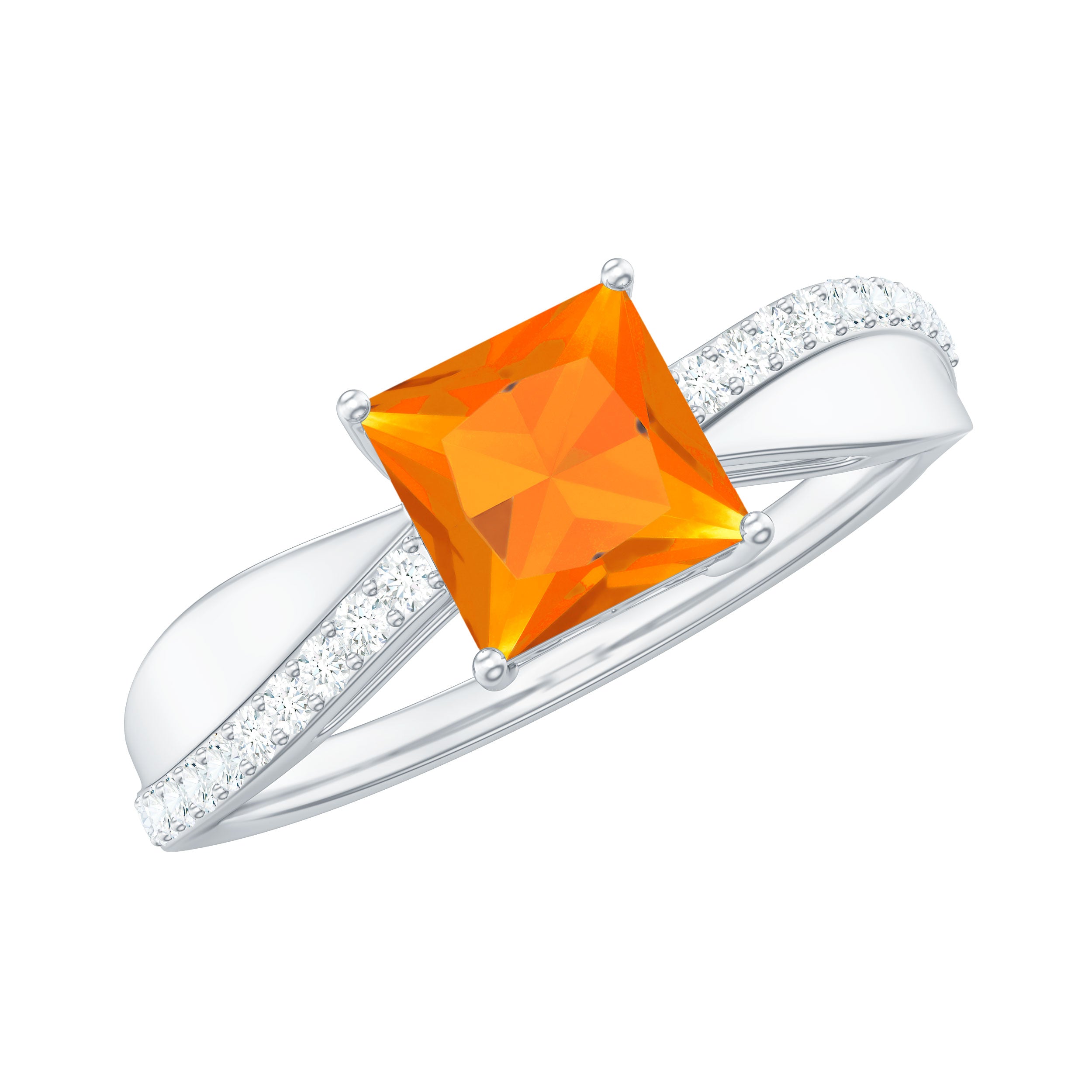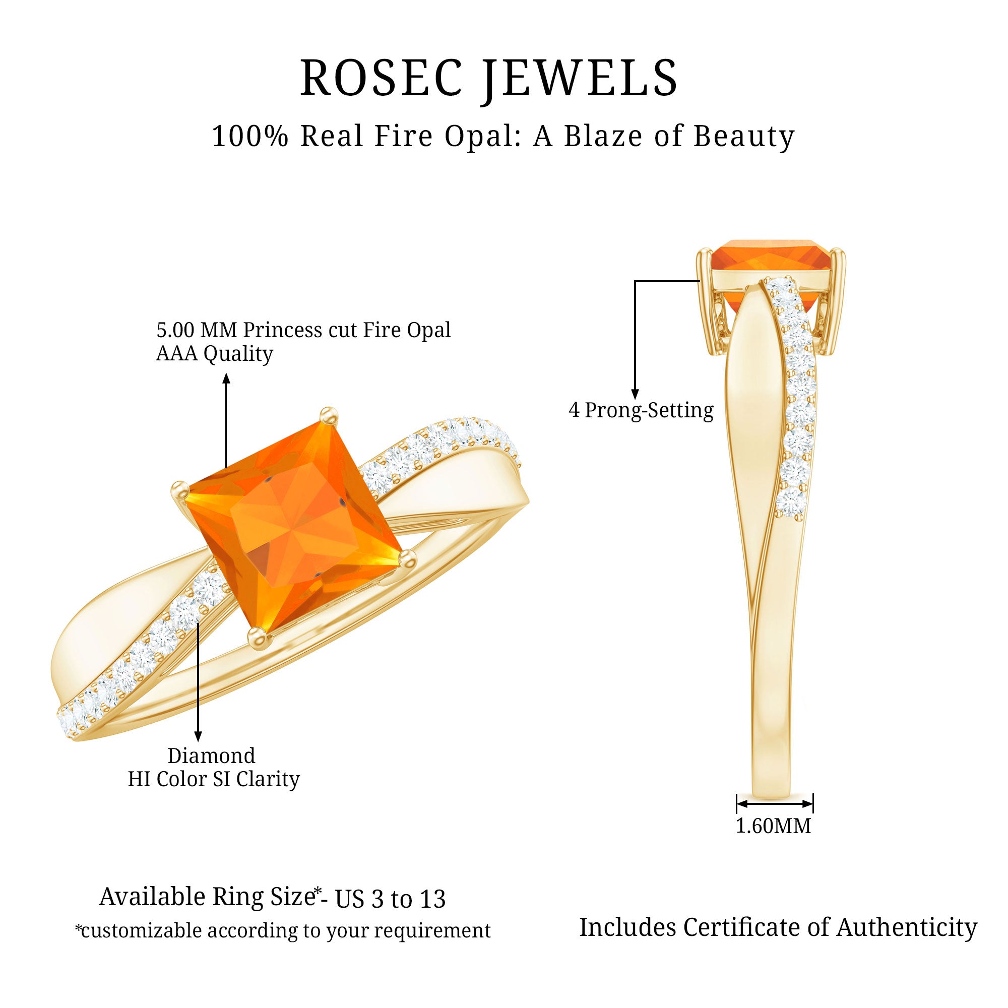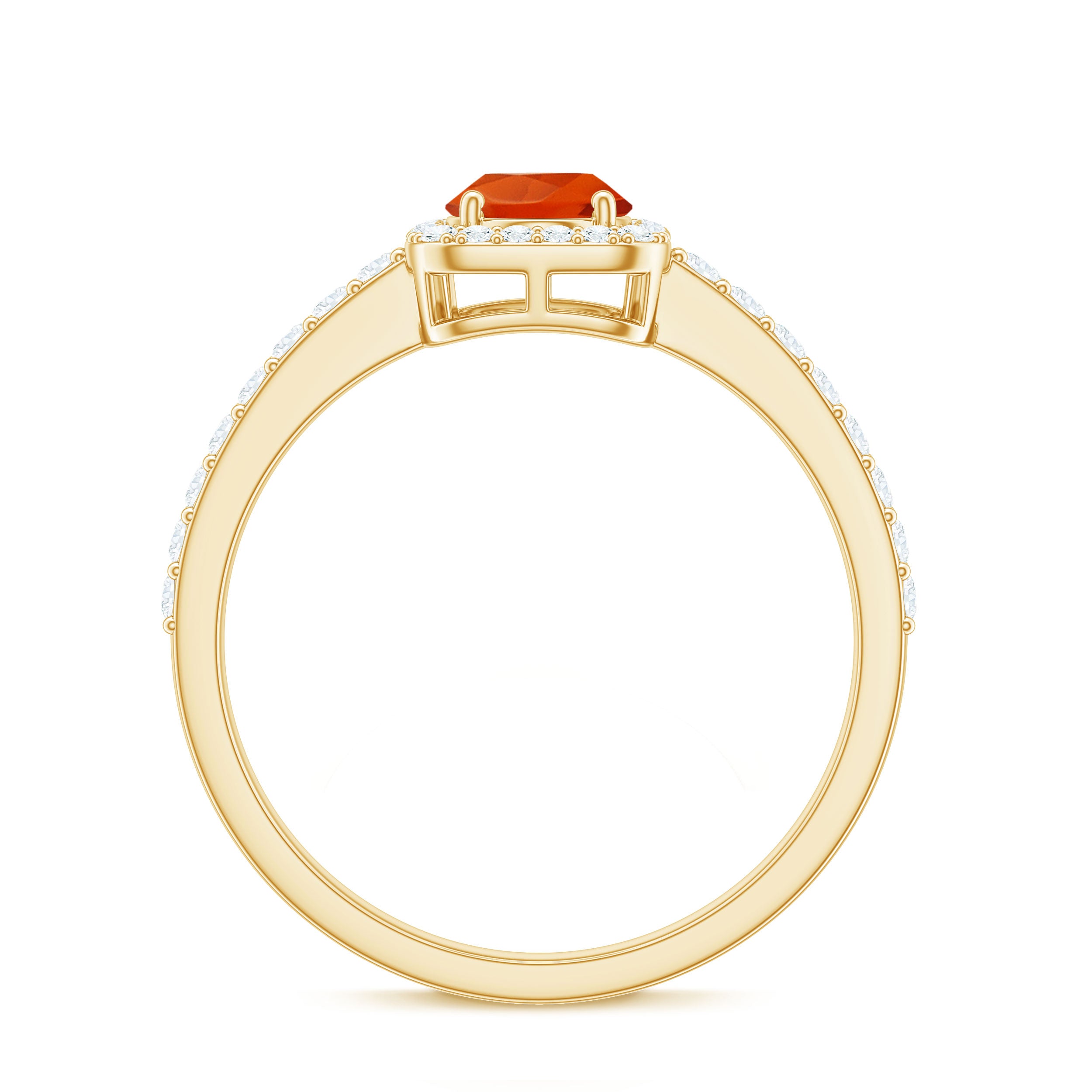 Features a center fire opal stone which takes all the attention with their fiery hues. The solitaire opal can be of any shape such as brilliant round, pear, heart, emerald cut and many more. This solitaire style adds the sophisticated touch to the ring.
