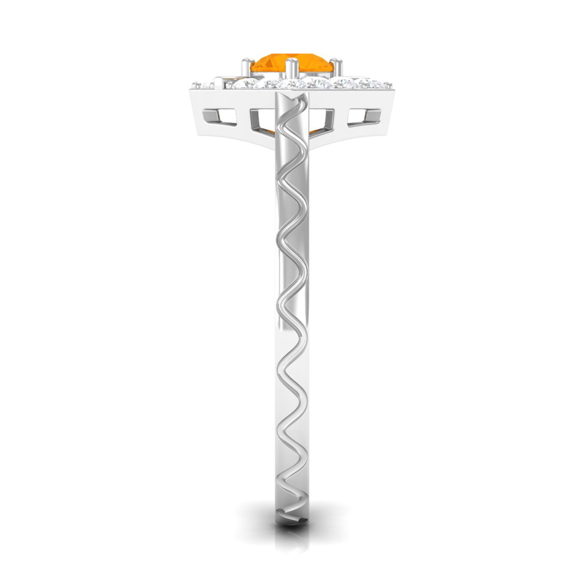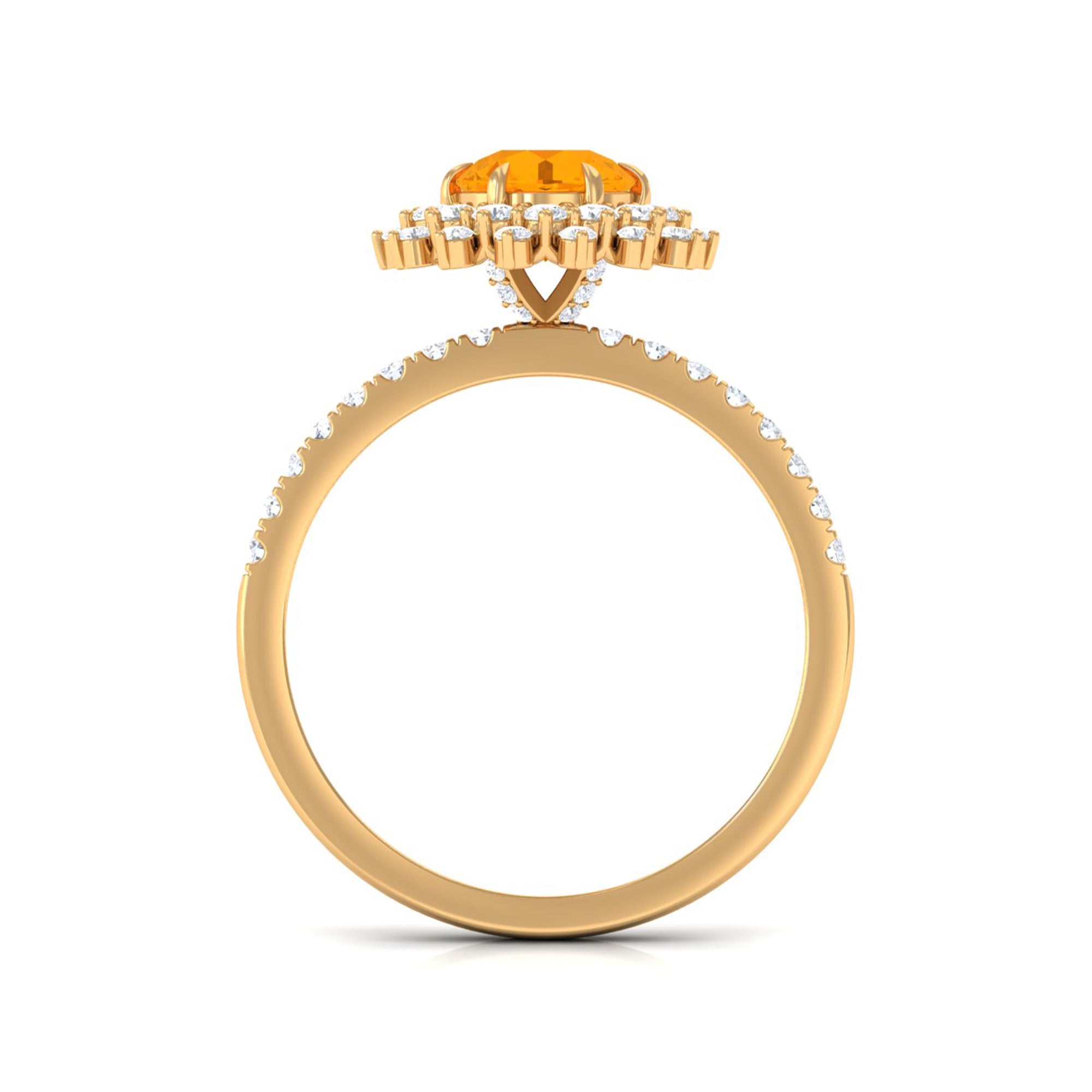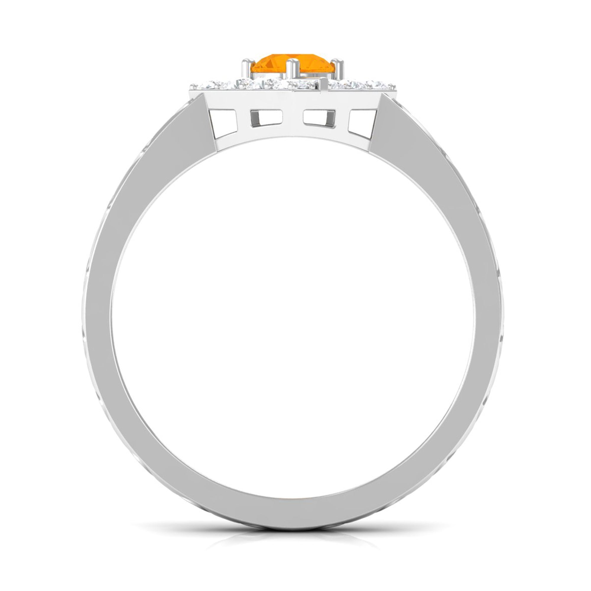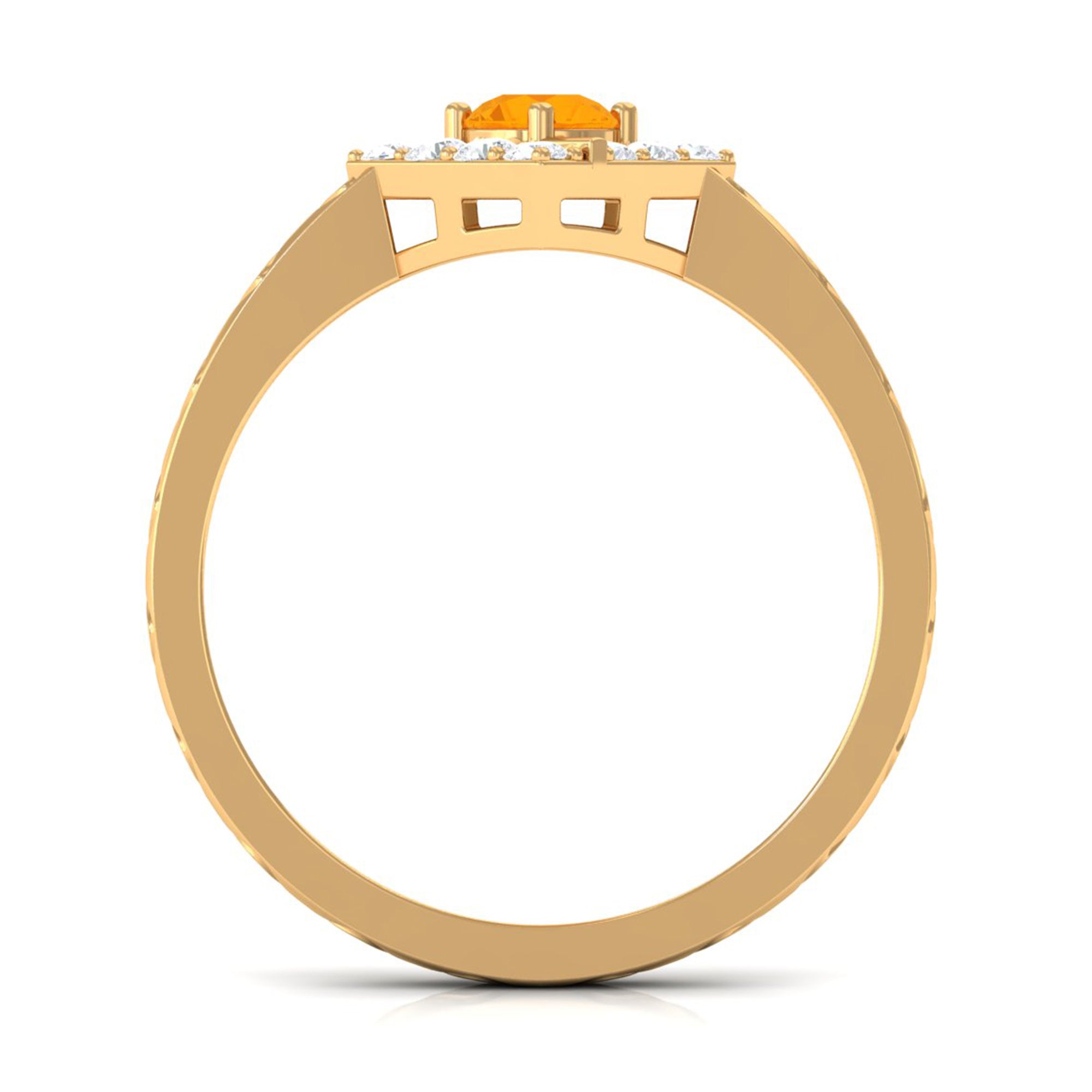 Features a center fire opal stone which takes all the attention with their fiery hues. The solitaire opal can be of any shape such as brilliant round, pear, heart, emerald cut and many more. This solitaire style adds the sophisticated touch to the ring.