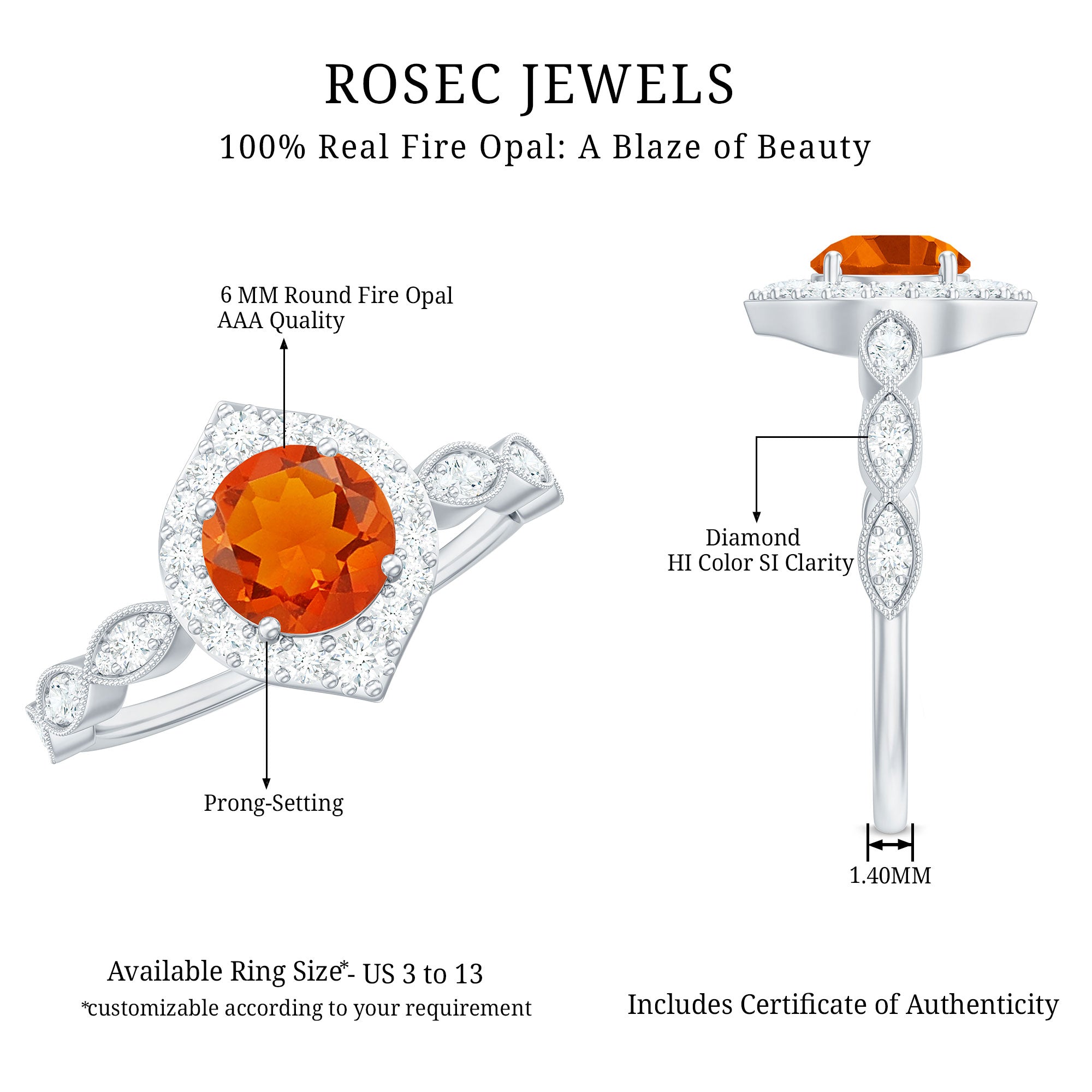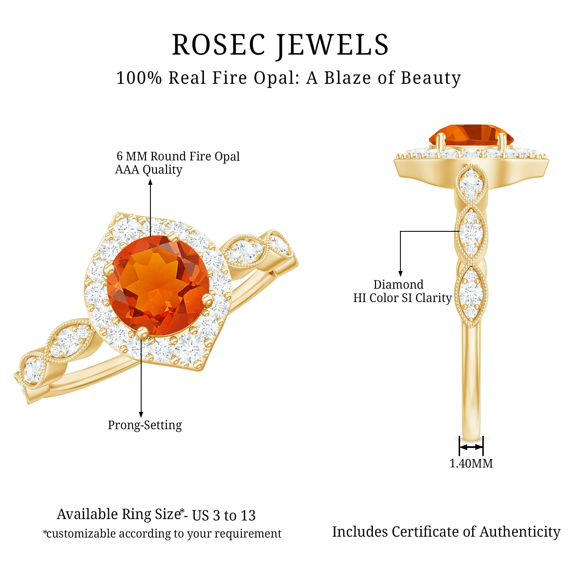 A vintage inspired fire opal rings may give the impression of being several decades old, despite its contemporary creation. Mexican opal rings exudes the aura of antique artistry, drawing inspiration from the intricate designs of the Art Deco, Edwardian, and Victorian Eras. More of the details such as filigree, milgrain, and antique motifs, which are prominent design elements from those eras, along with other ornate engravings and embellishments.