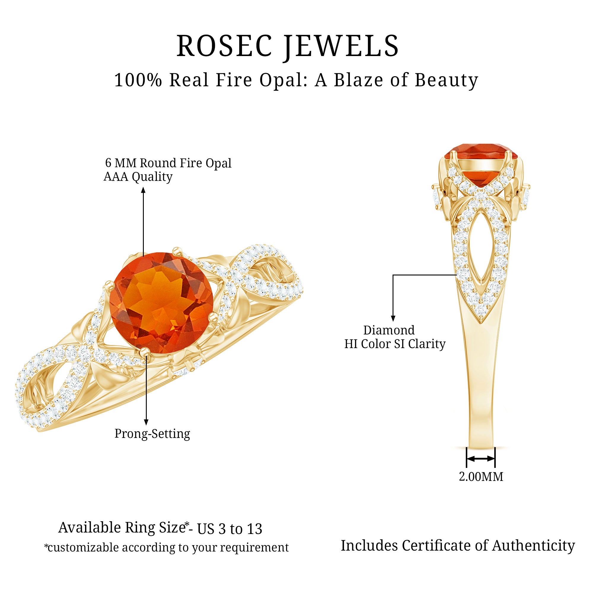 Features a center fire opal stone which takes all the attention with their fiery hues. The solitaire opal can be of any shape such as brilliant round, pear, heart, emerald cut and many more. This solitaire style adds the sophisticated touch to the ring.