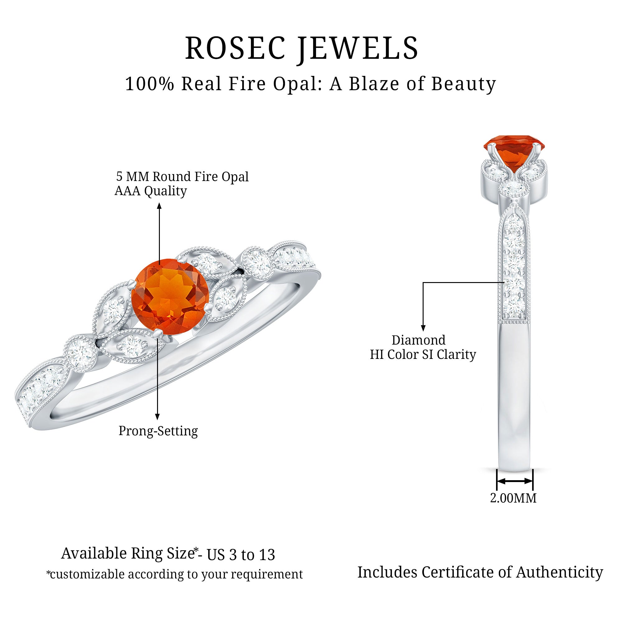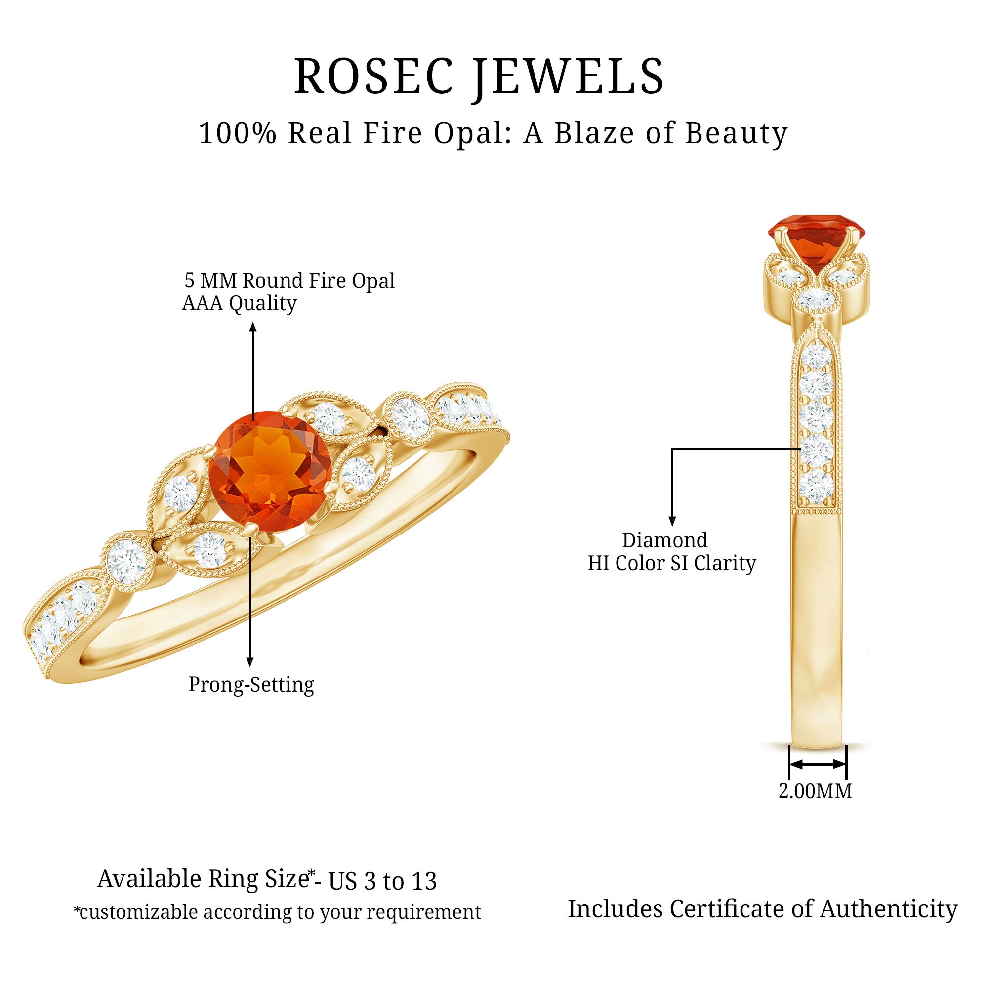 A vintage inspired fire opal rings may give the impression of being several decades old, despite its contemporary creation. Mexican opal rings exudes the aura of antique artistry, drawing inspiration from the intricate designs of the Art Deco, Edwardian, and Victorian Eras. More of the details such as filigree, milgrain, and antique motifs, which are prominent design elements from those eras, along with other ornate engravings and embellishments.