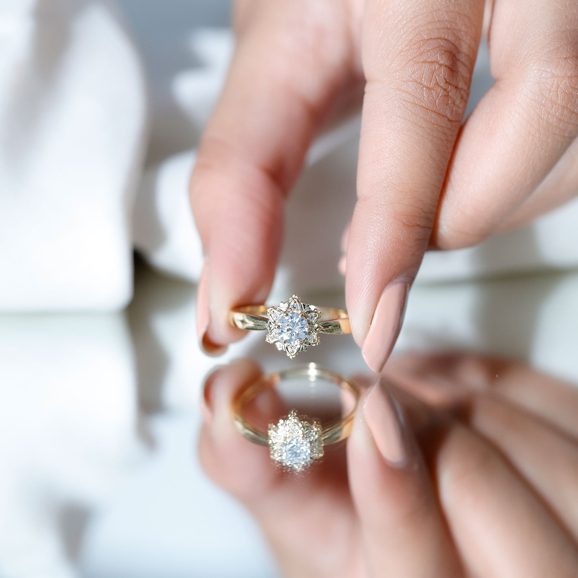 • Flower Rings:- Our flower rings are inspired by nature's beauty, and are a good companion for every occasion like engagement, anniversary, birthday, and cocktail parties. Right from majestic solitaire flower rings to halo and eternity flower rings, each piece is specially designed to cater to different tastes and personalities. Even, Rosec Jewels offer you options in choosing the right gemstone for your flower ring, including diamonds, rubies, emeralds, sapphires, aquamarine, and other variety of colored gemstones.