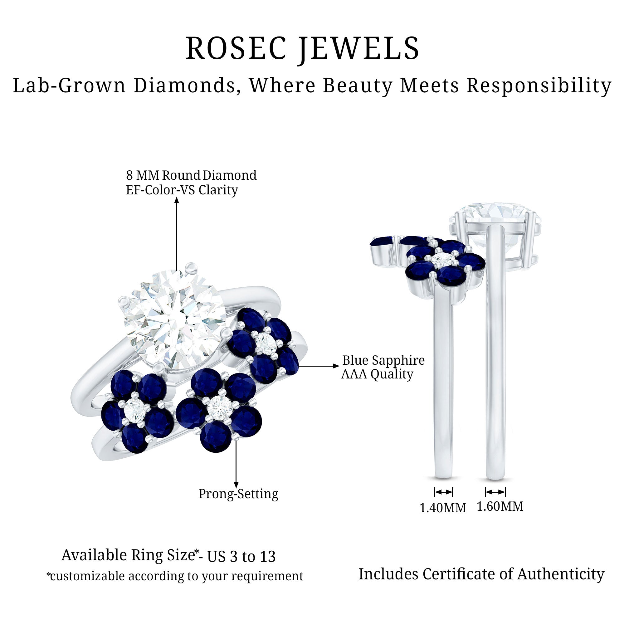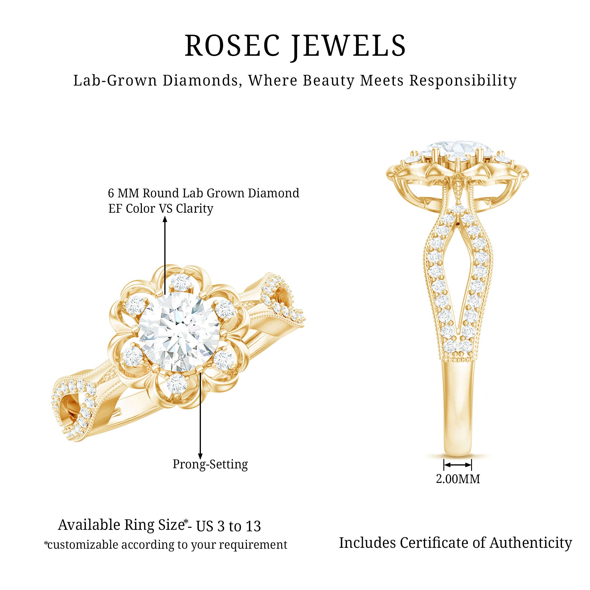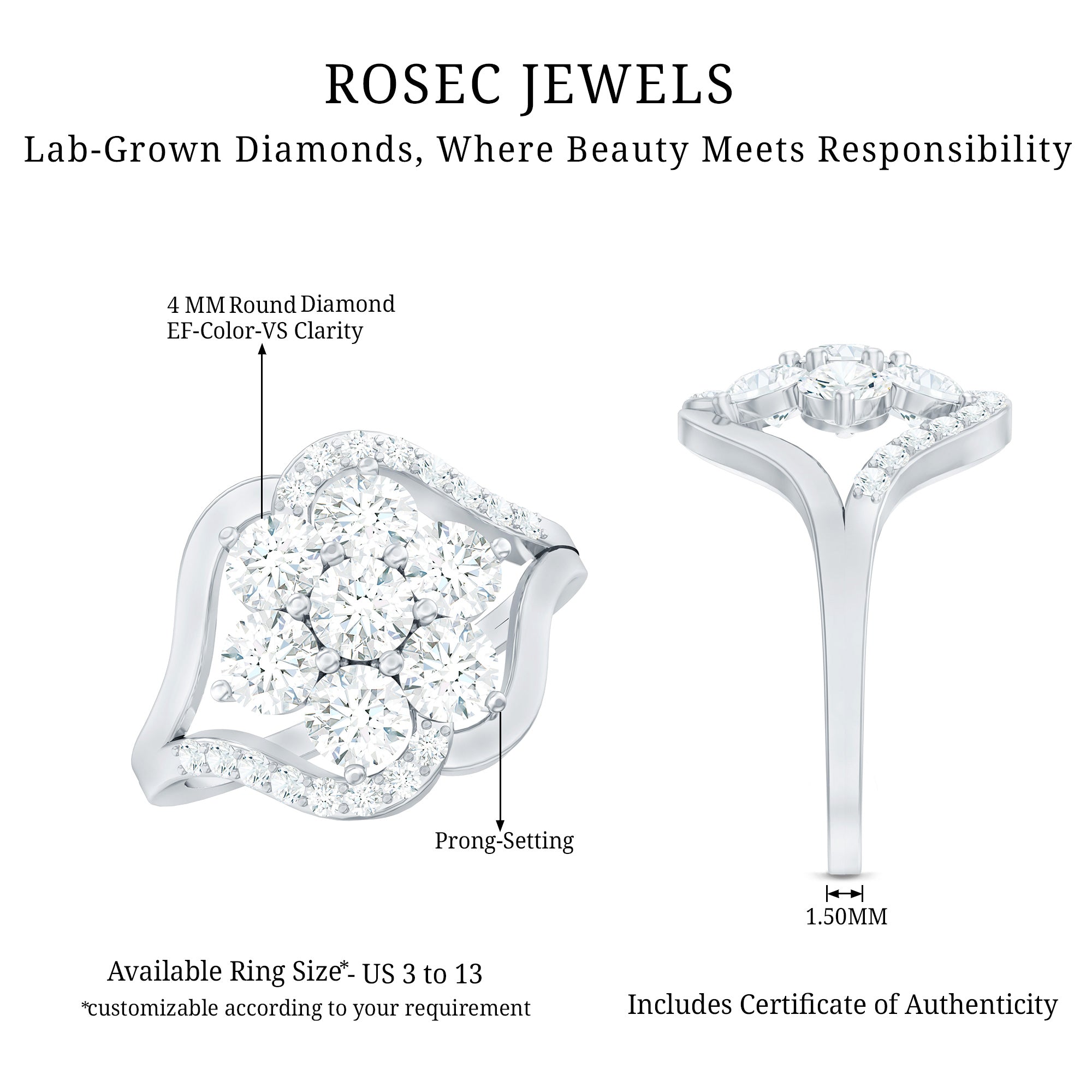 Flower Rings:- Our flower rings are inspired by nature's beauty, and are a good companion for every occasion like engagement, anniversary, birthday, and cocktail parties. Right from majestic solitaire flower rings to halo and eternity flower rings, each piece is specially designed to cater to different tastes and personalities. Even, Rosec Jewels offer you options in choosing the right gemstone for your flower ring, including diamonds, rubies, emeralds, sapphires, aquamarine, and other variety of colored gemstones.