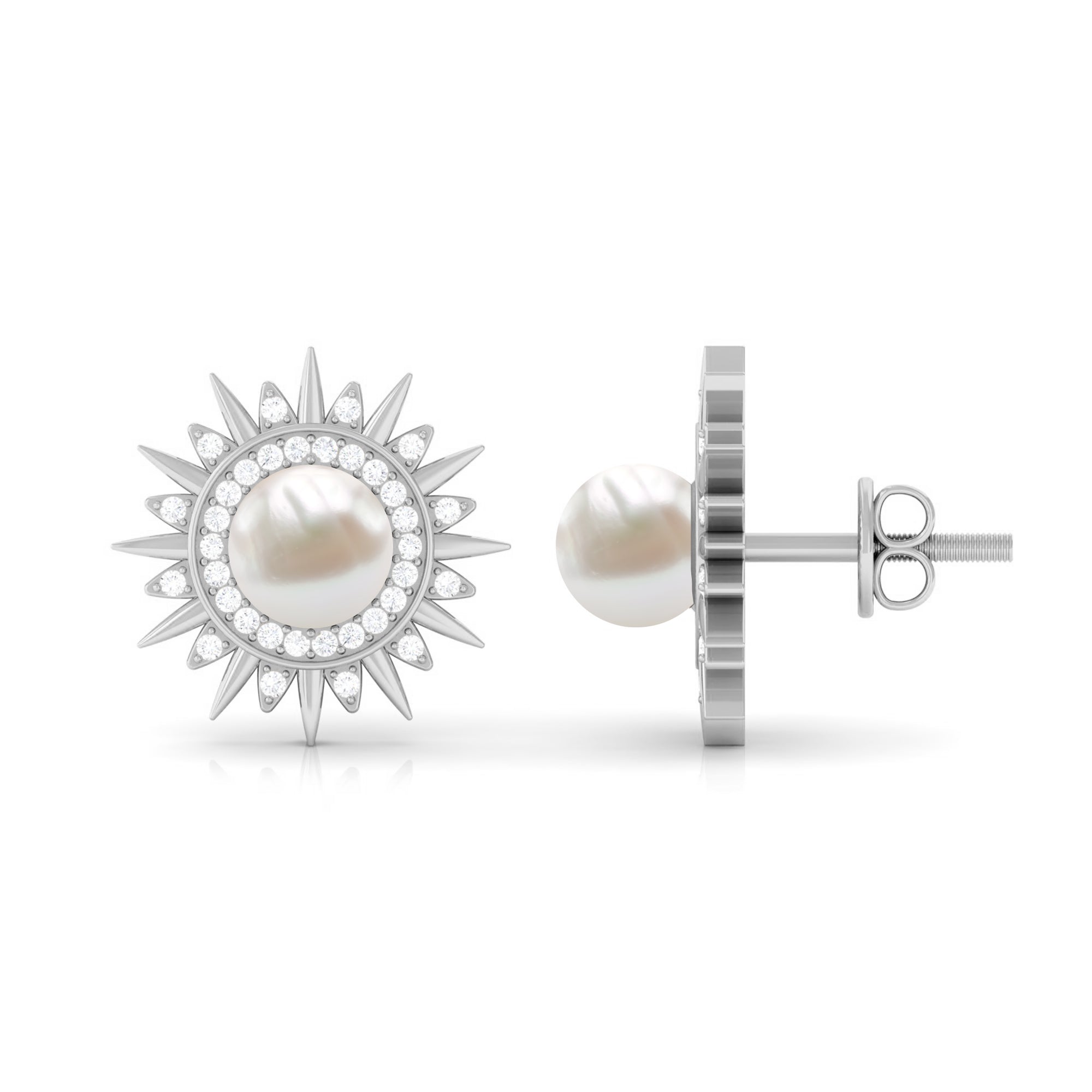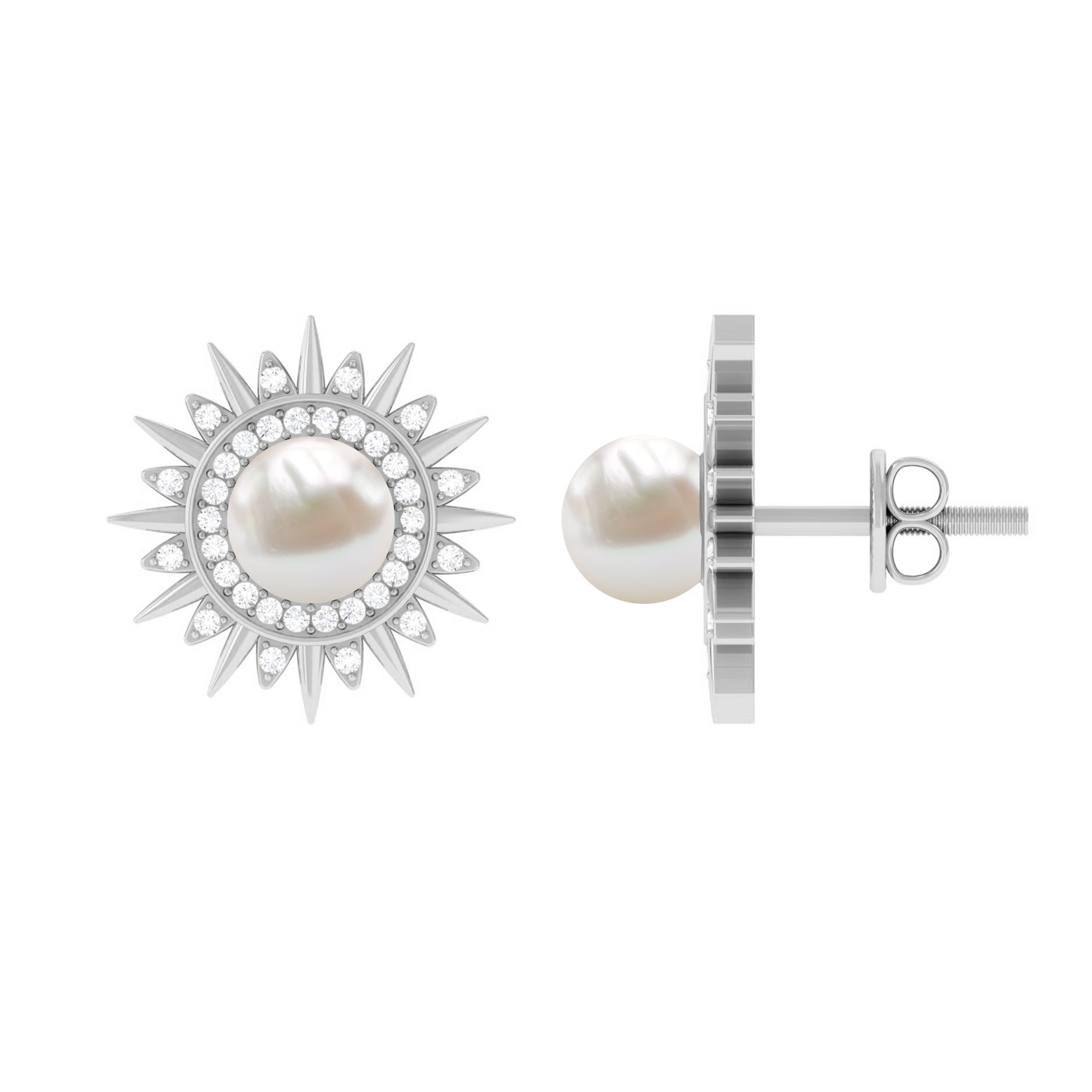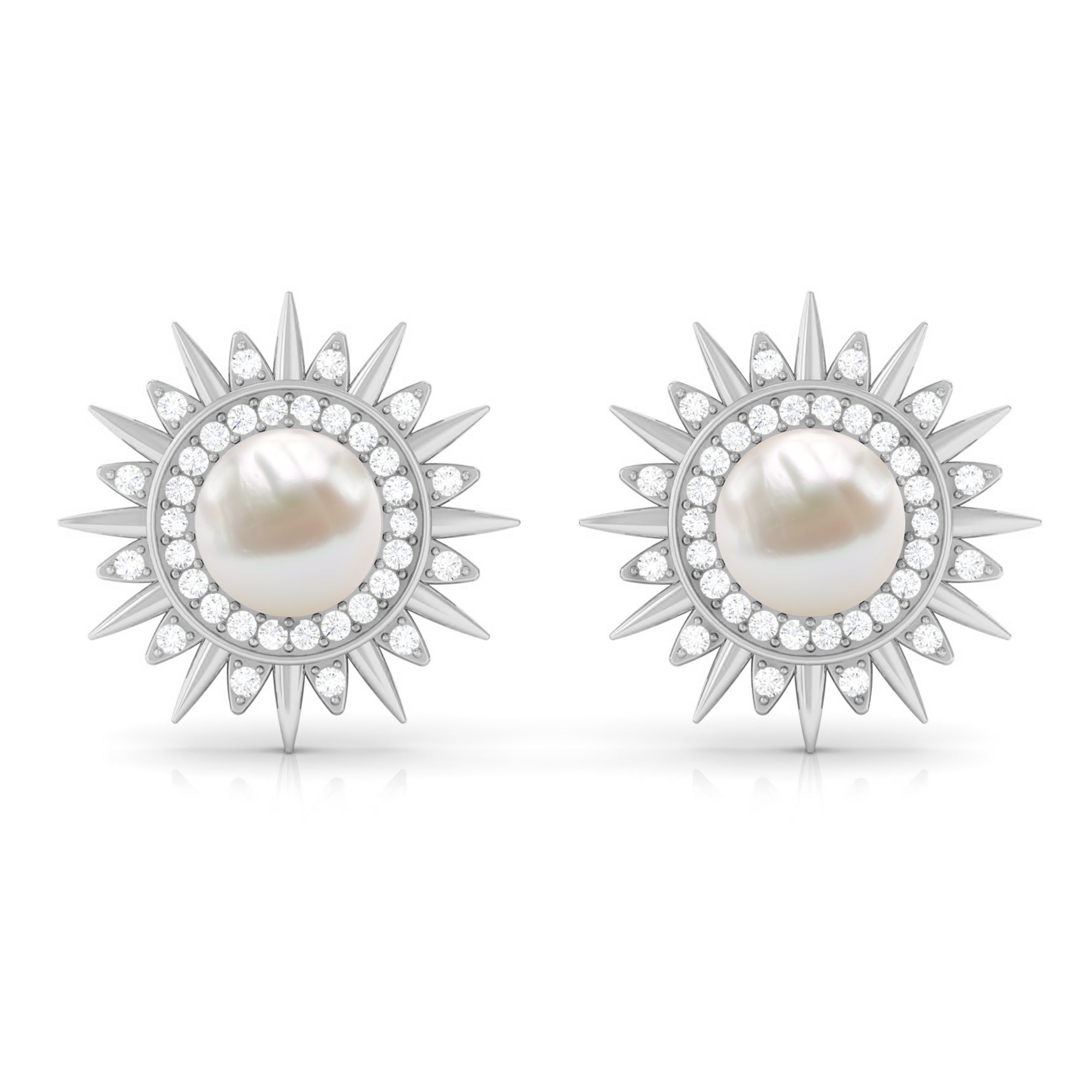 Freshwater Pearl Stud Earrings: - This classic and elegant pearl earrings remains highly popular, featuring a round pearl set in a bead setting, secured by screw back or push back to ensure its safety. These stud earrings secured by post back, complements the beauty of sophisticated pearl and also ensures its longevity. Each pair of earrings stands out for its versatility and classic look. Available in a variety of designs like simple solitaire, breathtaking infinity, shimmery halo, floral studs, and so on. The freshwater pearl studs sit elegantly on the earlobe and uplift like no one else. These can be suitable for daily wear and also worn on special, a pearl stud adds a touch of sophistication.