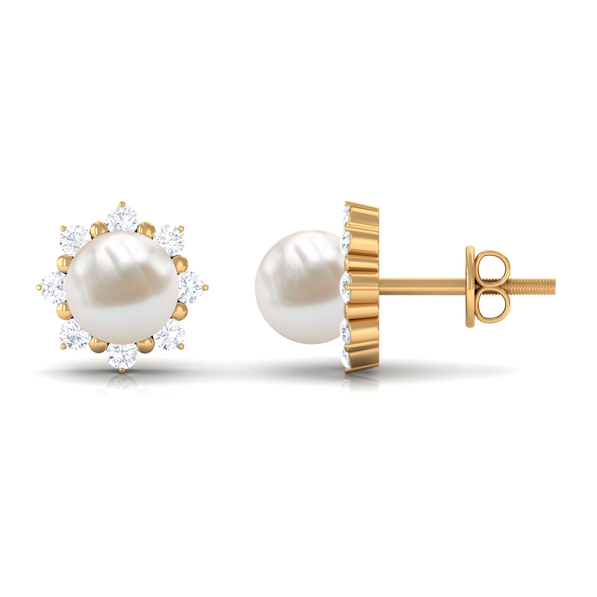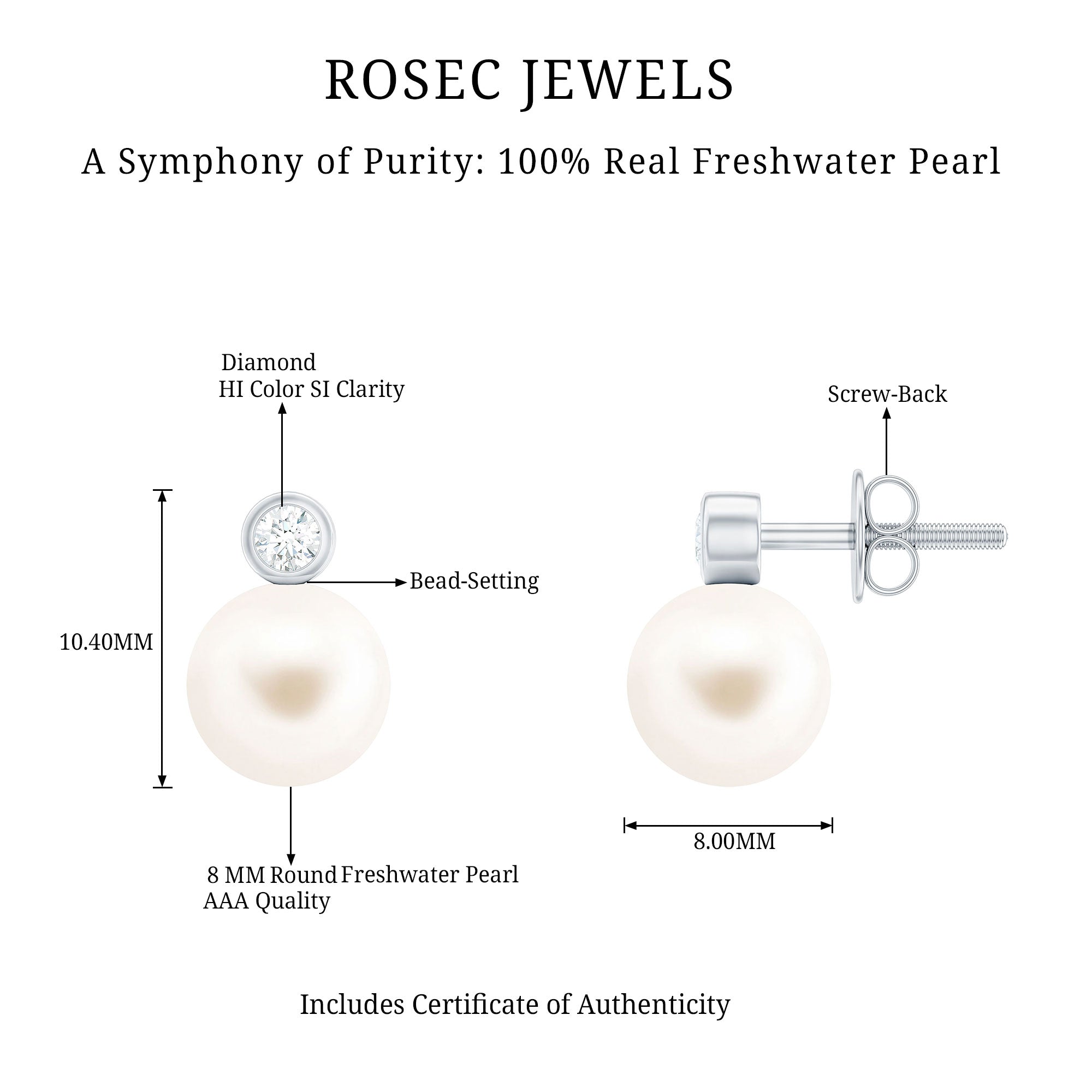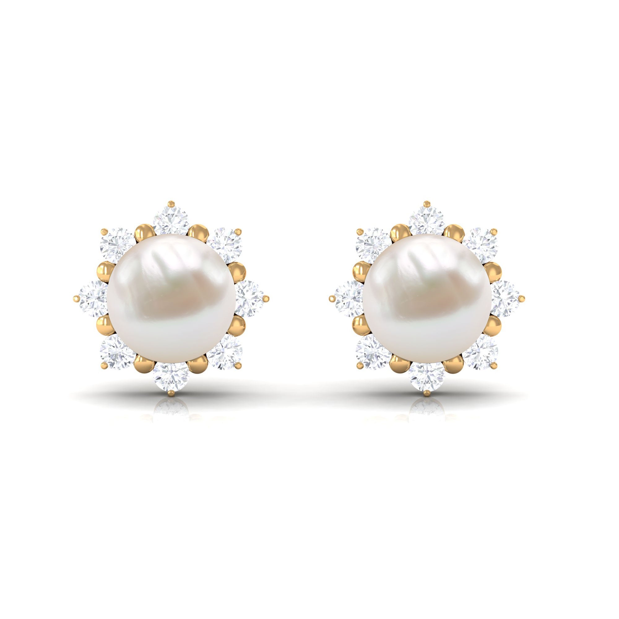 Freshwater Pearl Stud Earrings: - This classic and elegant pearl earrings remains highly popular, featuring a round pearl set in a bead setting, secured by screw back or push back to ensure its safety. These stud earrings secured by post back, complements the beauty of sophisticated pearl and also ensures its longevity. Each pair of earrings stands out for its versatility and classic look. Available in a variety of designs like simple solitaire, breathtaking infinity, shimmery halo, floral studs, and so on. The freshwater pearl studs sit elegantly on the earlobe and uplift like no one else. These can be suitable for daily wear and also worn on special, a pearl stud adds a touch of sophistication.