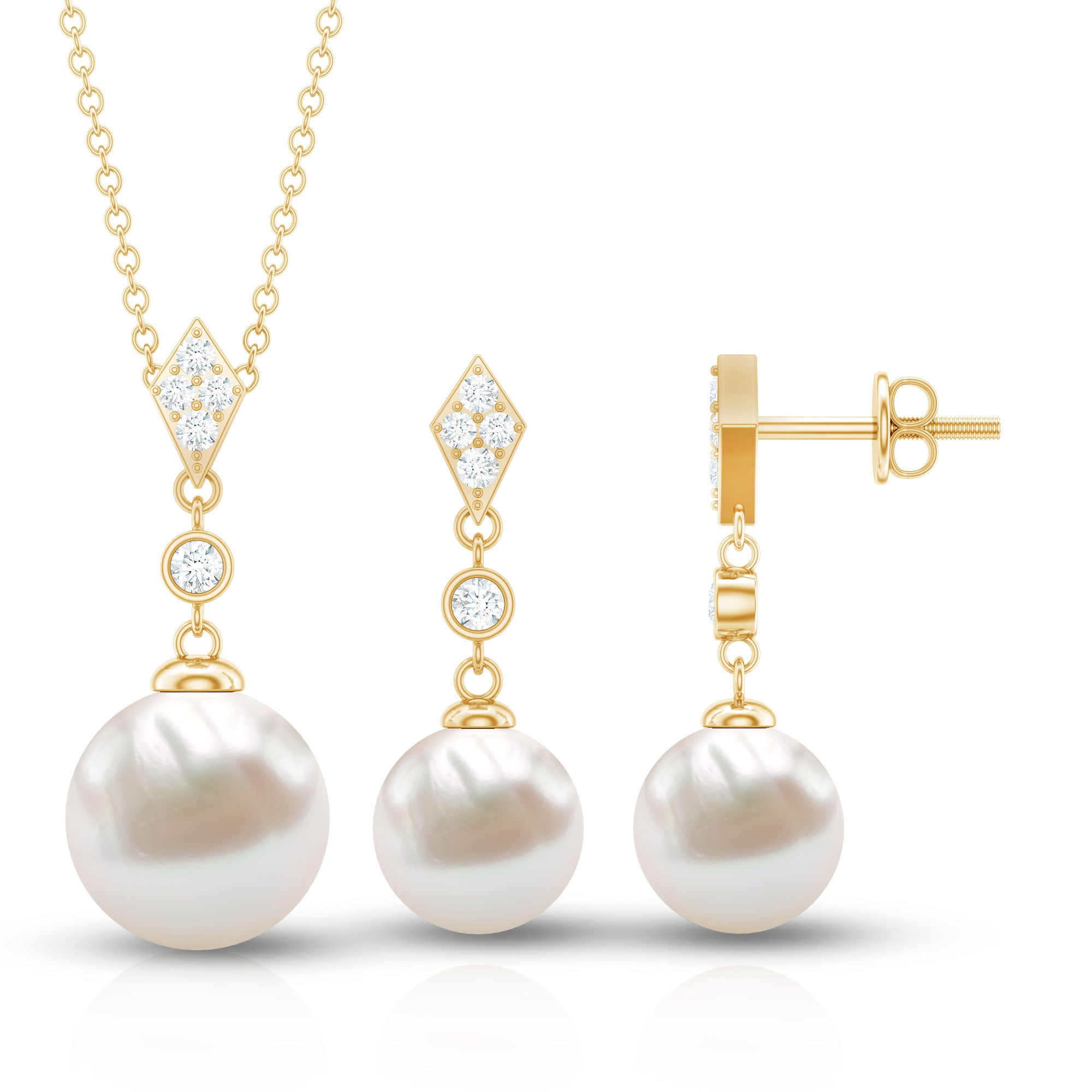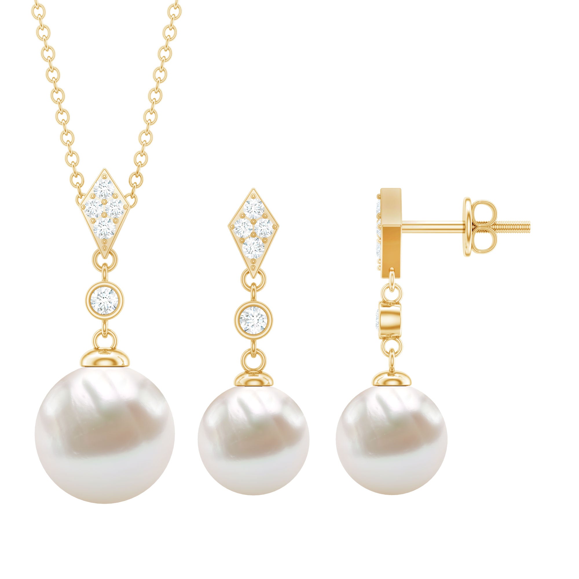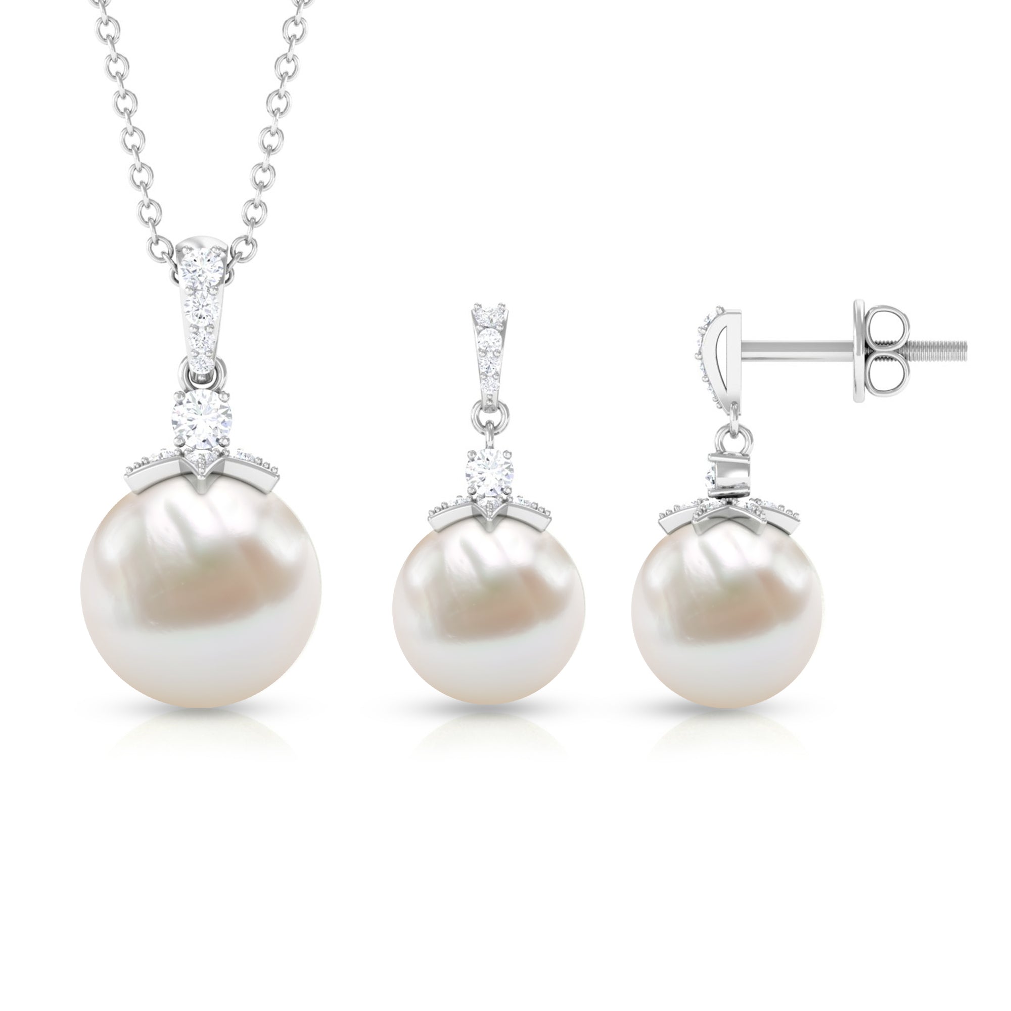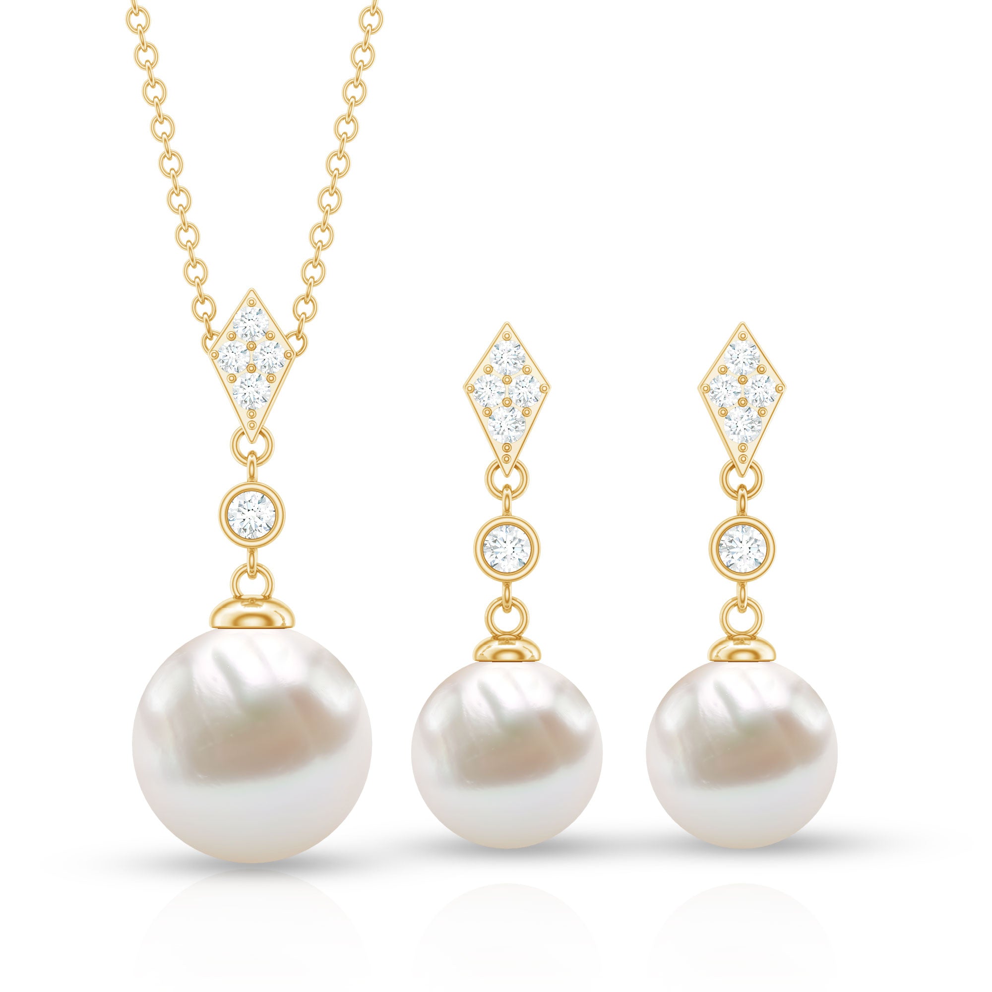 The freshwater necklaces with a halo motif are classy and timeless. The halo pendant are embellished with freshwater pearls as a centerpiece and shimmery diamond accents to offer a unique look. These pendant sets are perfect to send your lady as an anniversary gift or engagement gift.