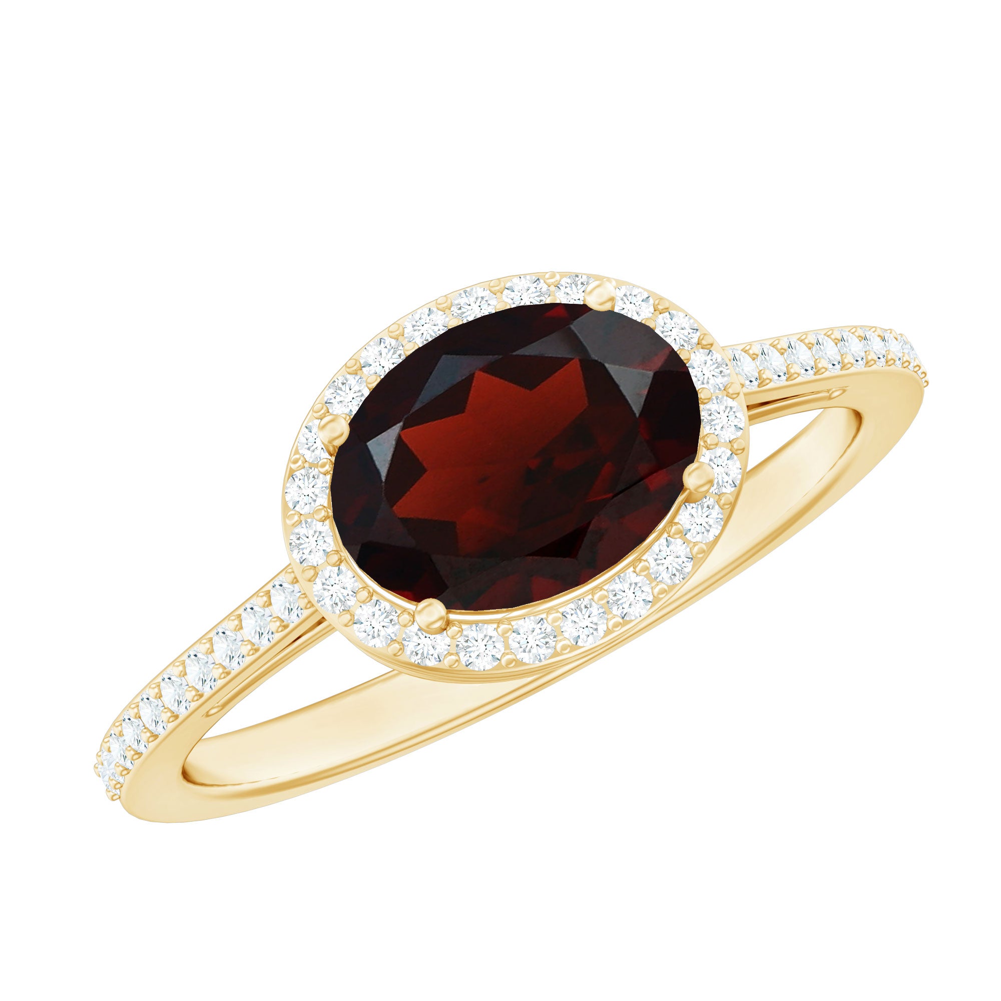 Halo Rings: - Showcases the beauty of garnet stone with a halo motif, these rings accentuate the brilliance of the center stone elegantly. Due to the diamond accents, the size of the garnet looks a bit large. The vibrant hues of red stone represent love and passion which makes them perfect for engagement rings. The halo style adds an extra layer of shine and elegance to the ring, enhancing the beauty of the ring. The Halo collection is perfect for those who always appreciate something unique and classy.
