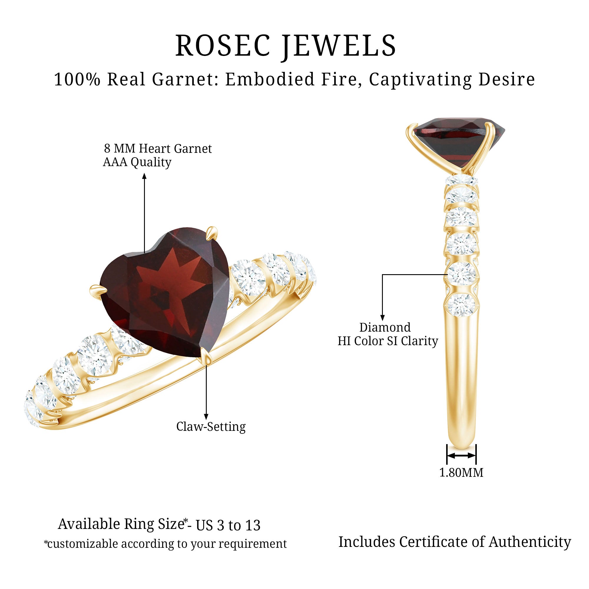 Our garnet engagement rings collection offers a wide variety of garnet engagement rings, ranging from simple solitaire styles to more intricate designer pieces. These days, red gemstones are trending for engagement jewelry due to their rich color and affordable prices. These styles offer bold ways to propose and celebrate love. The garnet gem considers as the stone of love, mainly associated with protection, love, passion, commitment, and never-ending friendship. Whether you're going to choose a classic solitaire ring or an antique vintage ring, each ring is specially designed to cater to your style.
