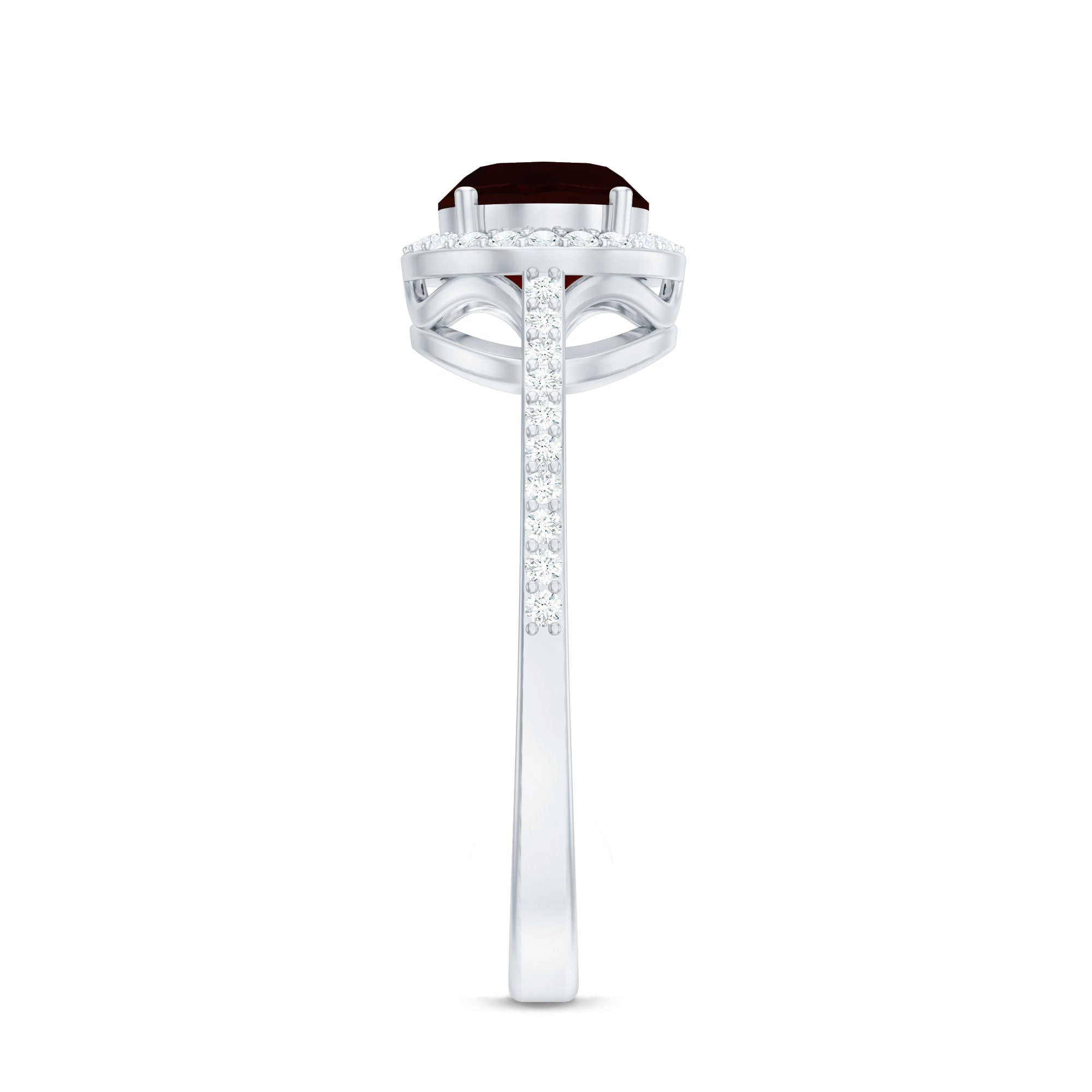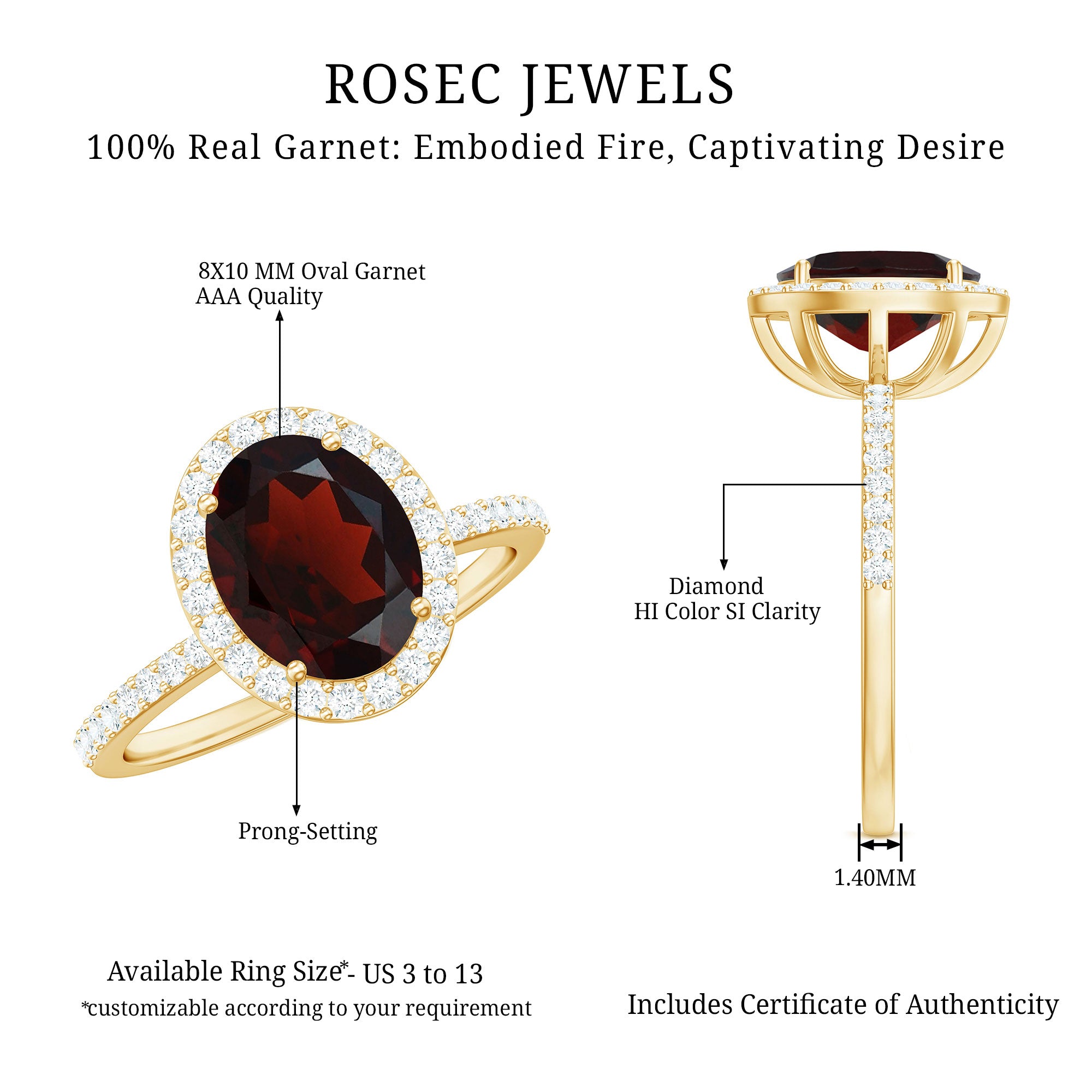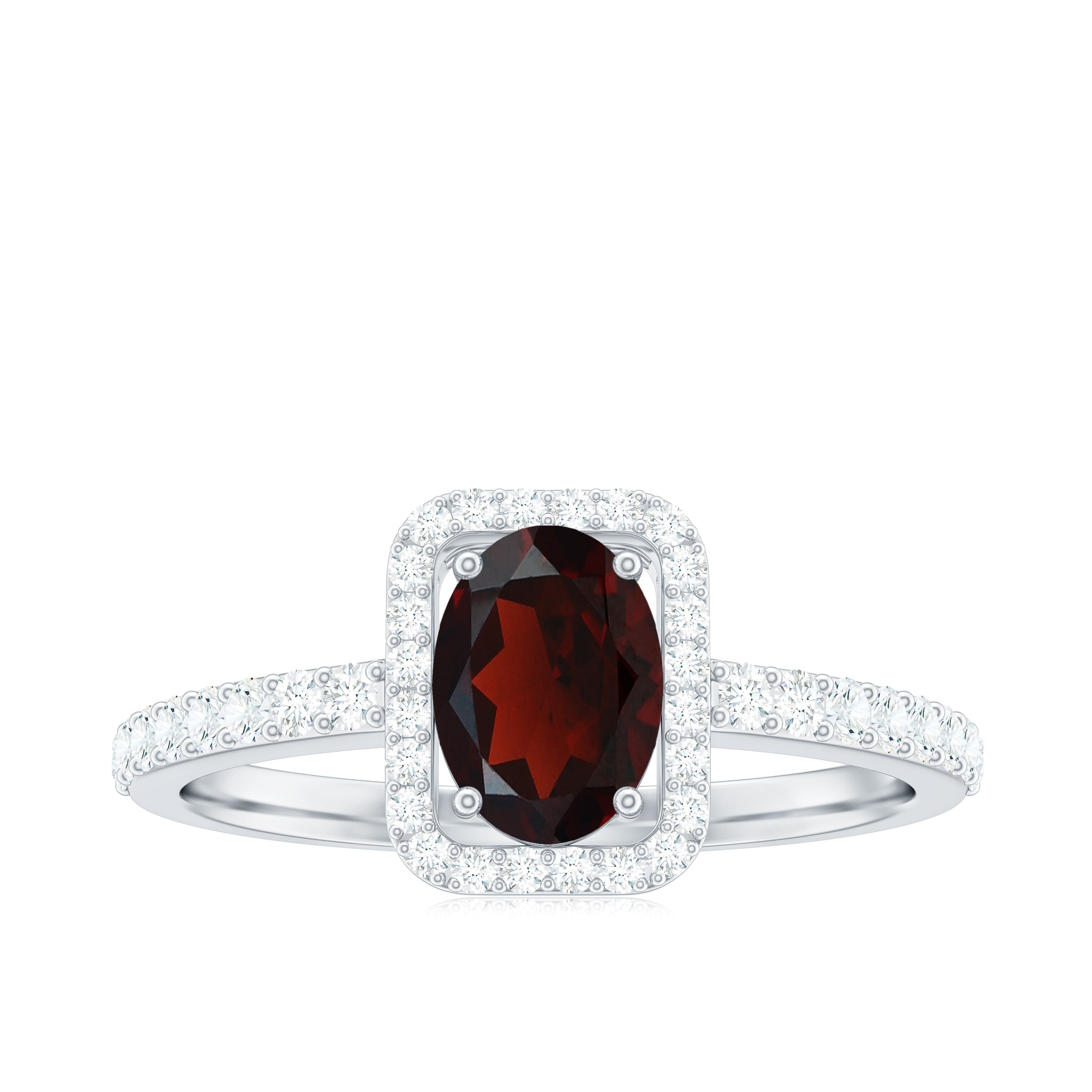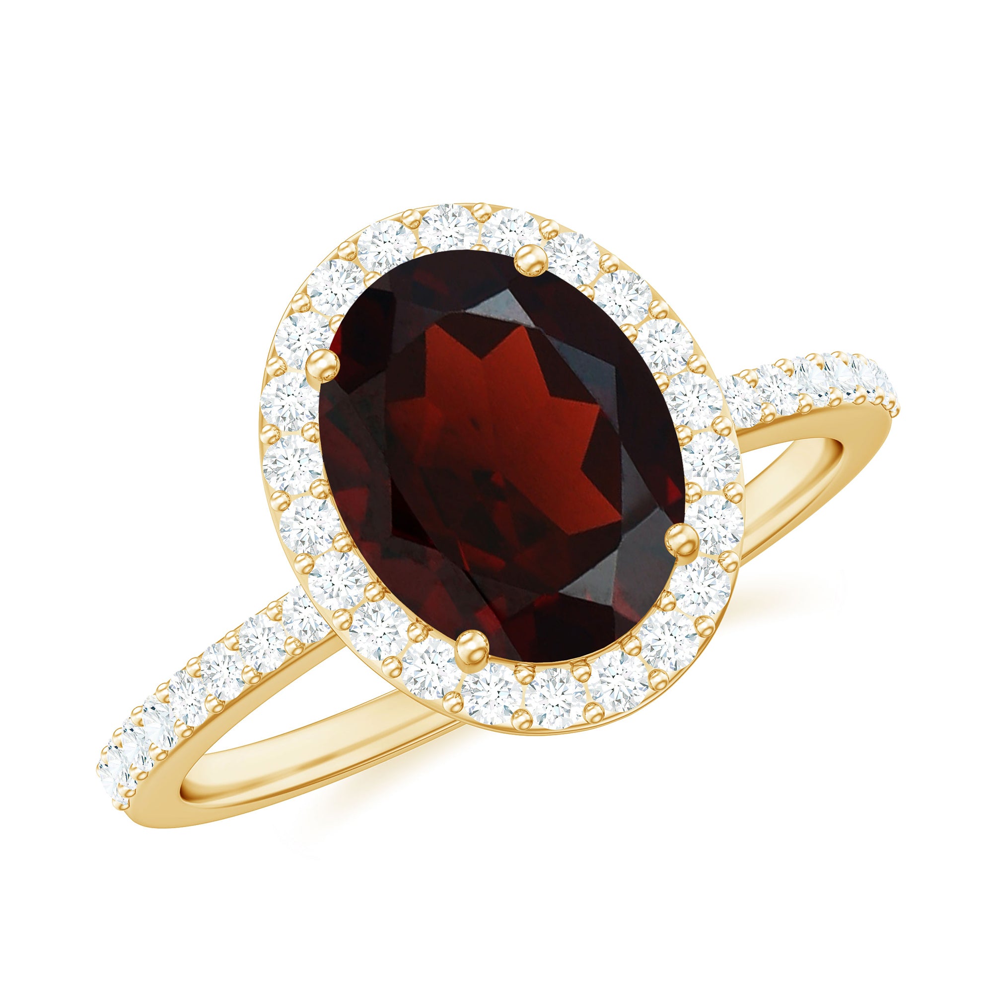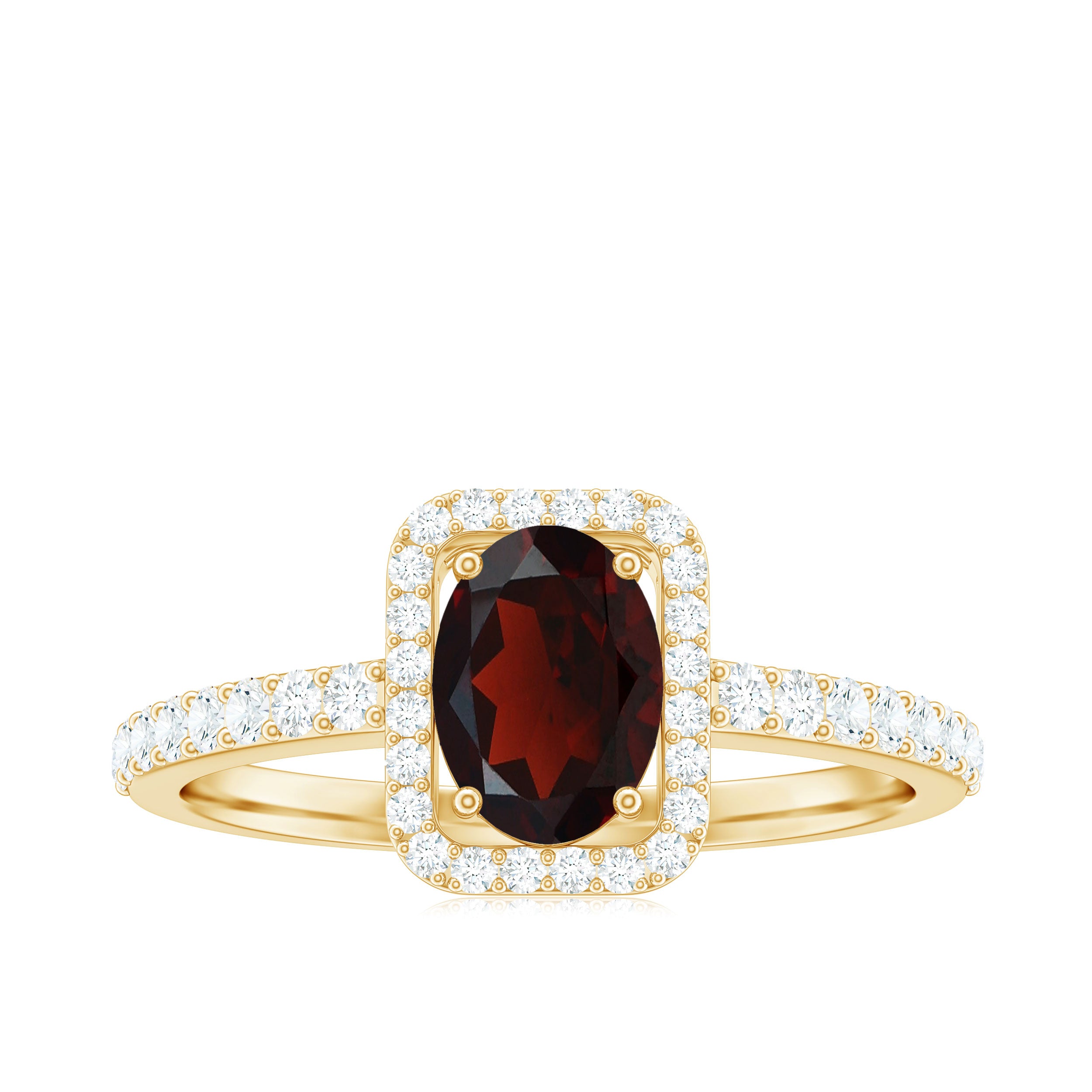 Halo Rings: - Showcases the beauty of garnet stone with a halo motif, these rings accentuate the brilliance of the center stone elegantly. Due to the diamond accents, the size of the garnet looks a bit large. The vibrant hues of red stone represent love and passion which makes them perfect for engagement rings. The halo style adds an extra layer of shine and elegance to the ring, enhancing the beauty of the ring. The Halo collection is perfect for those who always appreciate something unique and classy.