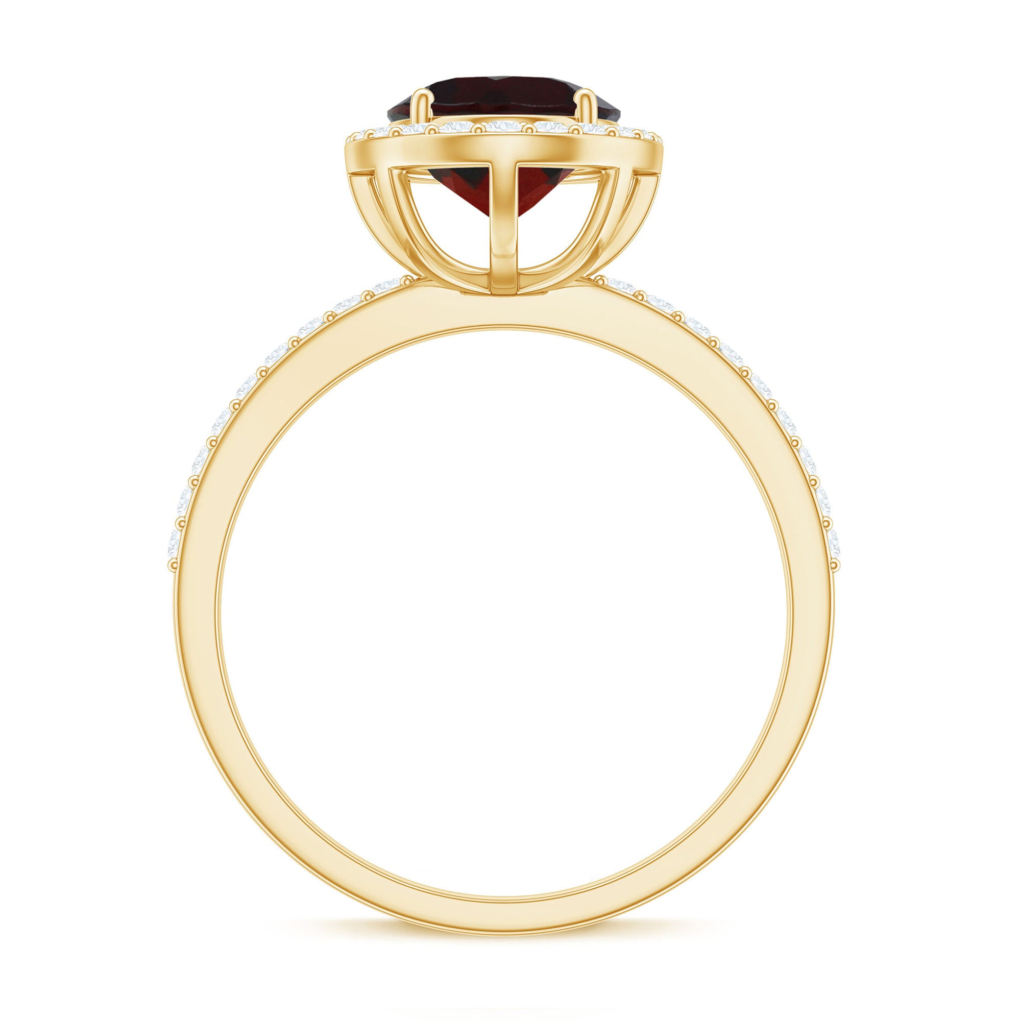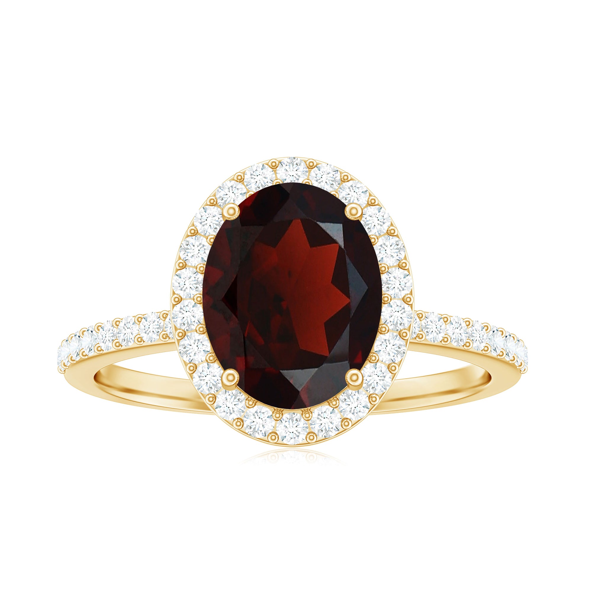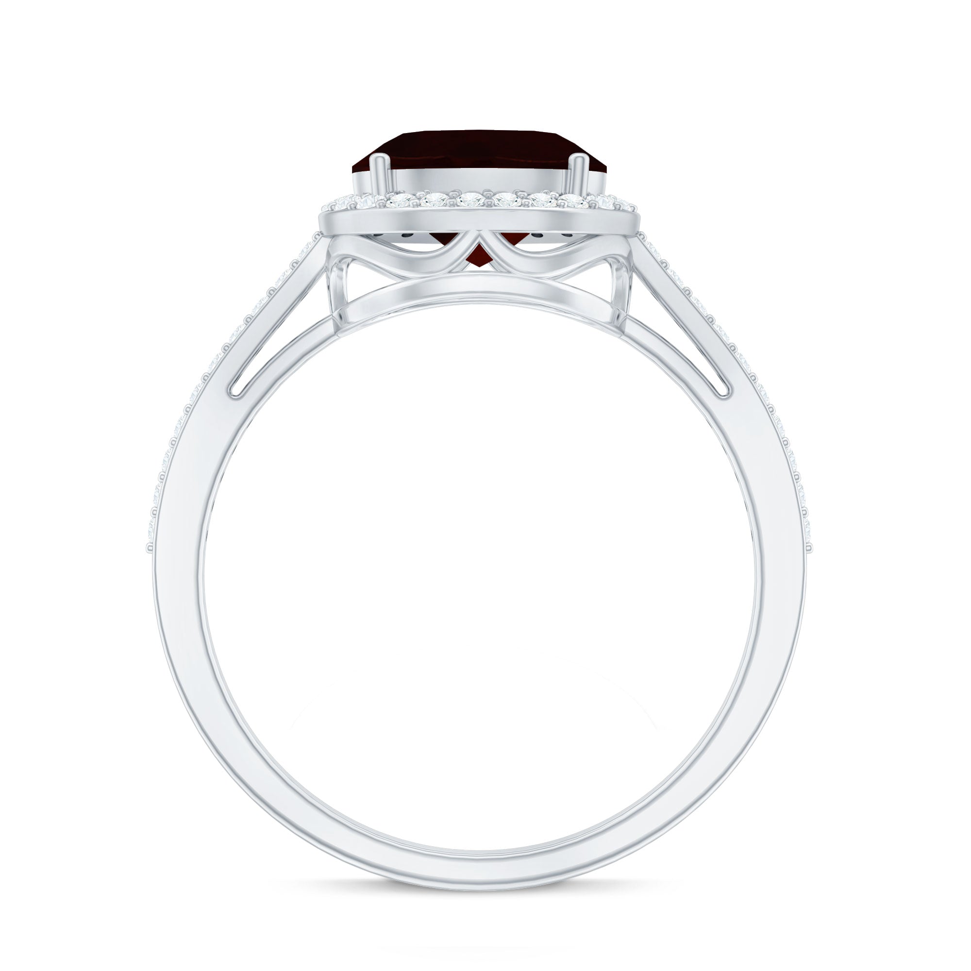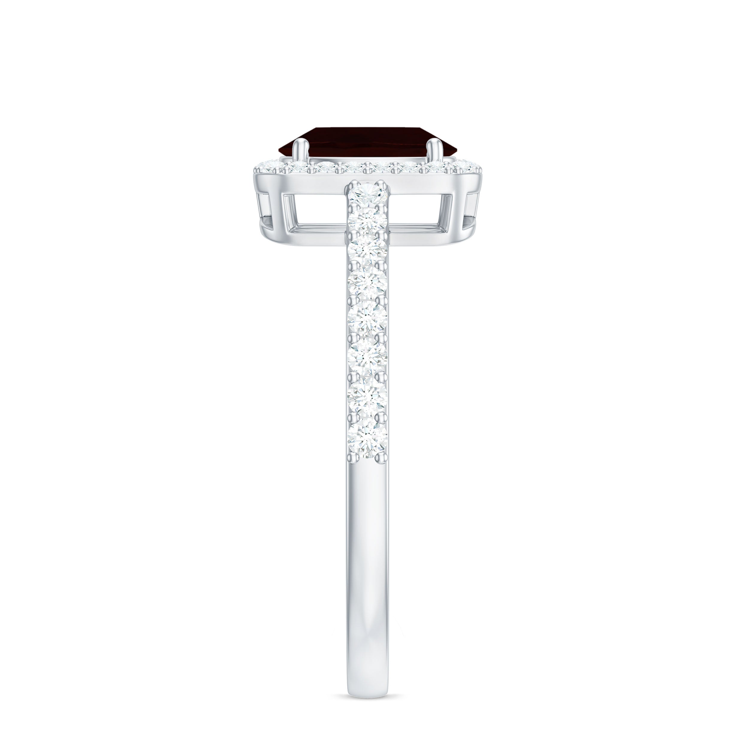 Halo Rings: - Showcases the beauty of garnet stone with a halo motif, these rings accentuate the brilliance of the center stone elegantly. Due to the diamond accents, the size of the garnet looks a bit large. The vibrant hues of red stone represent love and passion which makes them perfect for engagement rings. The halo style adds an extra layer of shine and elegance to the ring, enhancing the beauty of the ring. The Halo collection is perfect for those who always appreciate something unique and classy.