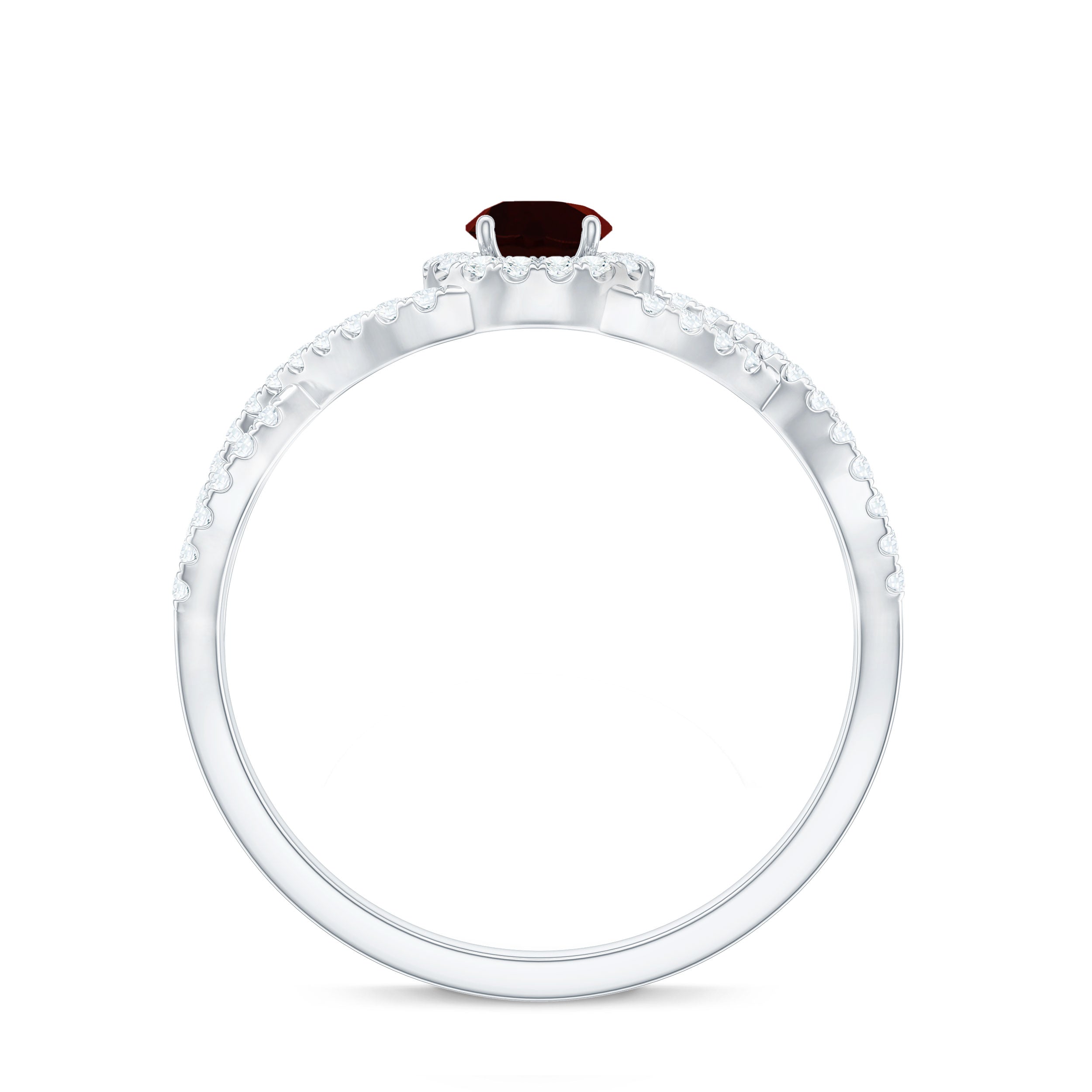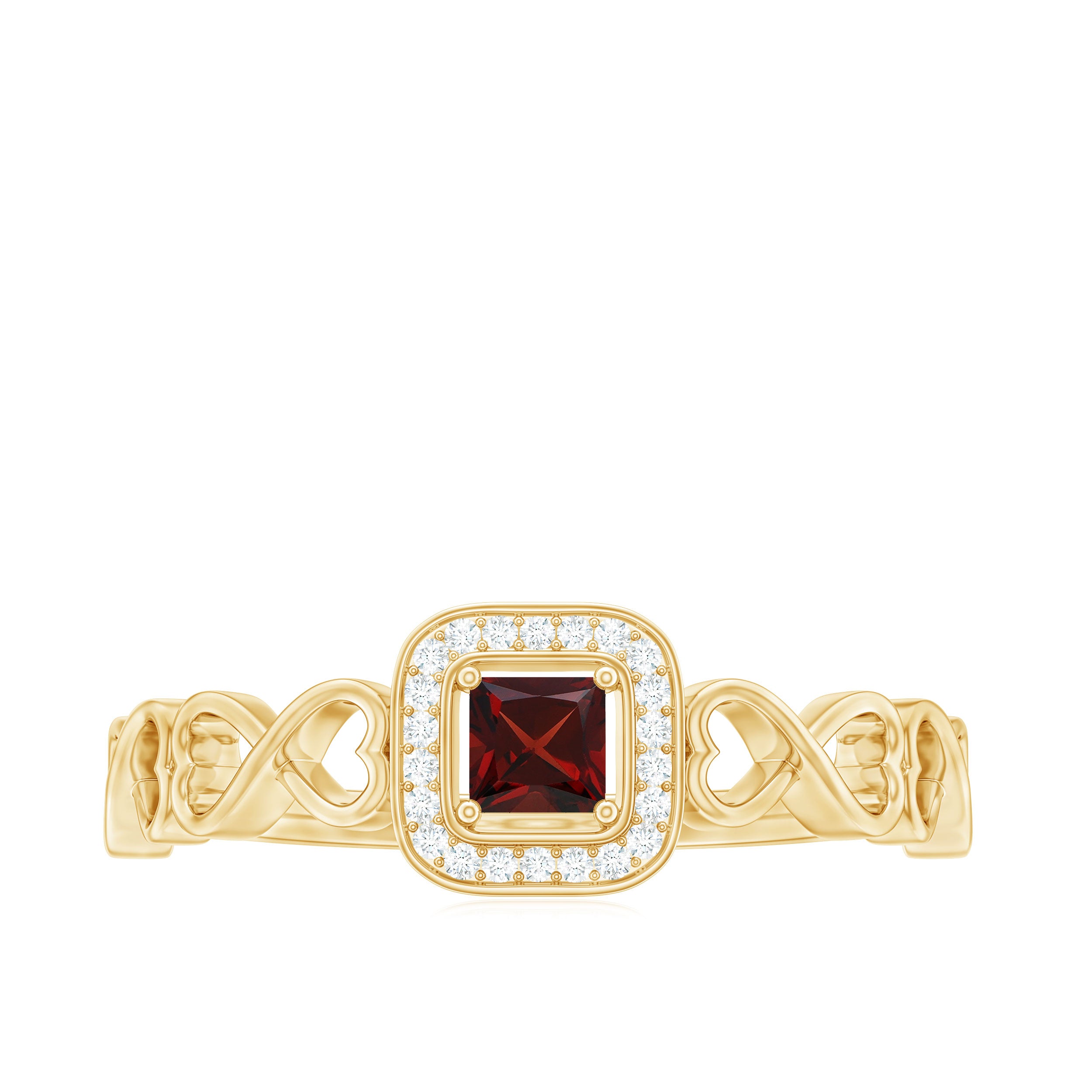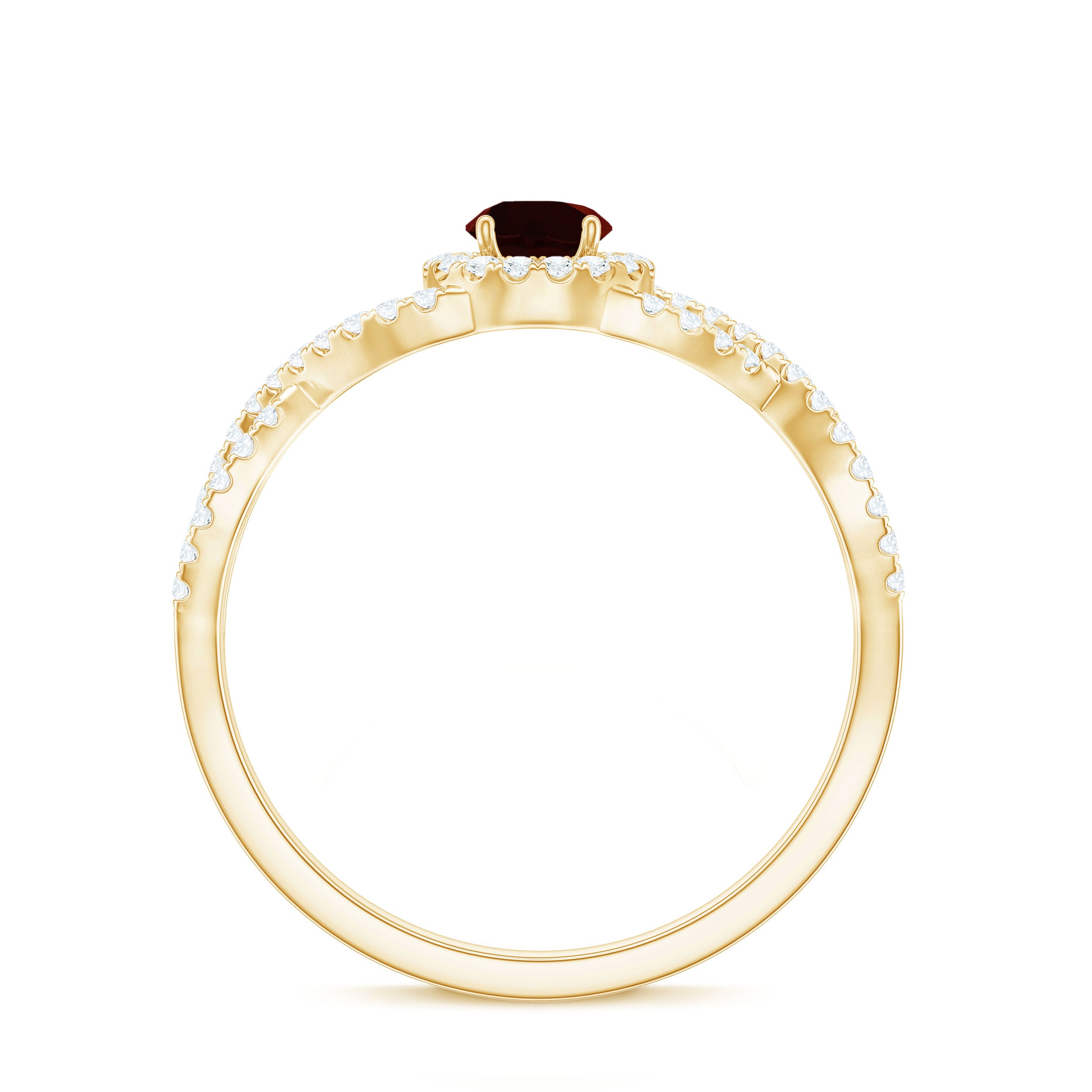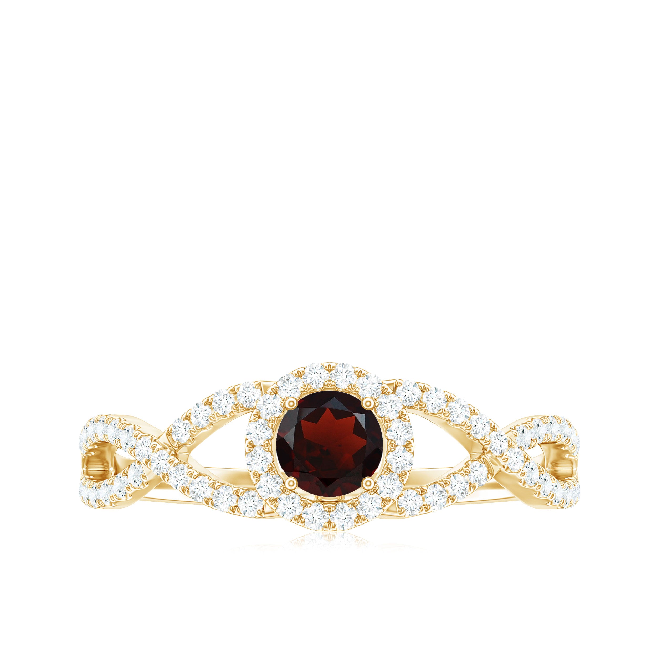 Halo Rings: - Showcases the beauty of garnet stone with a halo motif, these rings accentuate the brilliance of the center stone elegantly. Due to the diamond accents, the size of the garnet looks a bit large. The vibrant hues of red stone represent love and passion which makes them perfect for engagement rings. The halo style adds an extra layer of shine and elegance to the ring, enhancing the beauty of the ring. The Halo collection is perfect for those who always appreciate something unique and classy.