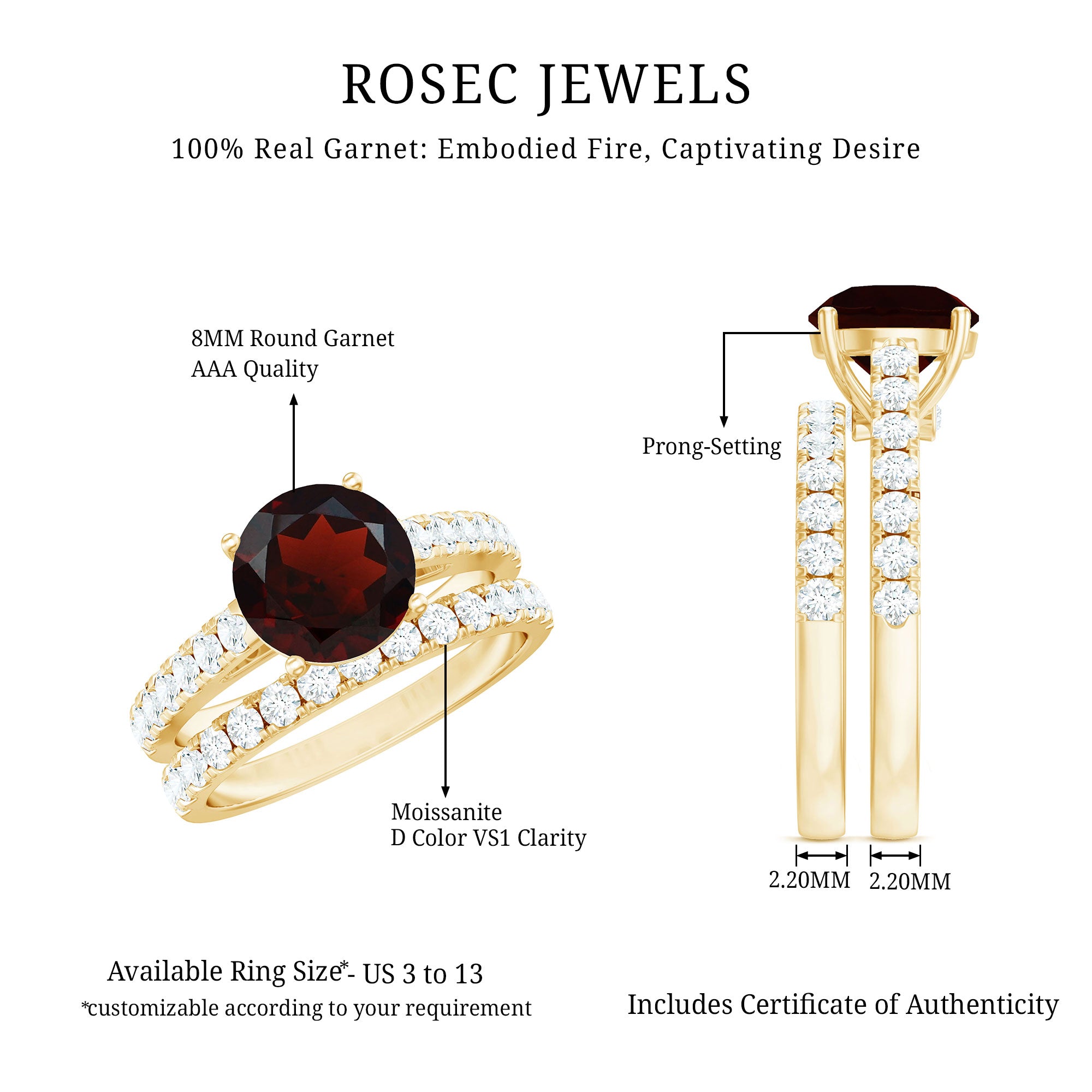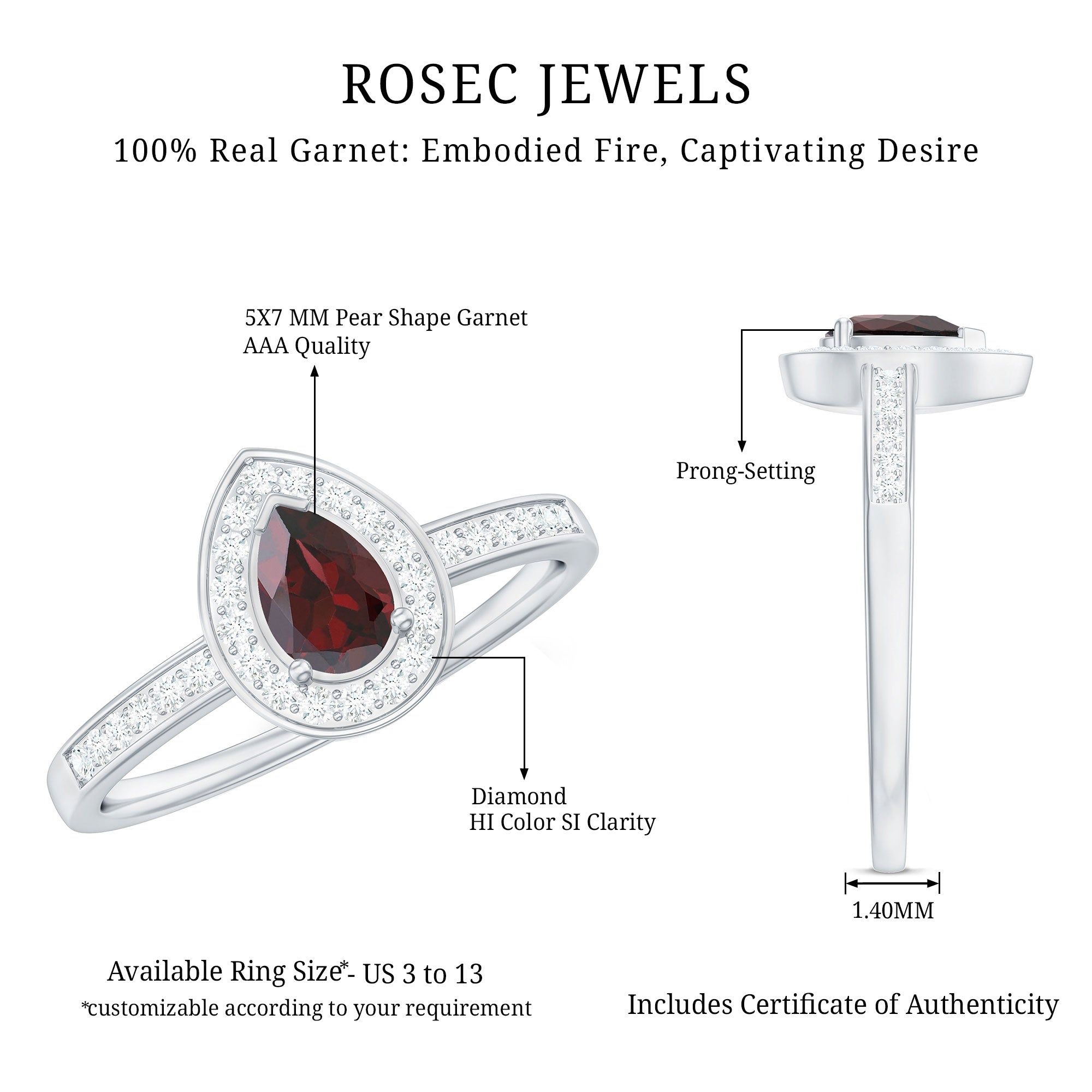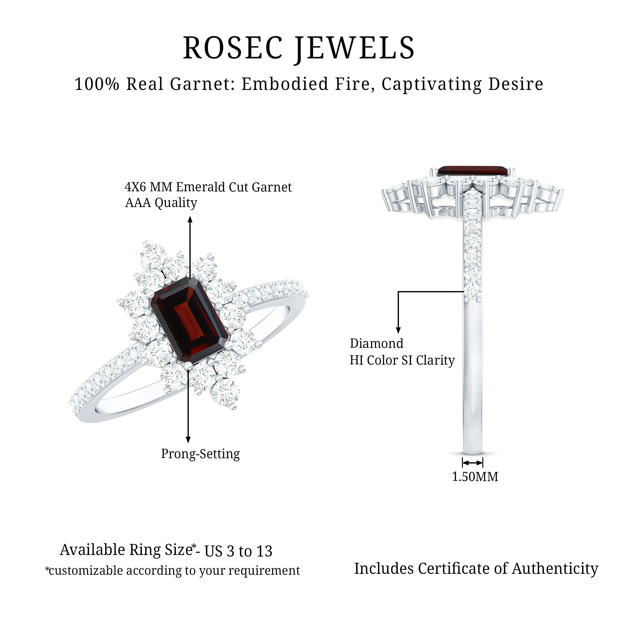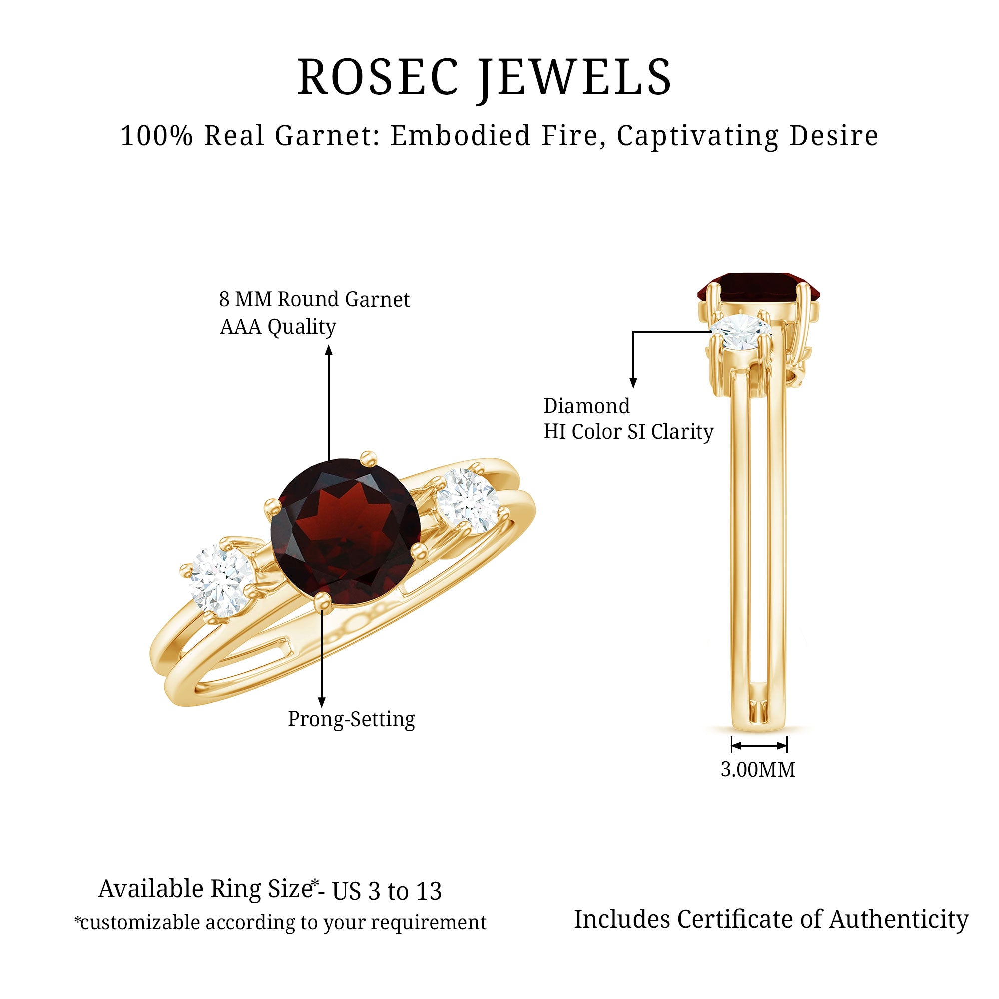 • Solitaire Rings: - Classy and elegant, these solitaire engagement rings feature a single stunning gemstone as the focal point. What can be more dazzling than garnet stone? The red gemstone is suitable for engagement rings, symbolizing love and commitment. The rings are either set in a prong or bezel setting to hold the garnet stone securely. The solitaire rings offer versatility and highlight the beauty of the centerpiece. Our garnet solitaire rings never go out of style, yet comfortable to wear and complement special occasion outfits as well.