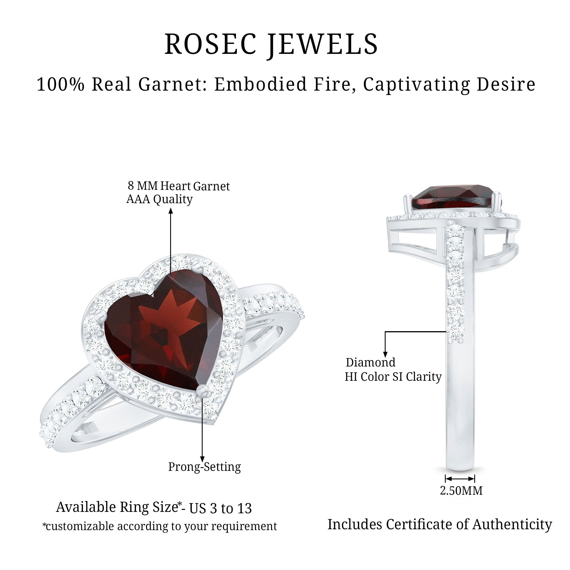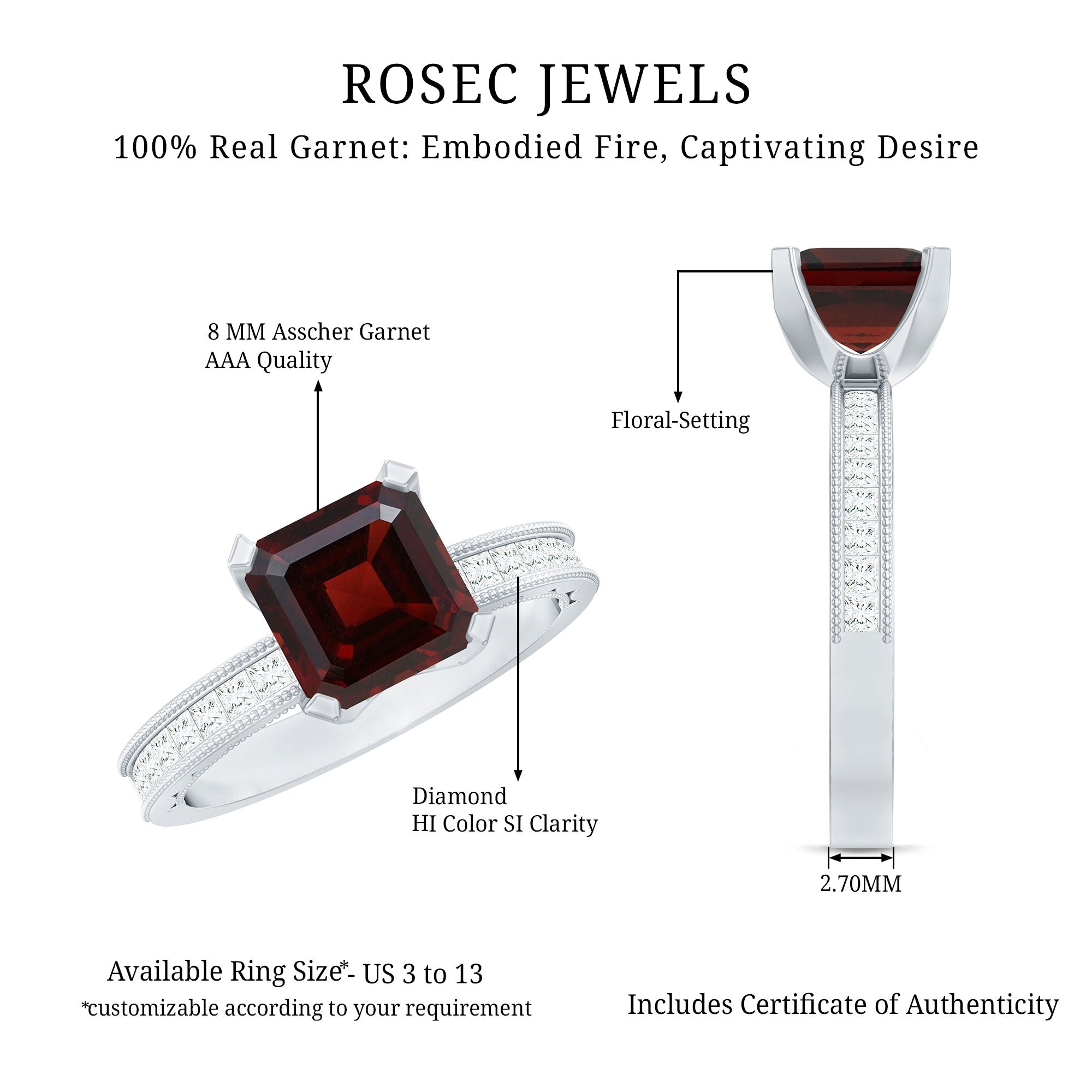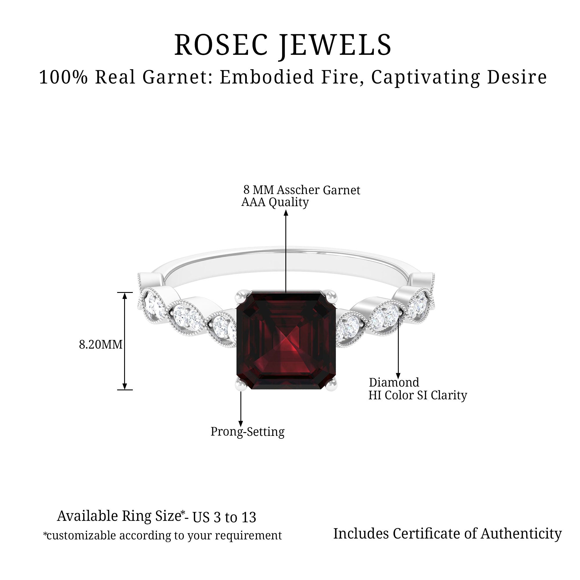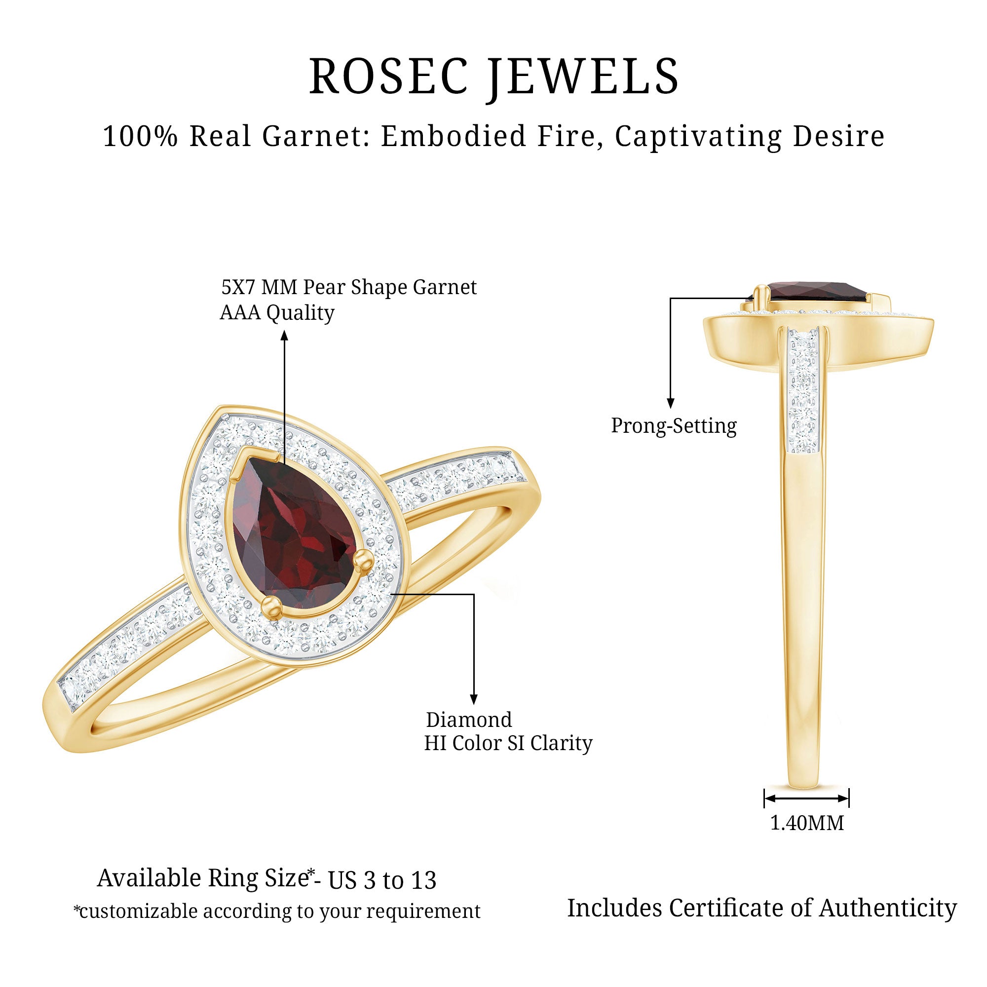 • Solitaire Rings: - Classy and elegant, these solitaire engagement rings feature a single stunning gemstone as the focal point. What can be more dazzling than garnet stone? The red gemstone is suitable for engagement rings, symbolizing love and commitment. The rings are either set in a prong or bezel setting to hold the garnet stone securely. The solitaire rings offer versatility and highlight the beauty of the centerpiece. Our garnet solitaire rings never go out of style, yet comfortable to wear and complement special occasion outfits as well.