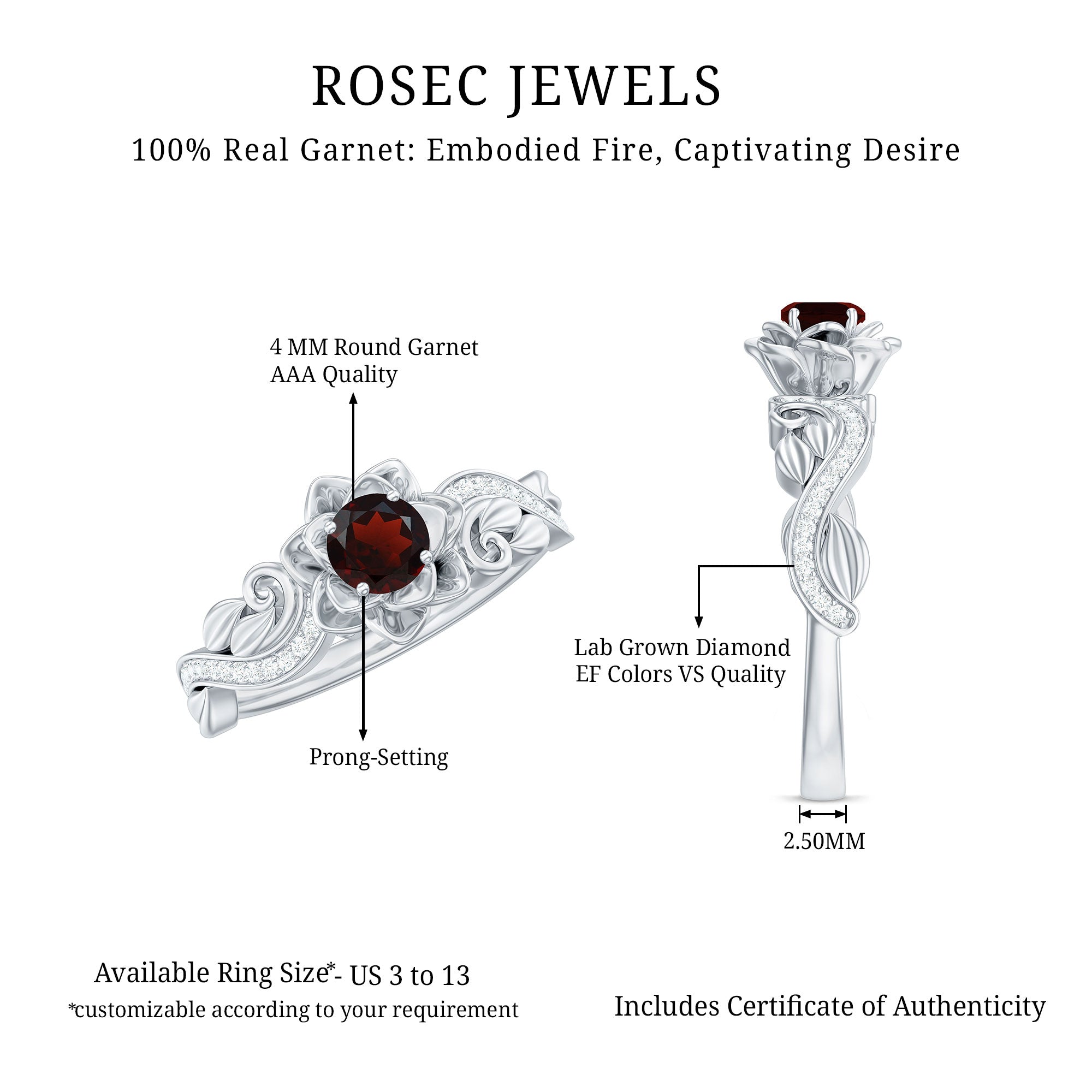 • Nature Inspired Rings: - Capture nature's beauty, these natures inspired rings showcase organic elements like flower, leaf motif, and floral patterns. The nature inspired engagement rings crafted with perfection serve the garnet as a focal point. The rings are a unique way to celebrate your big day and everlasting circle of growth.