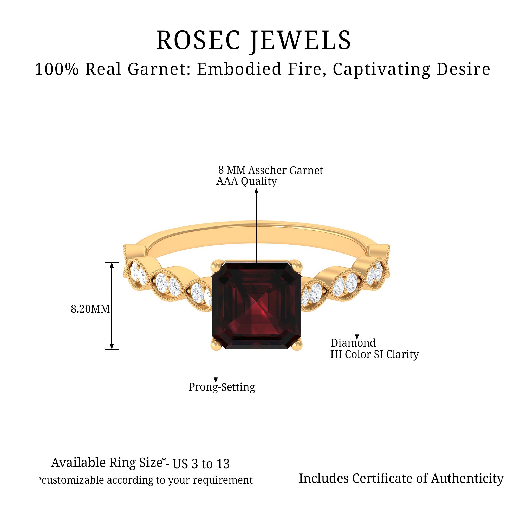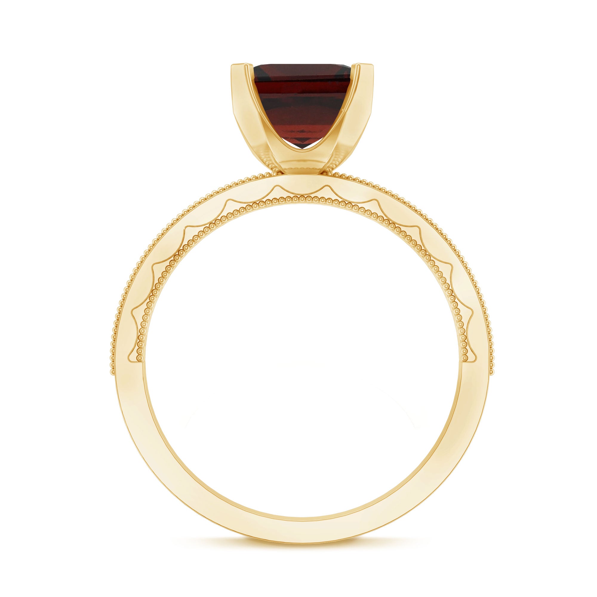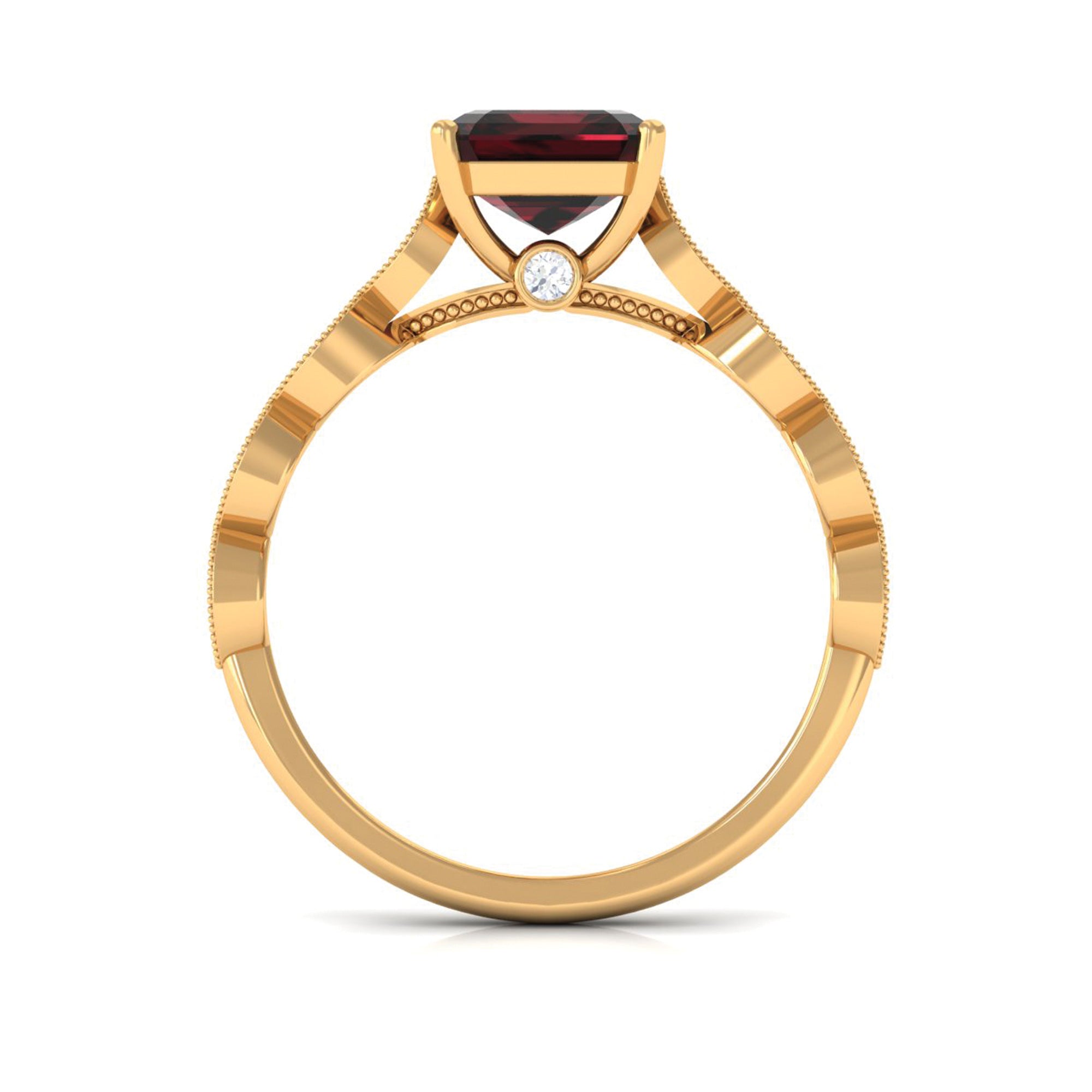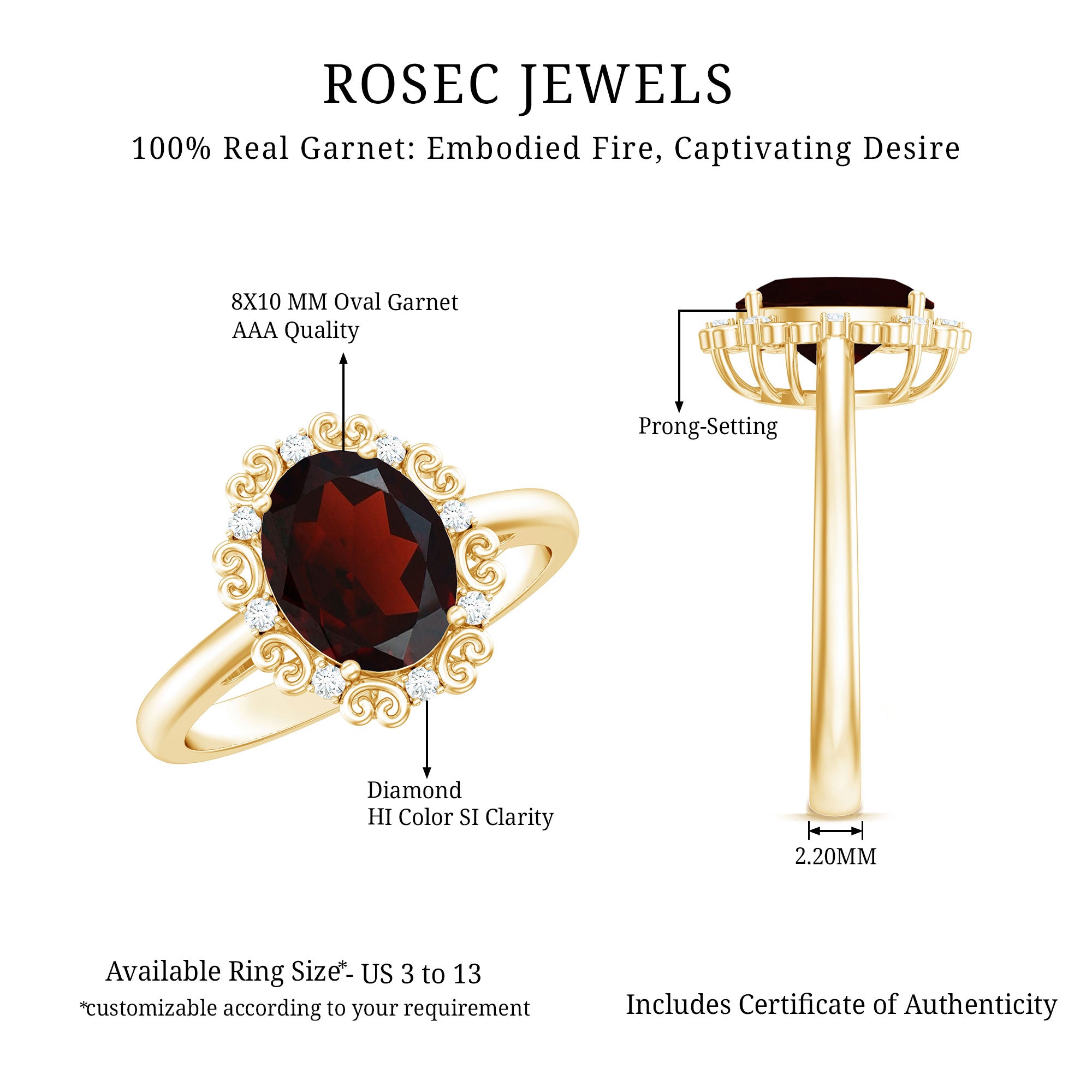 • Yellow Gold: - The yellow gold enhances the vibrant tone of garnet while making the ring antique and unique.