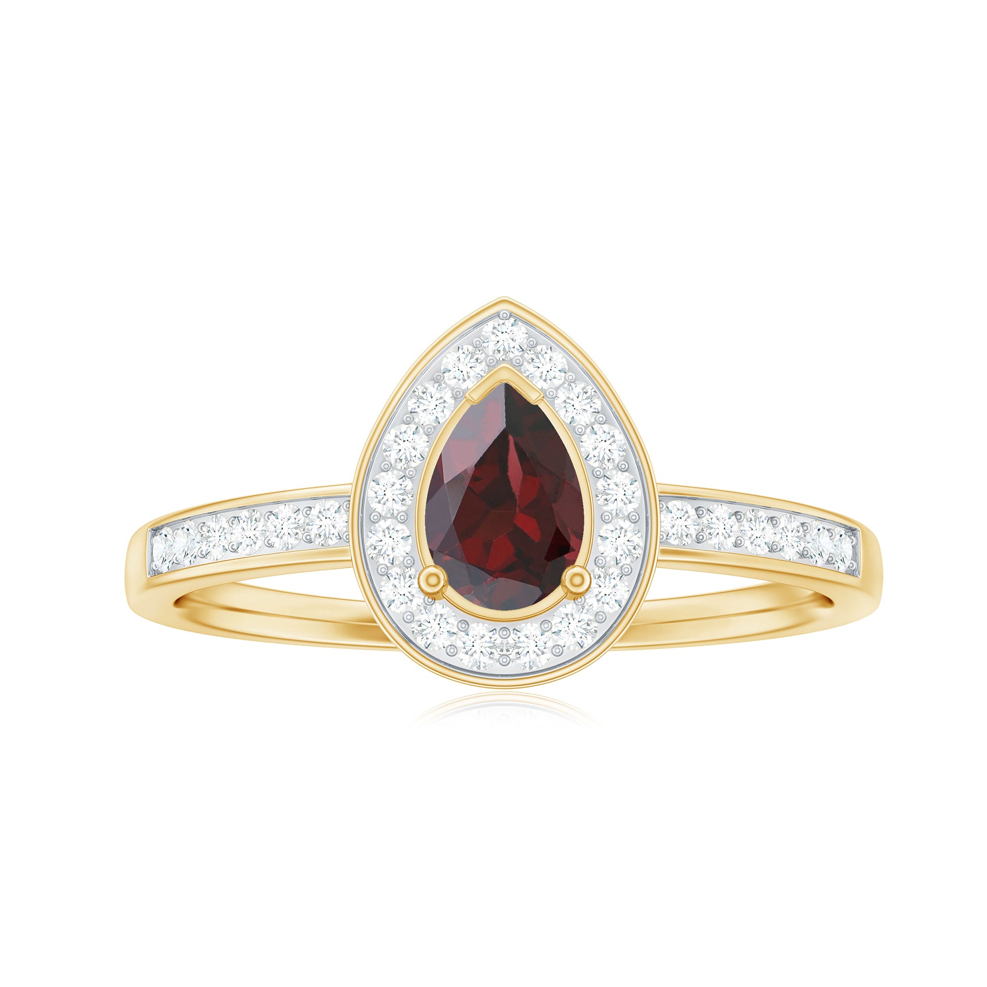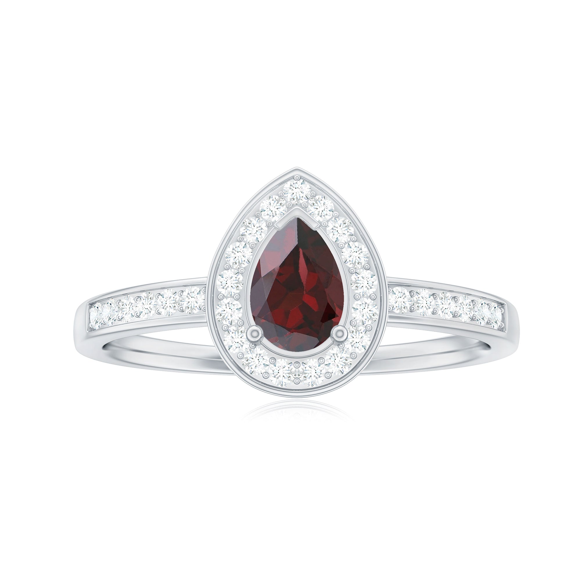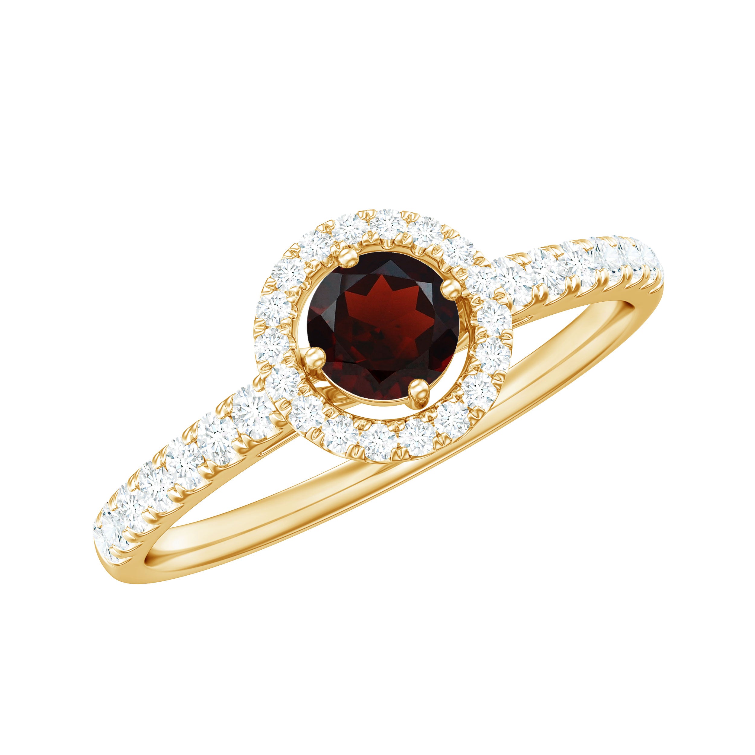 • Halo Rings: - Showcases the beauty of garnet stone with a halo motif, these rings accentuate the brilliance of the center stone elegantly. Due to the diamond accents, the size of the garnet looks a bit large. The vibrant hues of red stone represent love and passion which makes them perfect for engagement rings. The halo style adds an extra layer of shine and elegance to the ring, enhancing the beauty of the ring. The Halo collection is perfect for those who always appreciate something unique and classy.