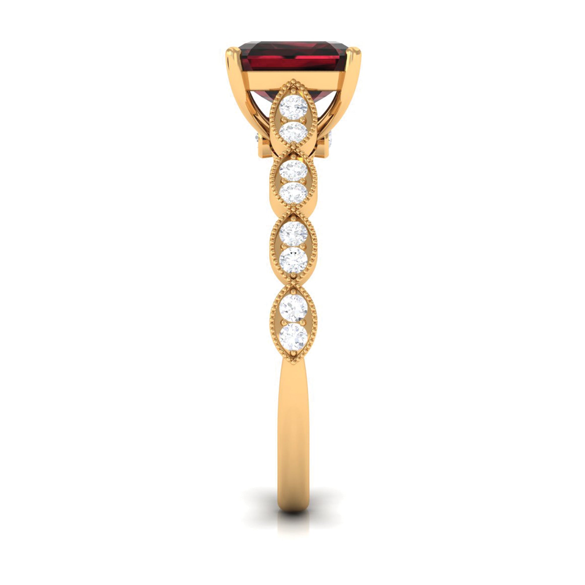 Our garnet engagement rings collection offers a wide variety of garnet engagement rings, ranging from simple solitaire styles to more intricate designer pieces. These days, red gemstones are trending for engagement jewelry due to their rich color and affordable prices. These styles offer bold ways to propose and celebrate love. The garnet gem considers as the stone of love, mainly associated with protection, love, passion, commitment, and never-ending friendship. Whether you're going to choose a classic solitaire ring or an antique vintage ring, each ring is specially designed to cater to your style.