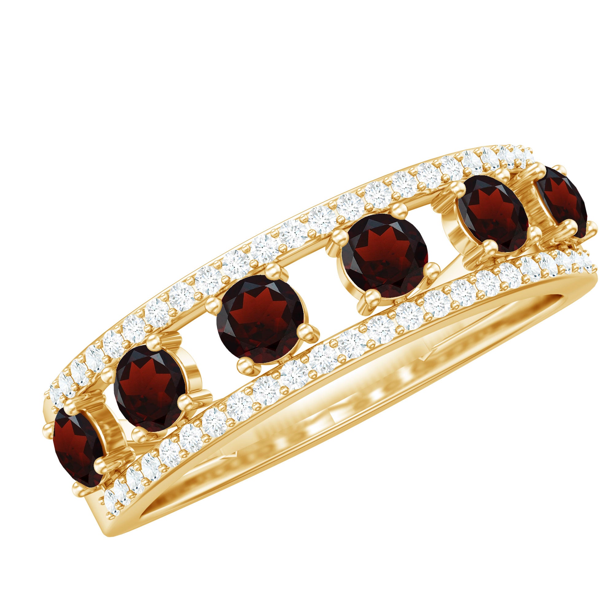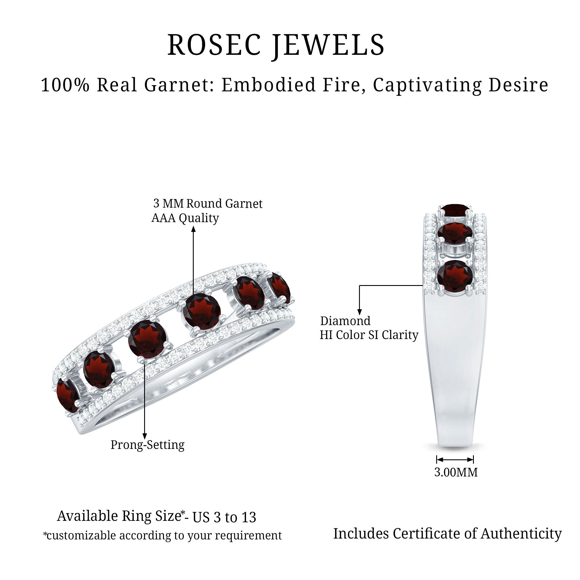 Rosec Jewels’ Garnet wedding rings featuring natural garnets, the member of silicate family of minerals and are widely cherished for their wide spectrum of colors of almost all the shades. This fantastic diversity in color helps jewelers to favor garnets while handcrafting garnet bands for men. Our artisans are also after curating January birthstone rings for wedding that are an enchanting beauty.