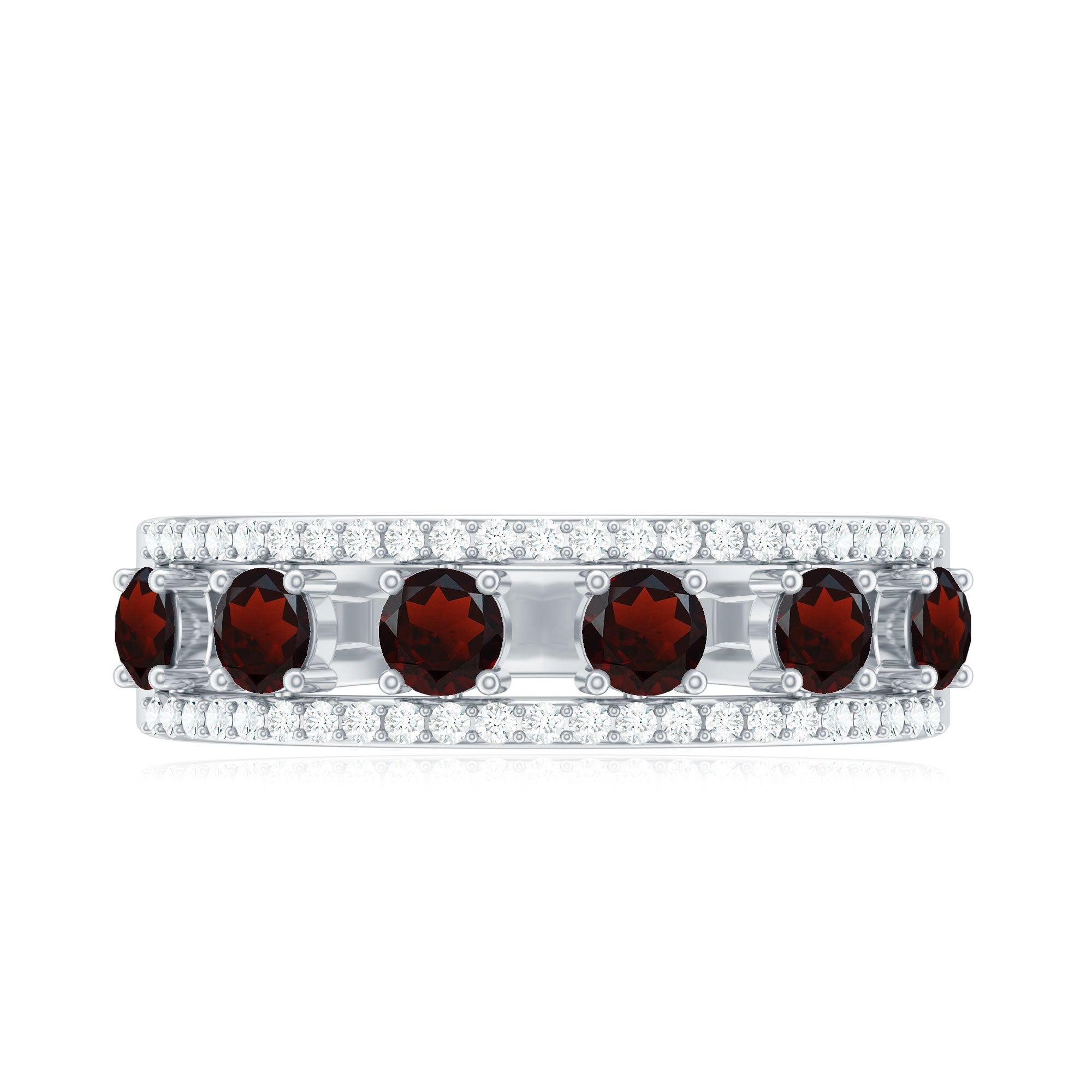 When worn as a wedding band, garnets can be a symbolism of love and life force, while a eternity wedding band in itself will symbolize a promise of love for eternity.